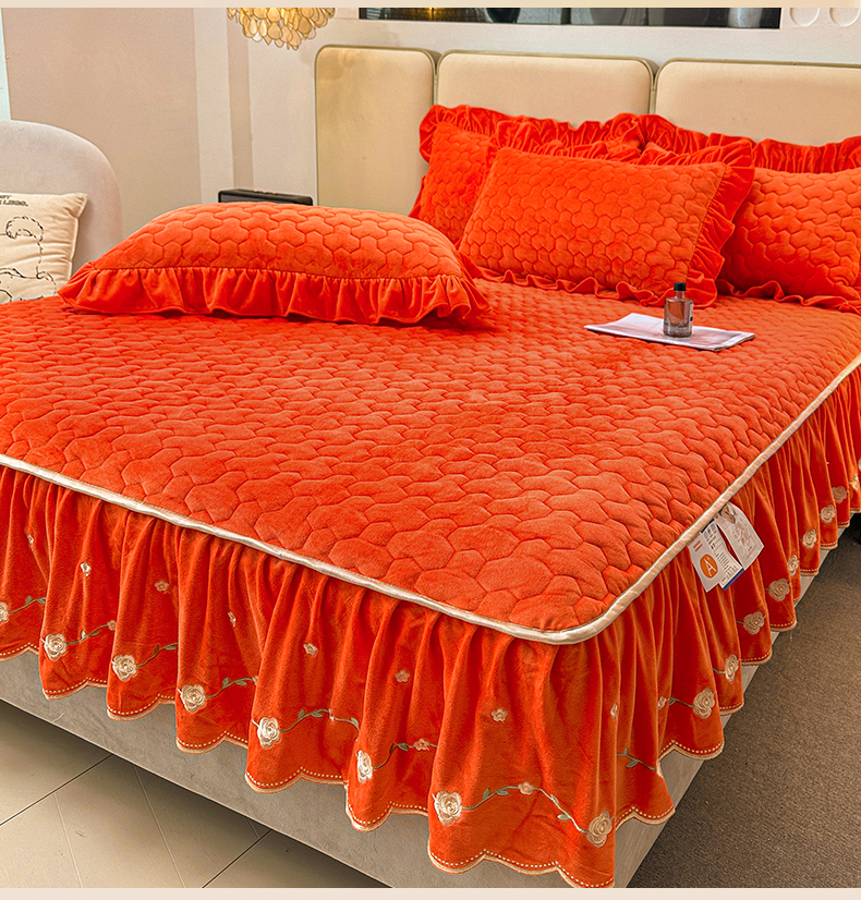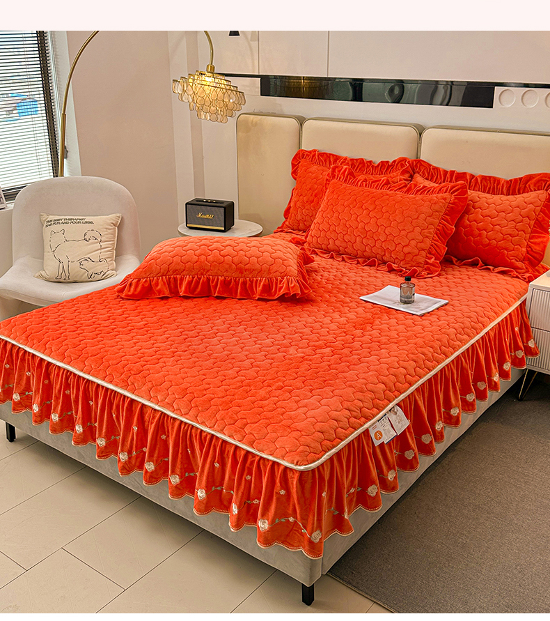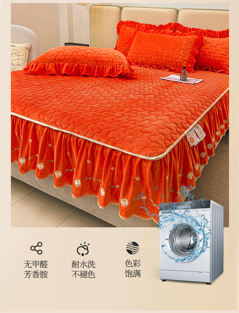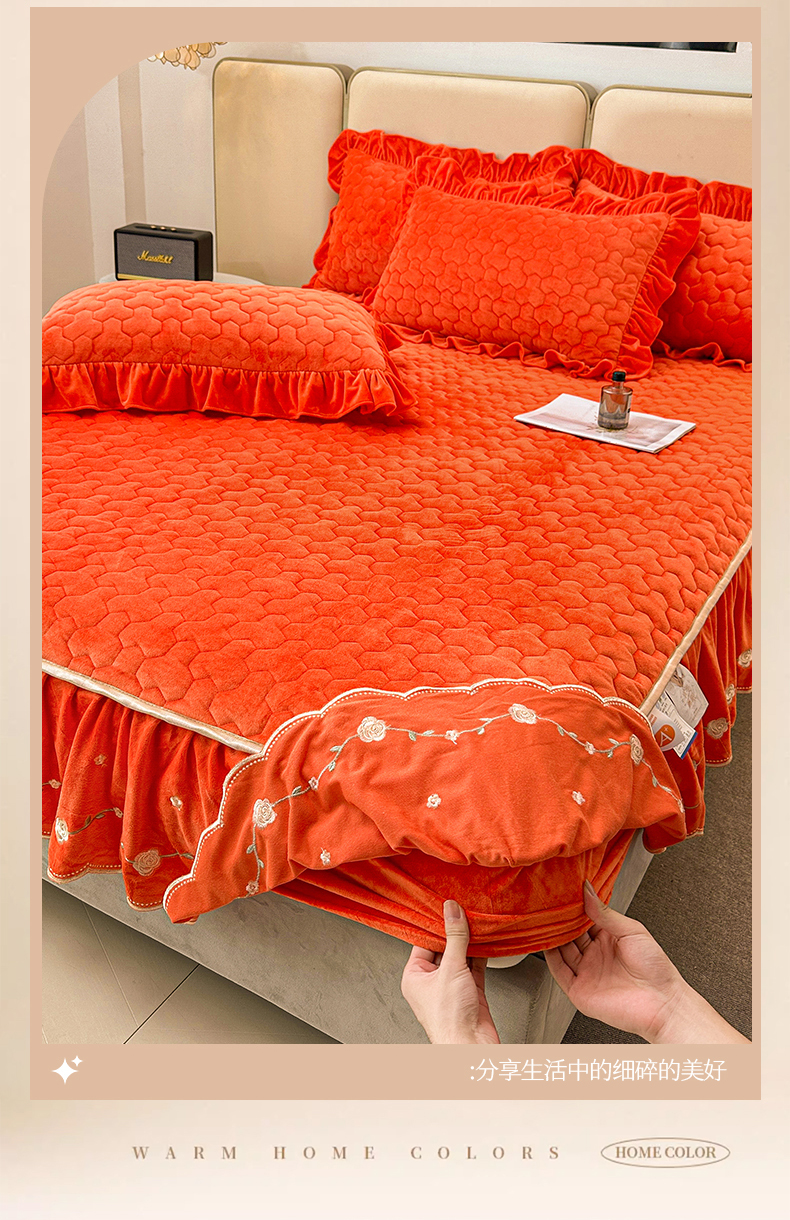 (总)恒爱家纺 2025新款牛奶绒贴布绣夹棉床裙四件套,豆沙红,浪漫紫,天空蓝,温馨粉,象牙白