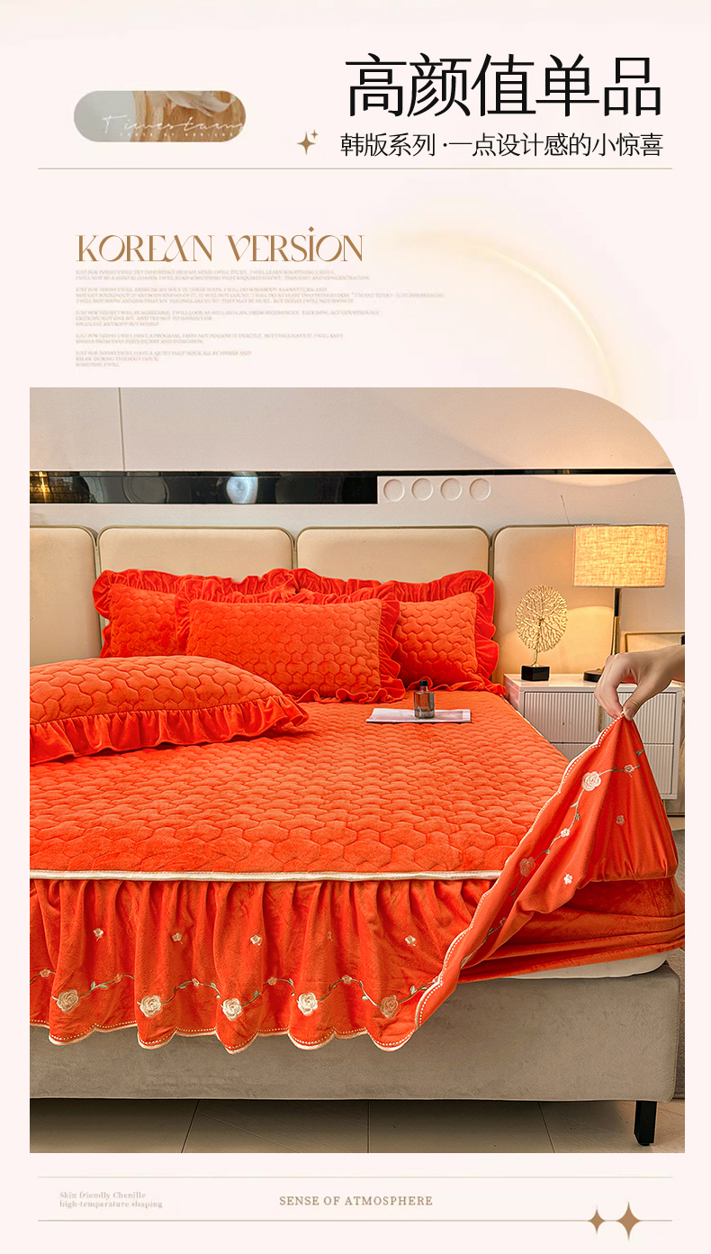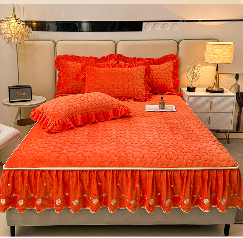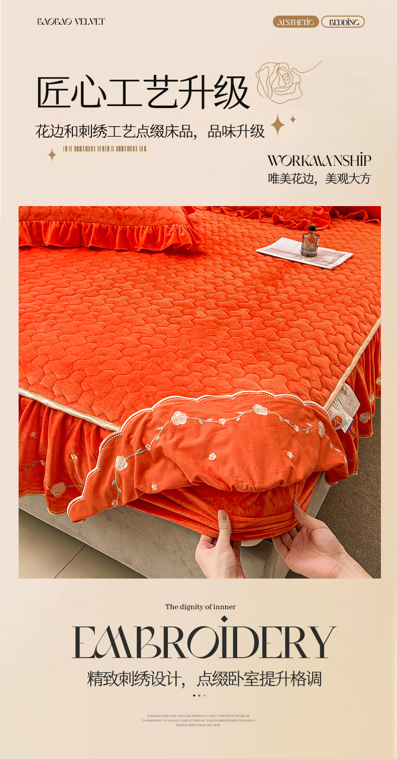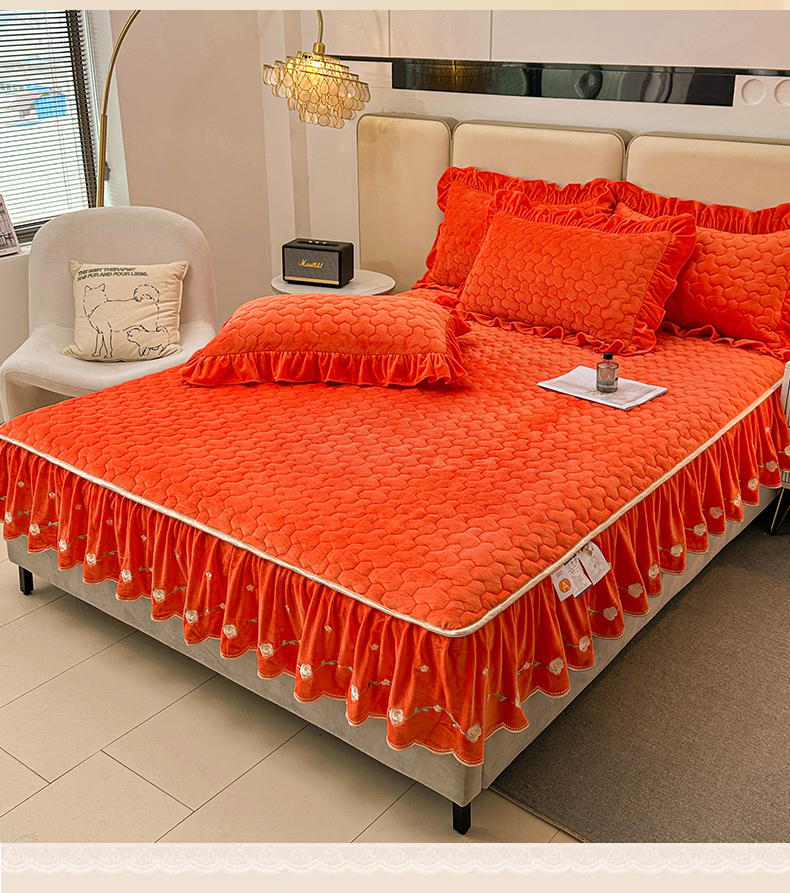 (总)恒爱家纺 2025新款牛奶绒贴布绣夹棉床裙四件套,豆沙红,浪漫紫,天空蓝,温馨粉,象牙白