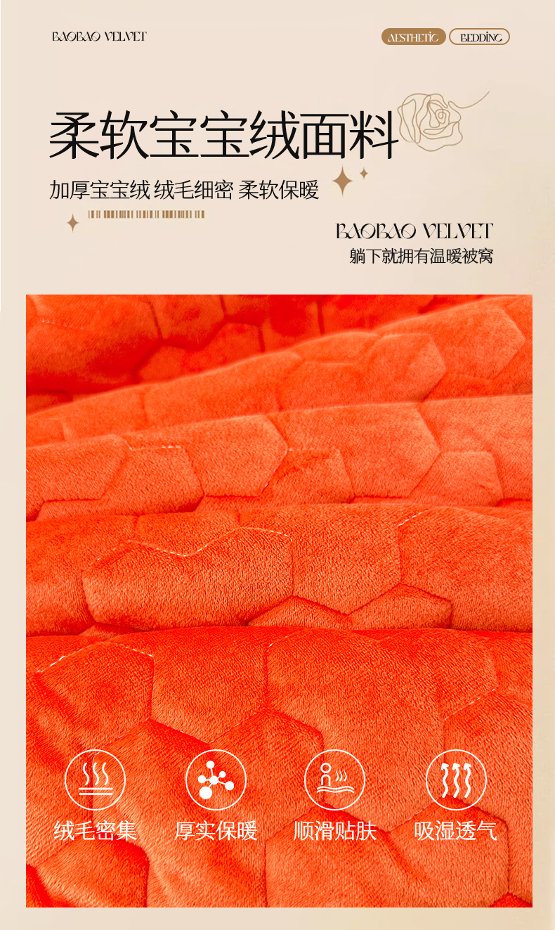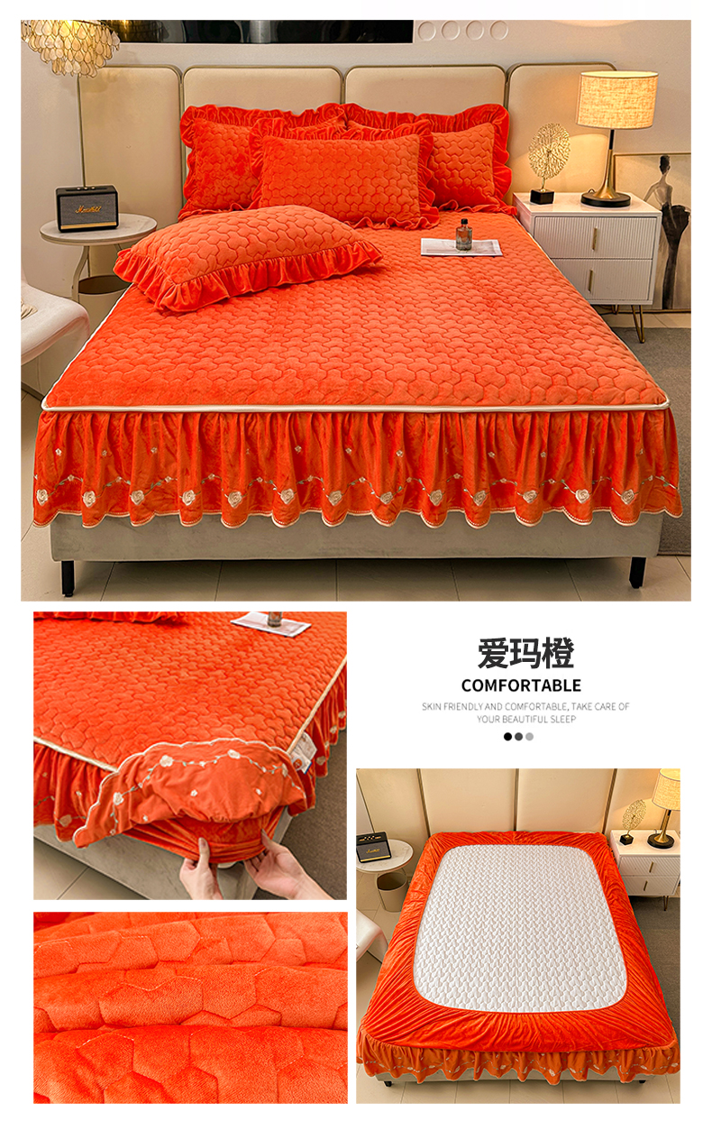 • 91家纺网 家纺一手货源 找家纺 恒爱家纺 2024新款宝宝绒霞姿月韵床笠 爱玛橙