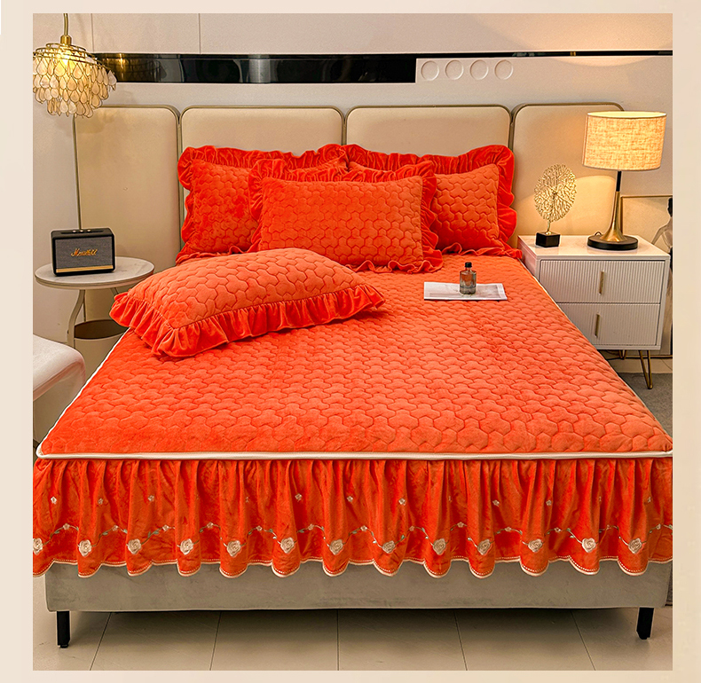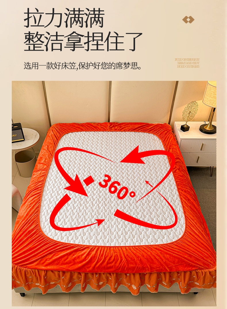 恒爱家纺 2024新款宝宝绒霞姿月韵床笠 爱玛橙
