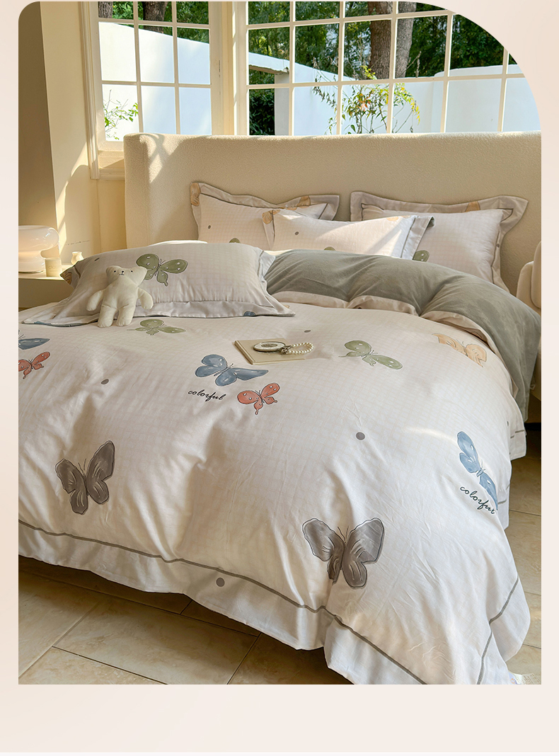 当前位置: 91家纺网 > 商品网购 > 床品套件 > 四件套 > 其它四件套 > 7V 2025新款A纯棉B牛奶绒轻奢大宽边一字绣四件套A类133*76全棉喷气宽幅长绒棉高克重全工艺牛奶绒 蝶舞