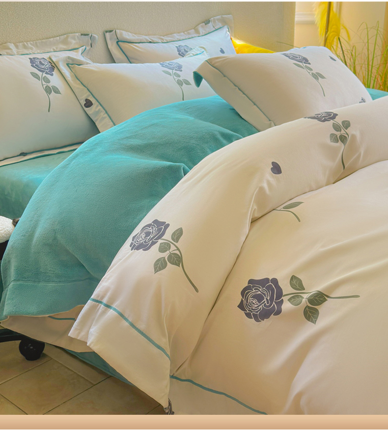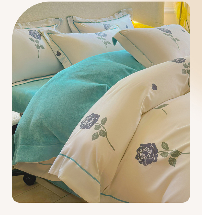 床上用品 > 被套 > 7V 2024新款单件被套A纯棉B牛奶绒轻奢大宽边一字绣A类133*76全棉喷气宽幅长绒棉高克重全工艺牛奶绒 芬妮