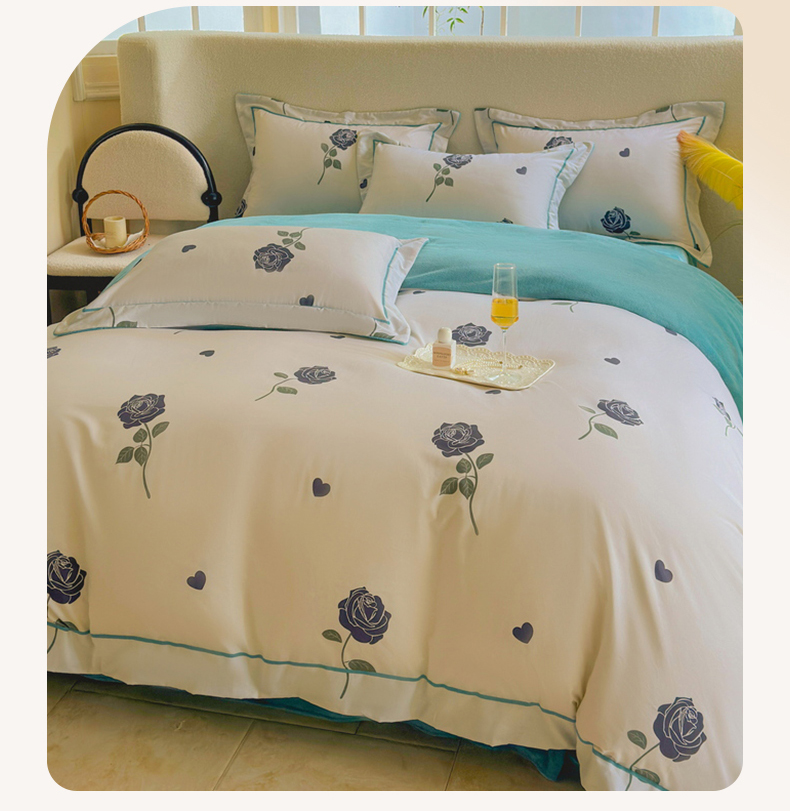 (总)7V 小清新大宽边100%纯棉法式四件套轻奢13376全棉喷气宽幅长绒棉被套床单床笠套件,乐享时光,动感兔-米,半夏花海,南枝-粉,圈点幸福,小熊日记-米黄,幽韵飘香,枫叶格-蓝,简约世界,自由简约,花绘-粉,落落晨光-粉,雨蝶-绿