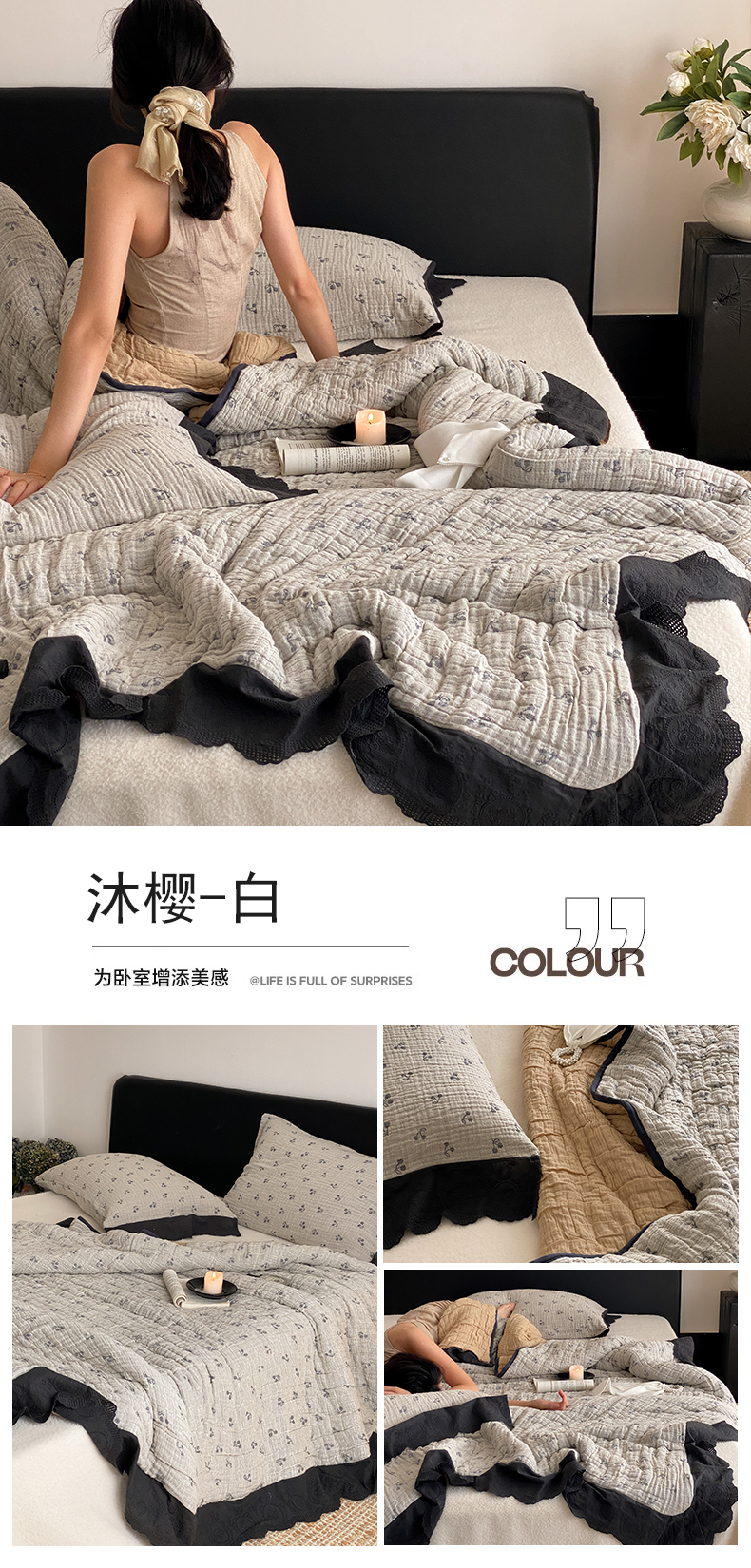 商品名称:麻依 2024新款十层单股纱美学被花边款纱布秋冬被子 沐樱-白