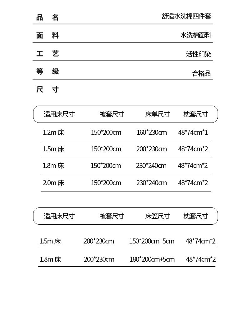 1.5m床笠款四件套(被套180*220cm) | ¥55.00 |