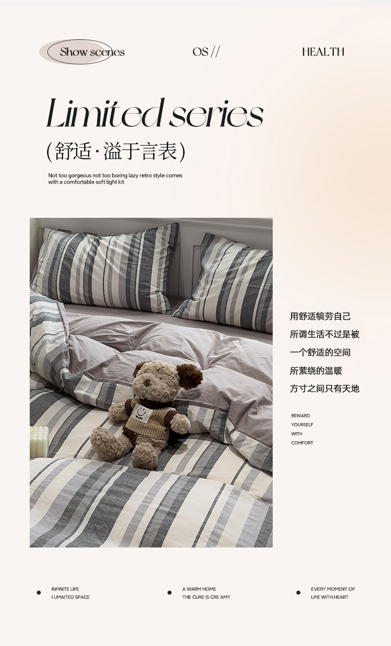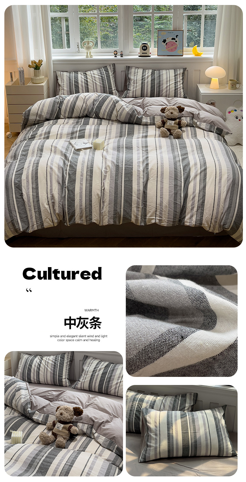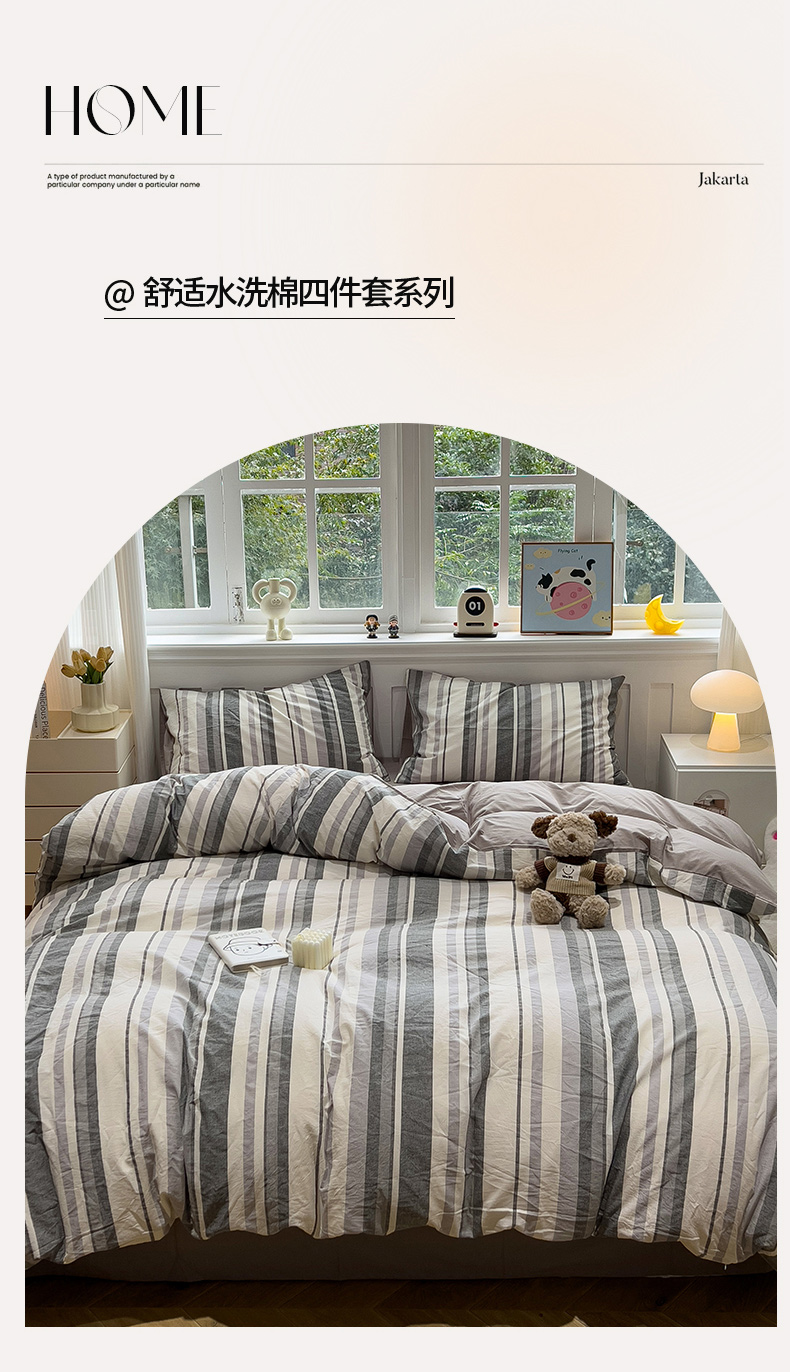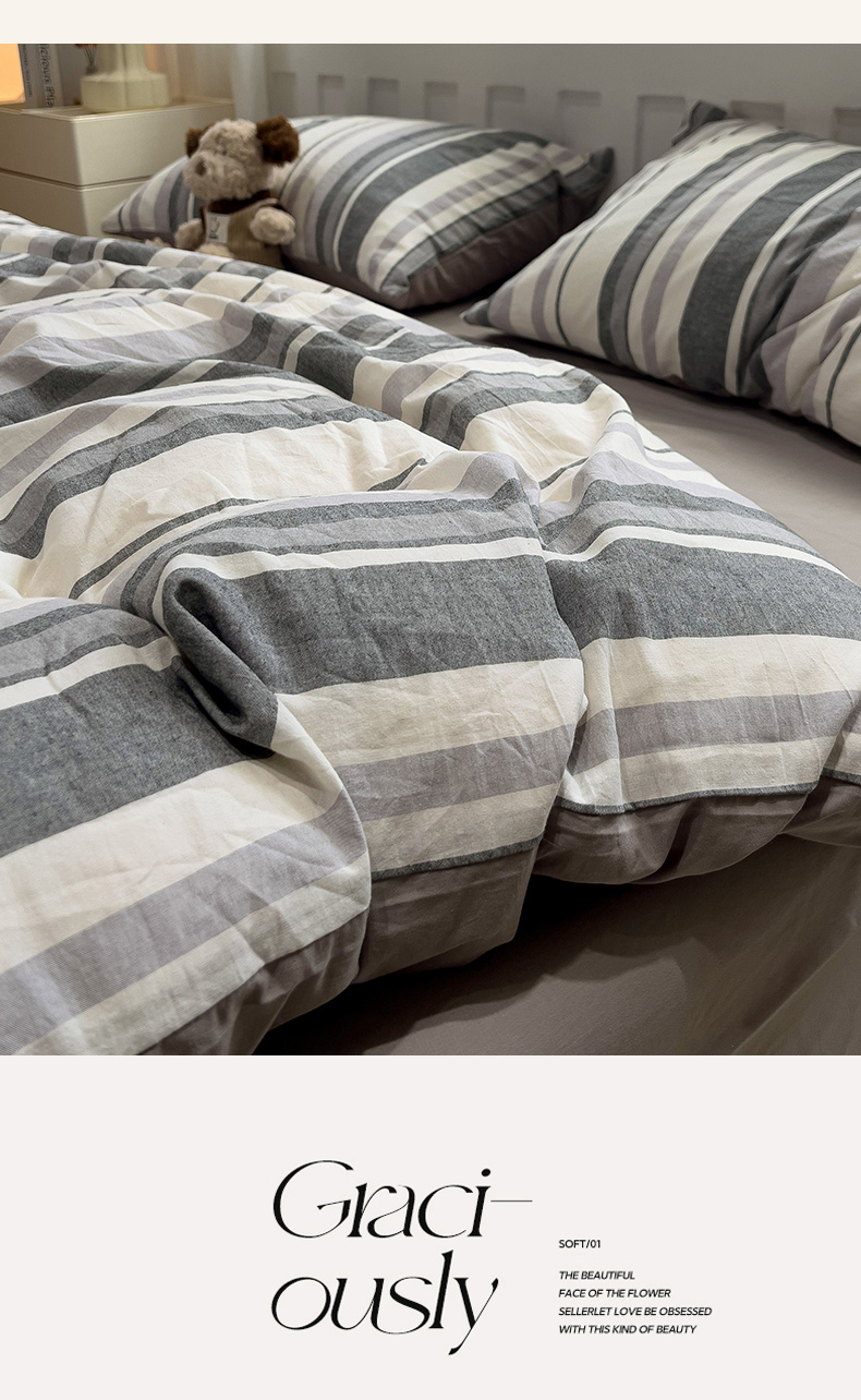 当前位置: 91家纺网 > 商品网购 > 床品套件 > 四件套 > 水洗棉四件套 > 水墨江南 2024新款水洗棉四件套 中灰条