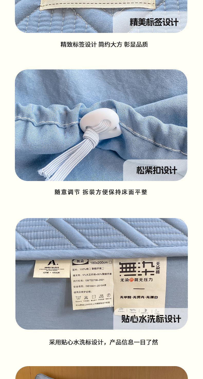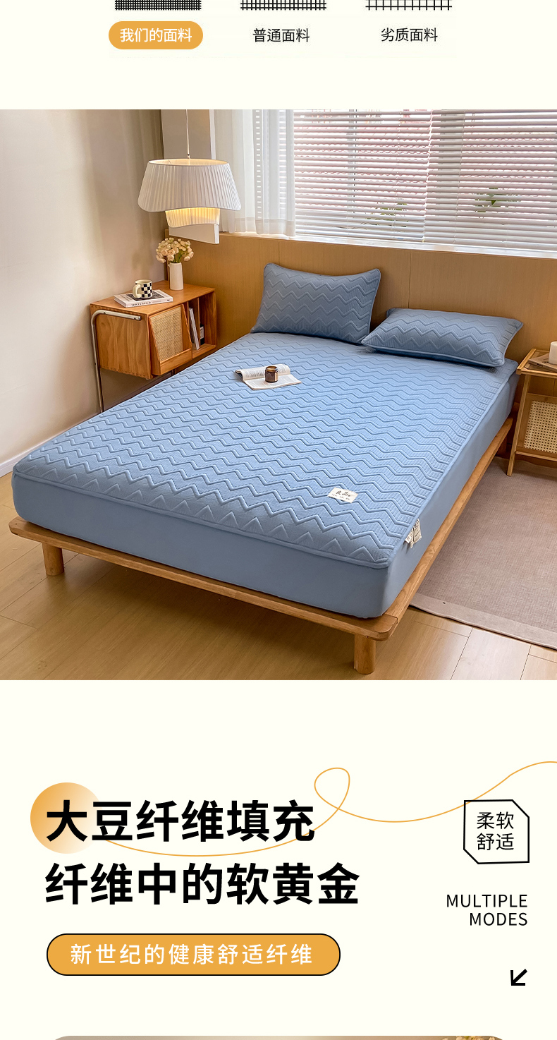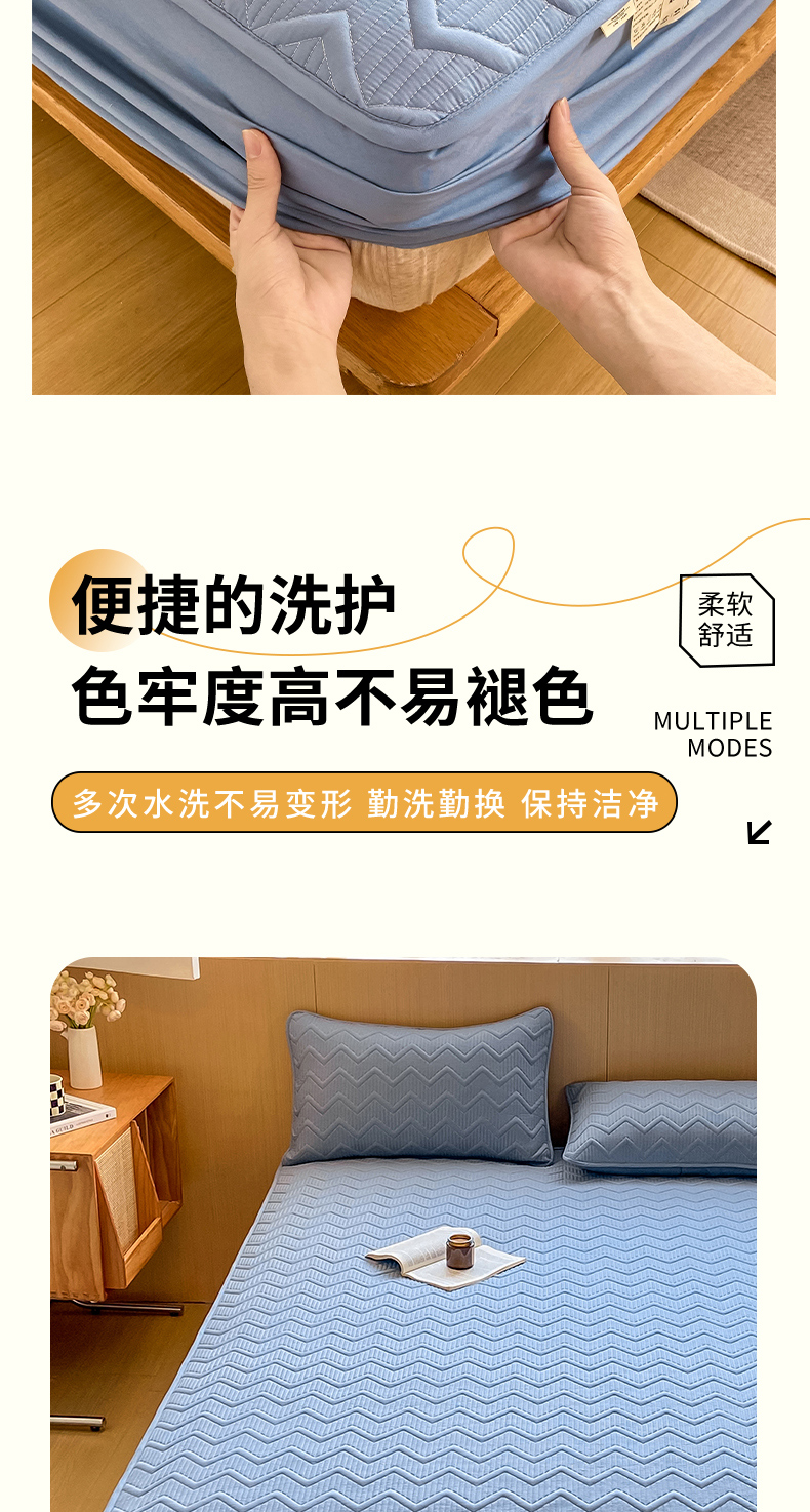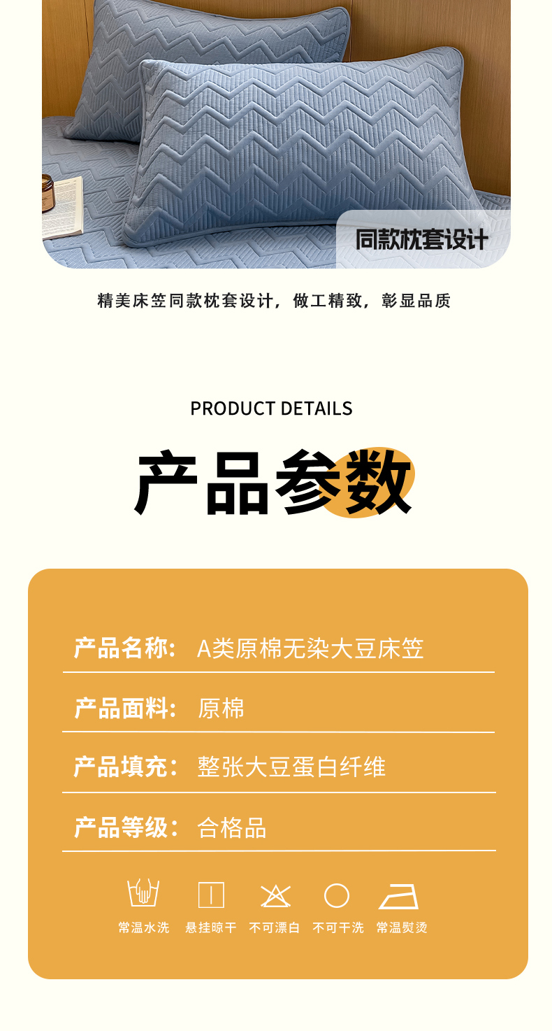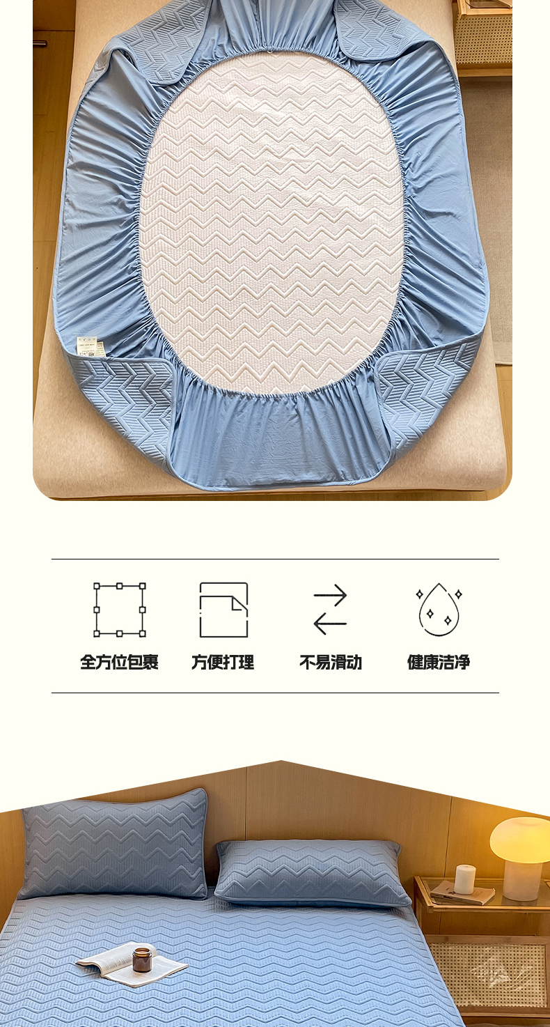 商品名称:悦织湾家纺 2025新款A类本色原棉大豆床笠 麦浪纹-优雅蓝