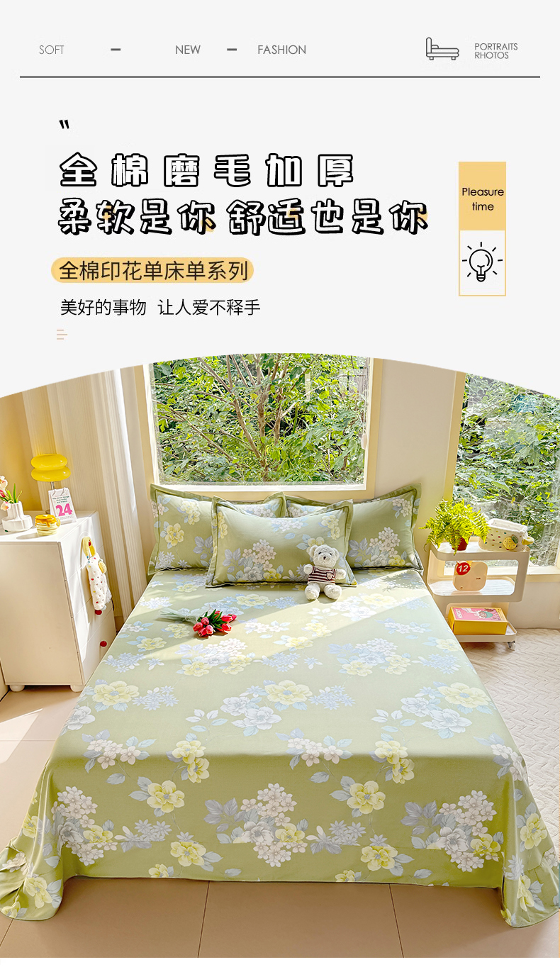• 91家纺网 家纺一手货源 找家纺 家贝爱 2024新款JBA加厚圆角纯棉磨毛床单 雅秀