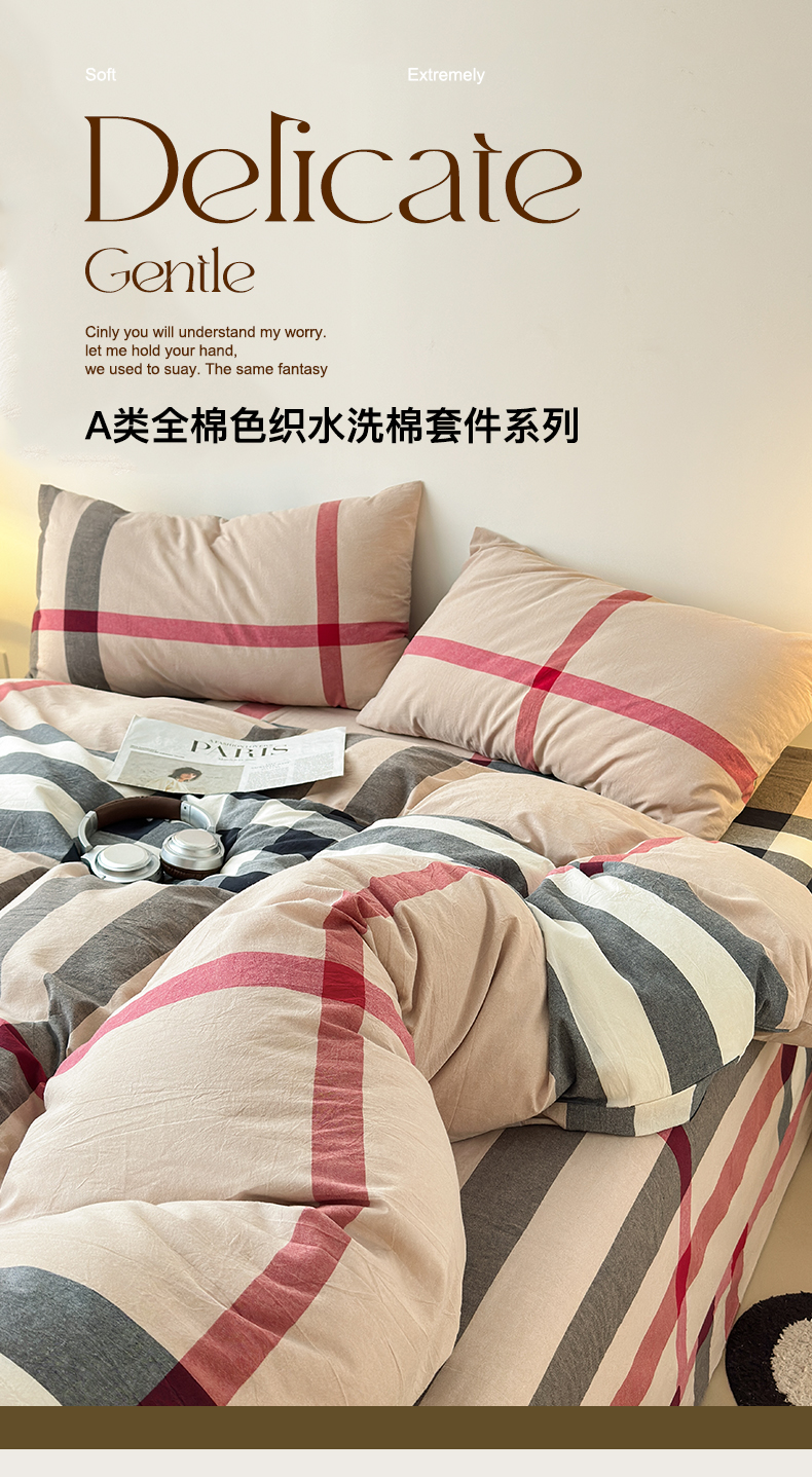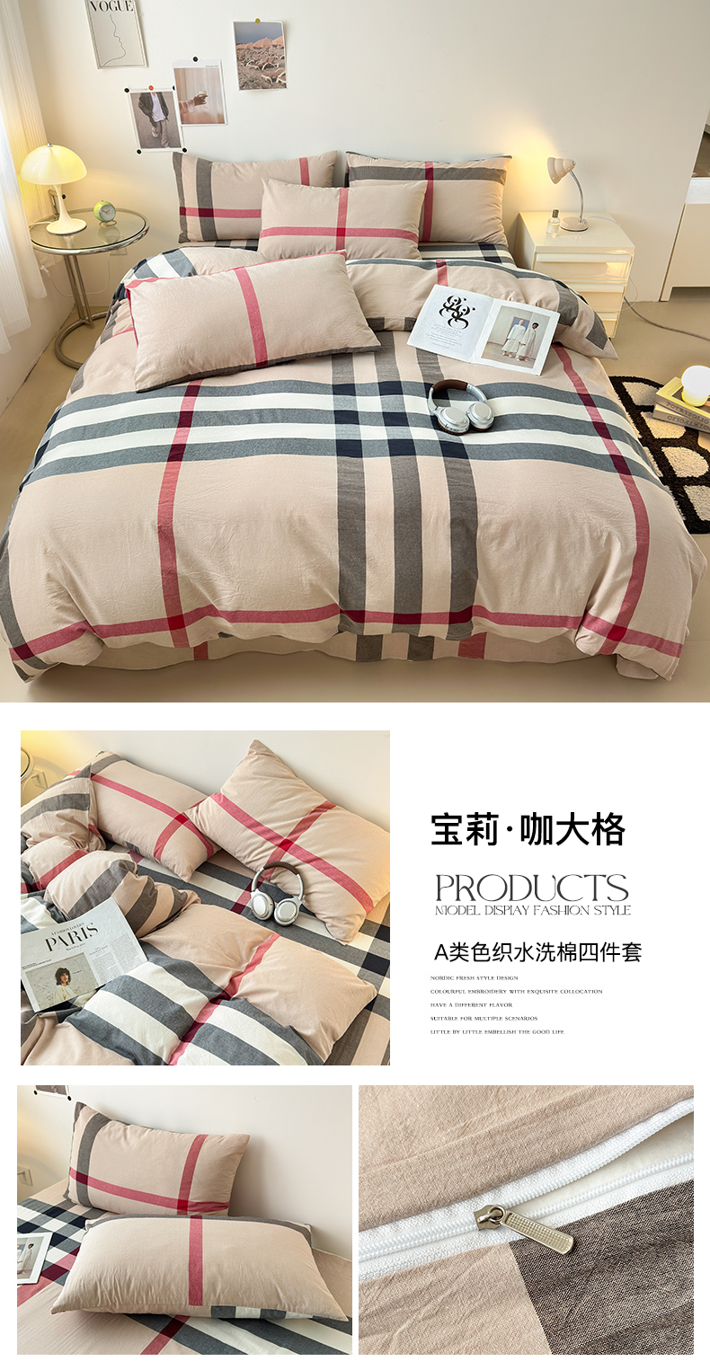 商品名称:清雅福 2024新款全棉A类水洗棉单品被套 宝莉-咖大格