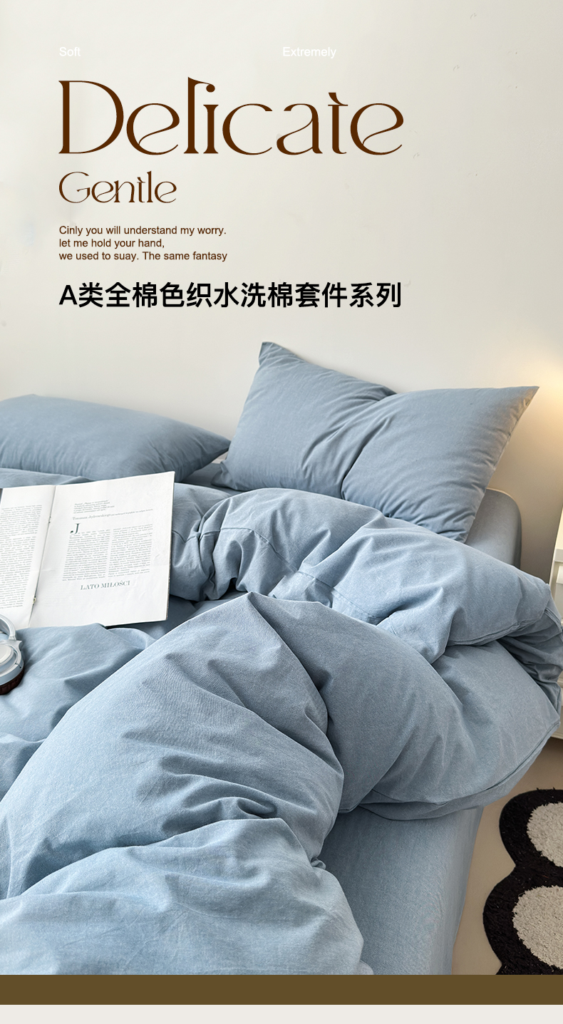 商品名称:清雅福 2024新款全棉A类水洗棉单品被套 素色-浅兰