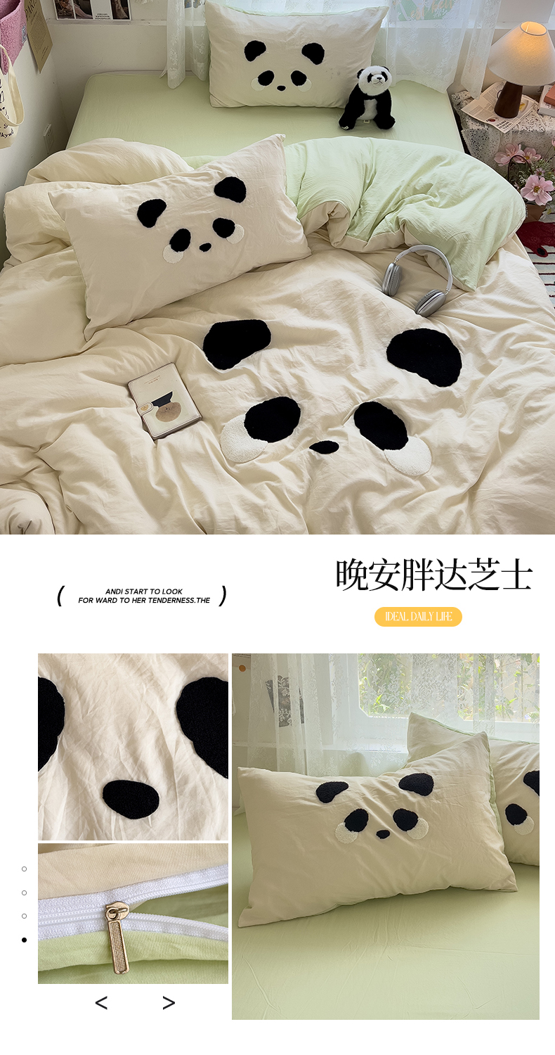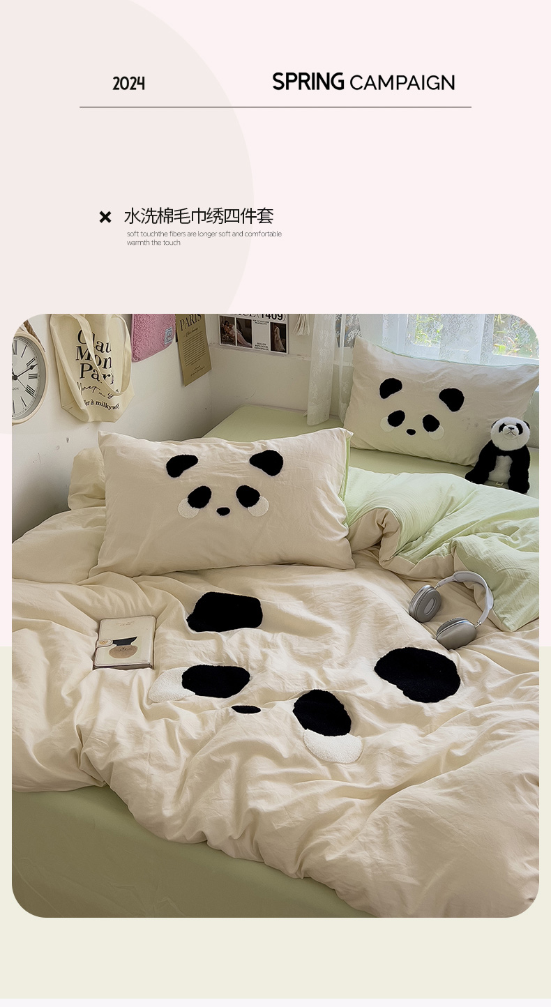当前位置: 91家纺网 > 商品网购 > 床品套件 > 四件套 > 水洗棉四件套 > 2024新款水洗棉毛巾绣四件套系列 晚安胖达芝士
