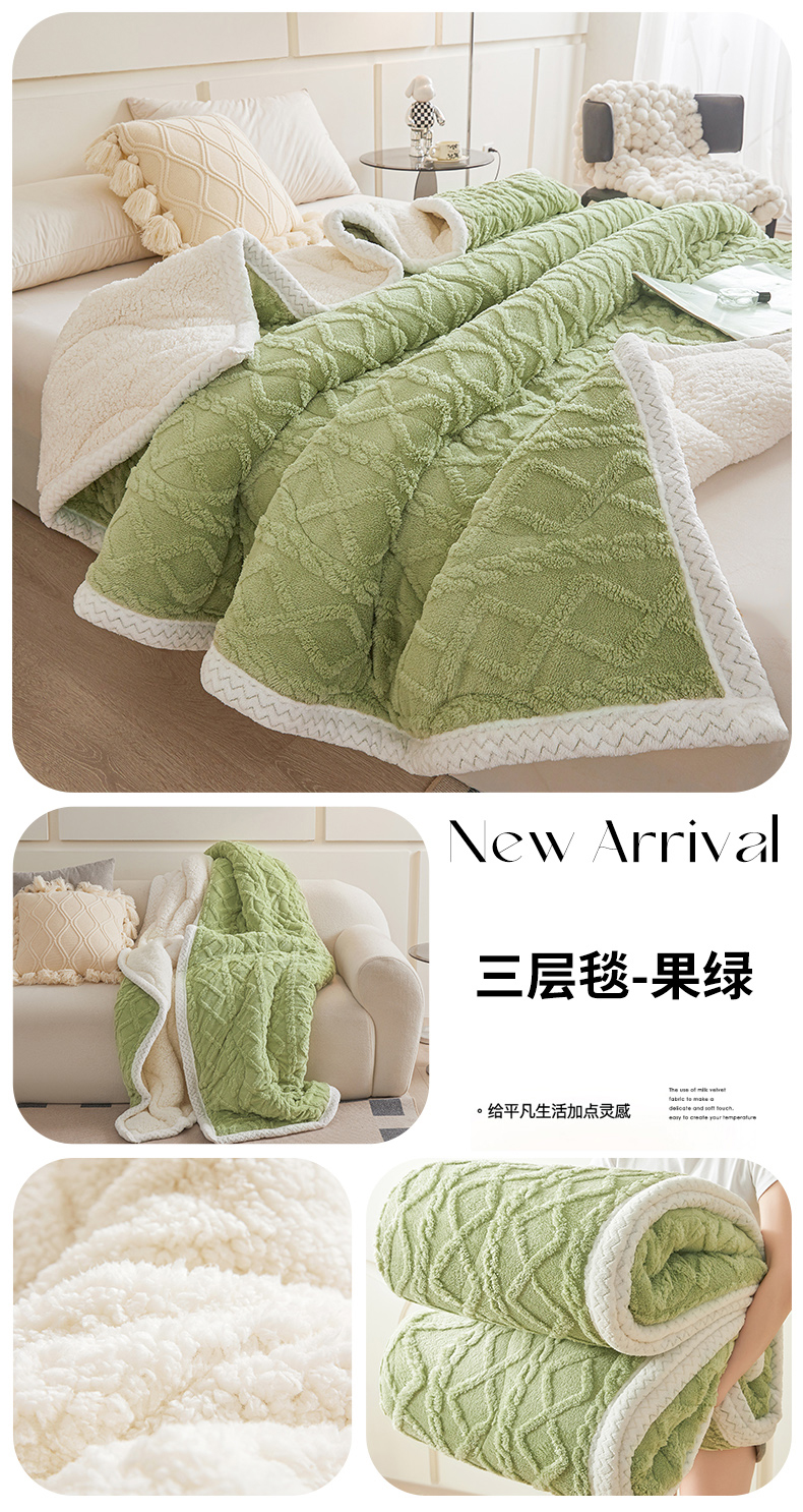 雅萱家纺 2024新款塔芙绒毛毯 塔芙绒三层毯-果绿