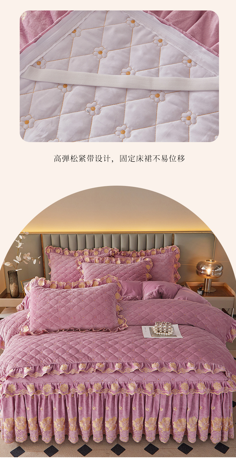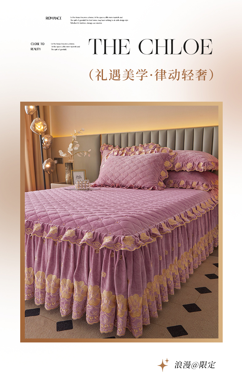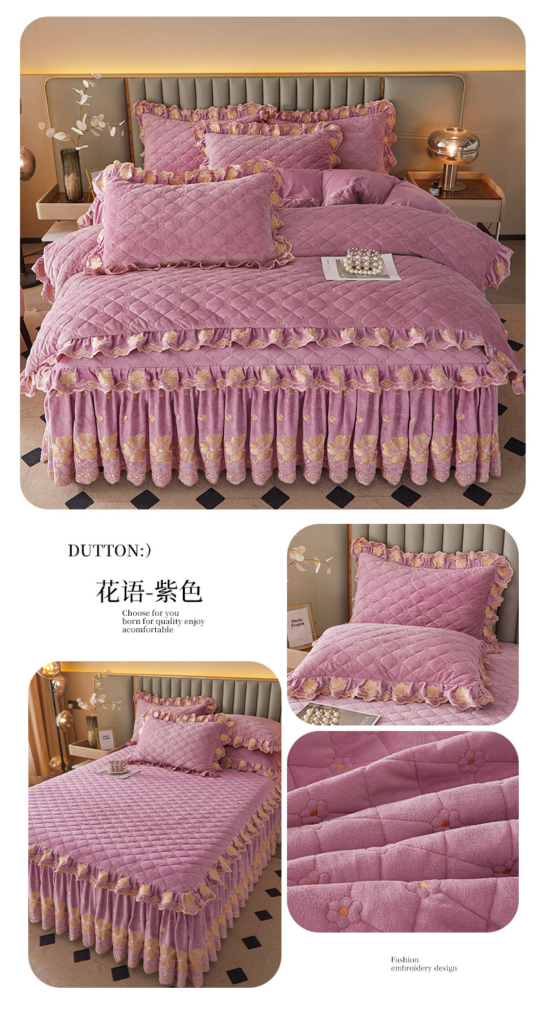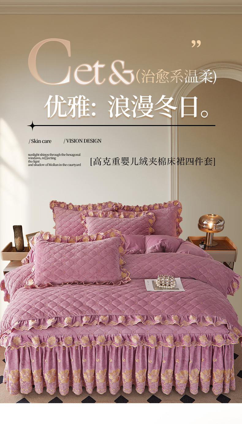 当前位置: 91家纺网 > 商品网购 > 床品套件 > 四件套 > 其它四件套 > 罗艺轩 2025新款婴儿绒双层夹棉可拆卸床裙四件套-花语 花语- 紫色