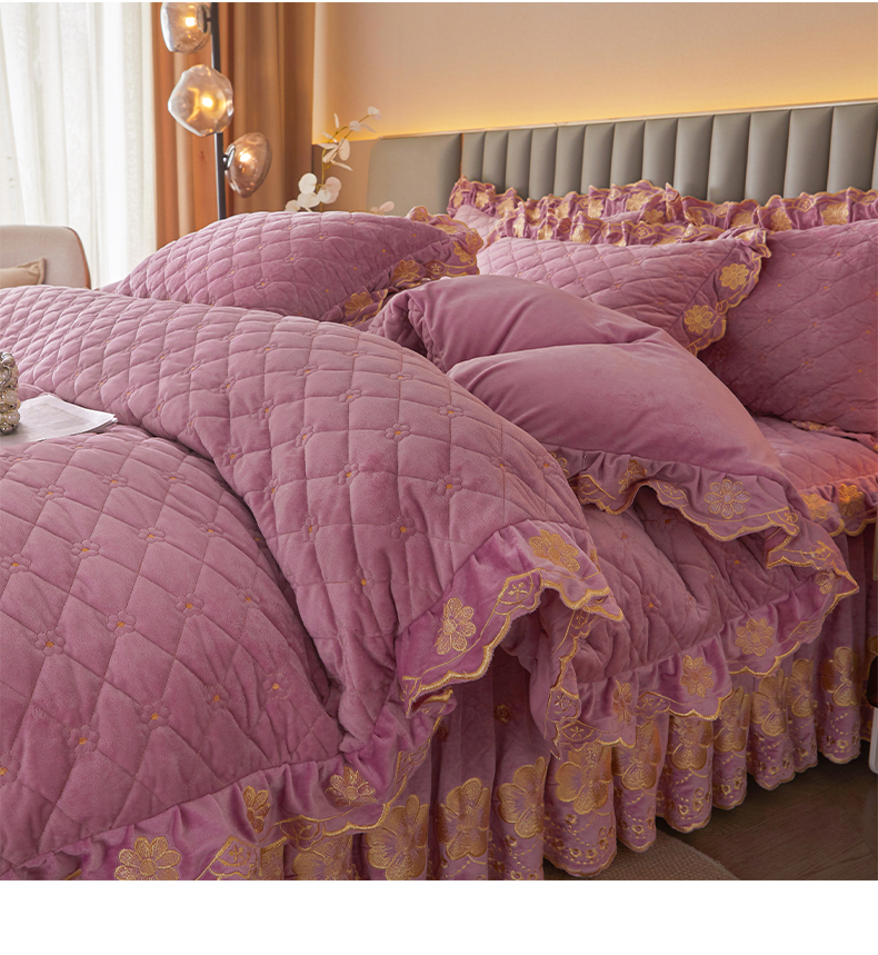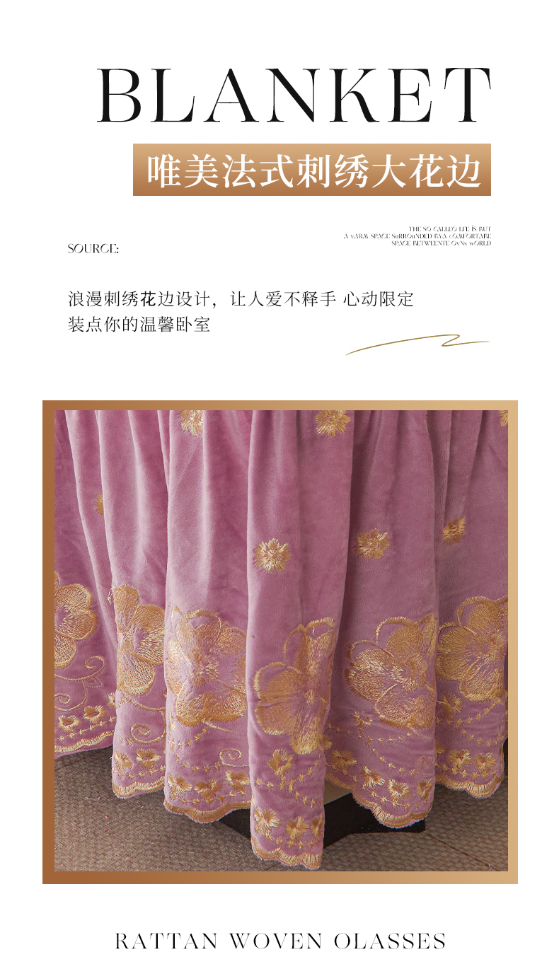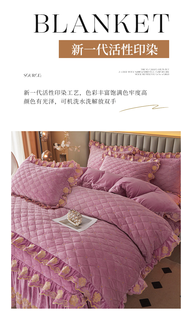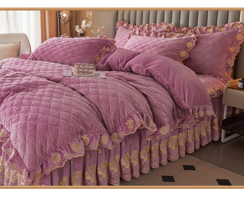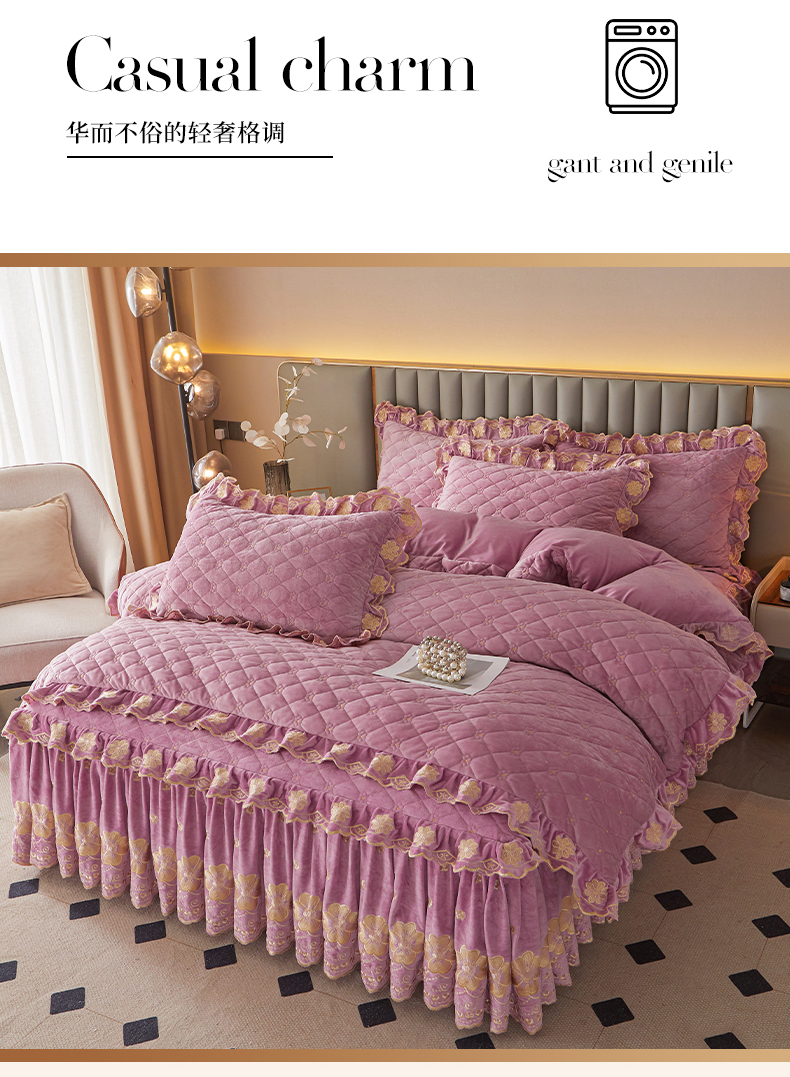 当前位置: 91家纺网 > 商品网购 > 床品套件 > 四件套 > 其它四件套 > 罗艺轩 2025新款婴儿绒双层夹棉可拆卸床裙四件套-花语 花语- 紫色