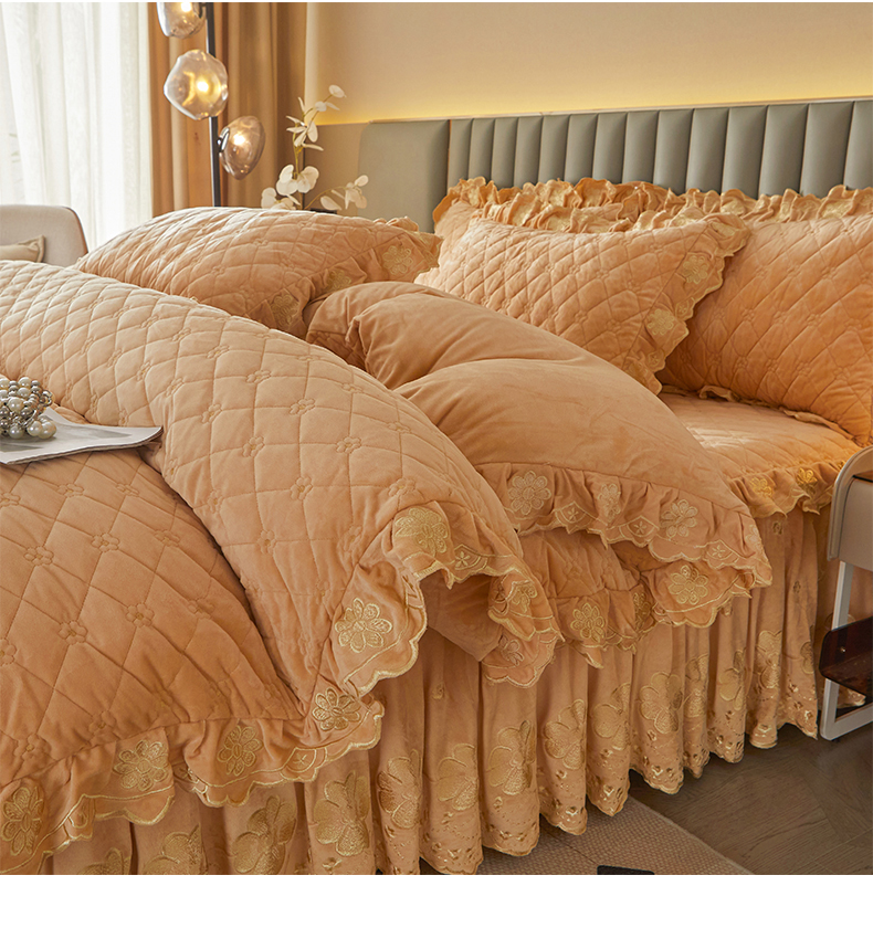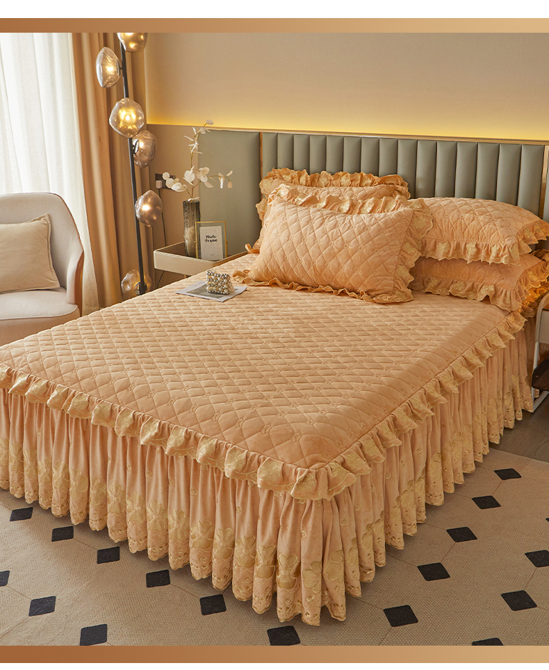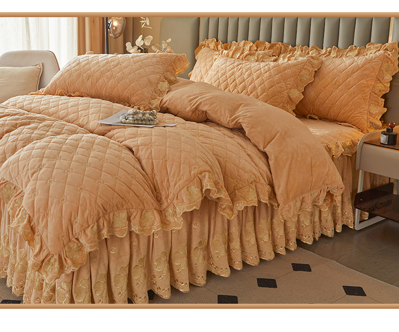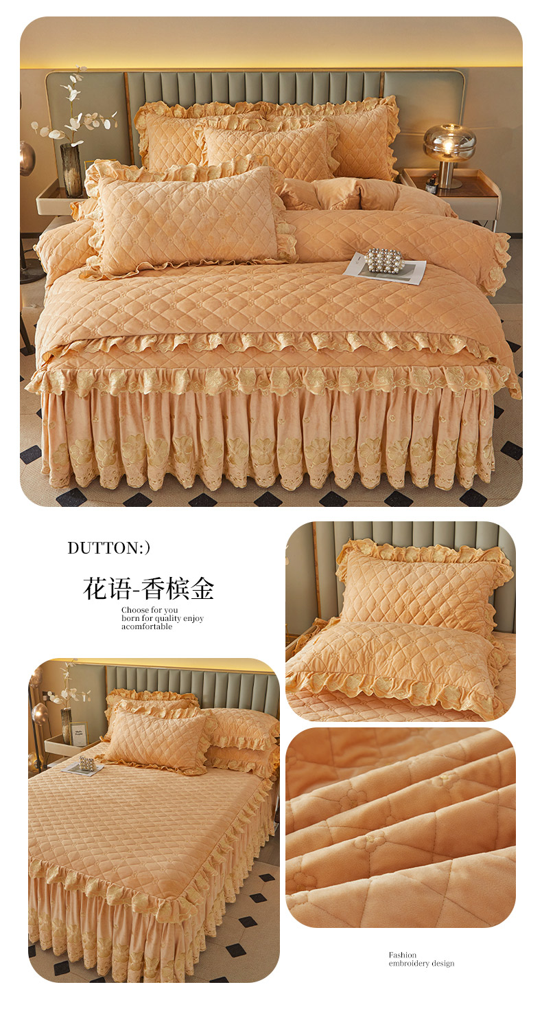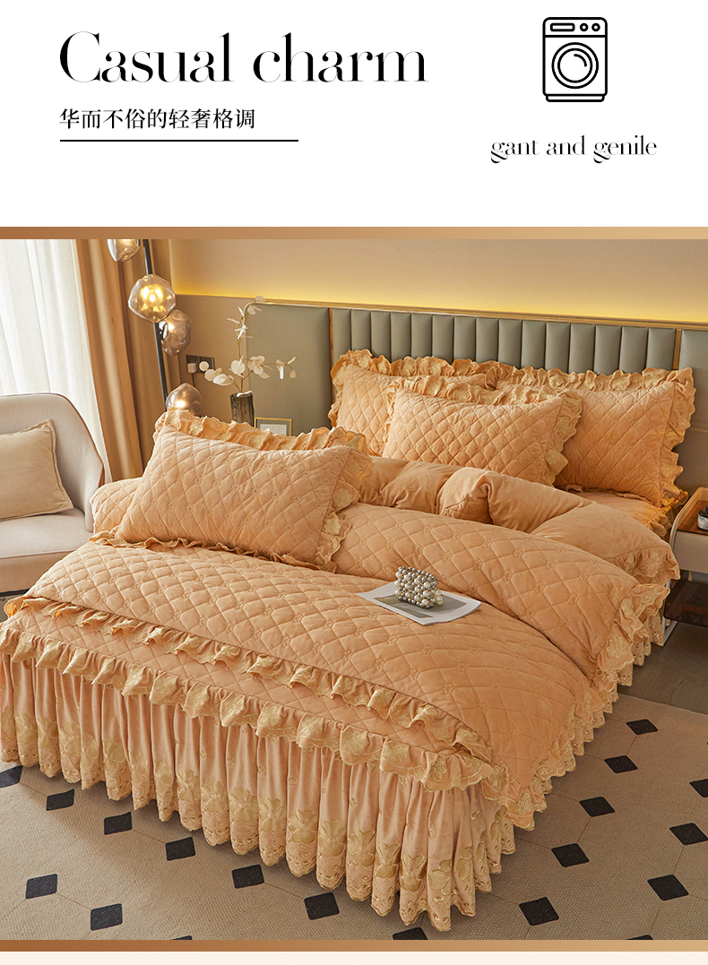 当前位置: 91家纺网 > 商品网购 > 床品套件 > 四件套 > 其它四件套 > 罗艺轩 2025新款婴儿绒双层夹棉可拆卸床裙四件套-花语 花语-香槟金