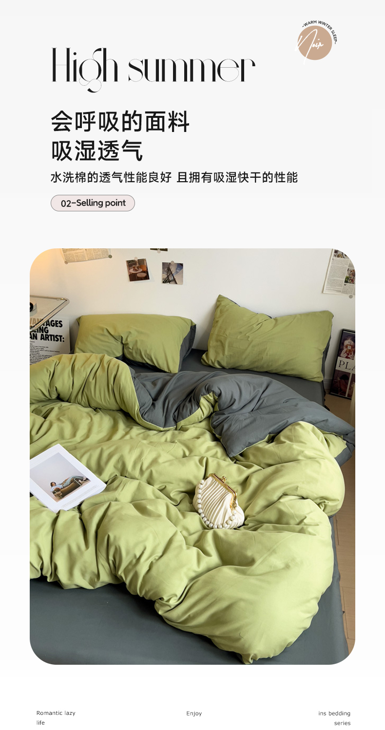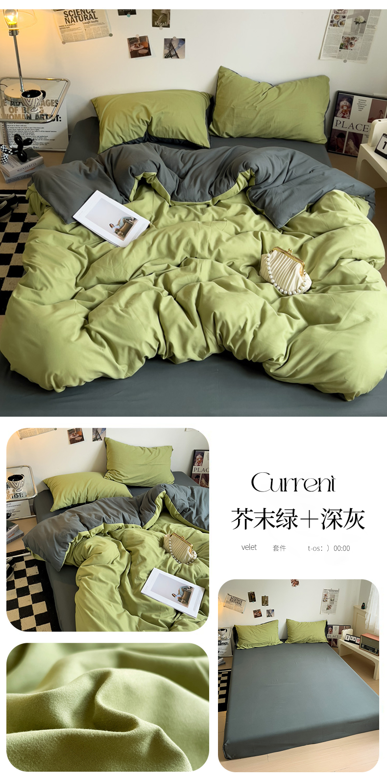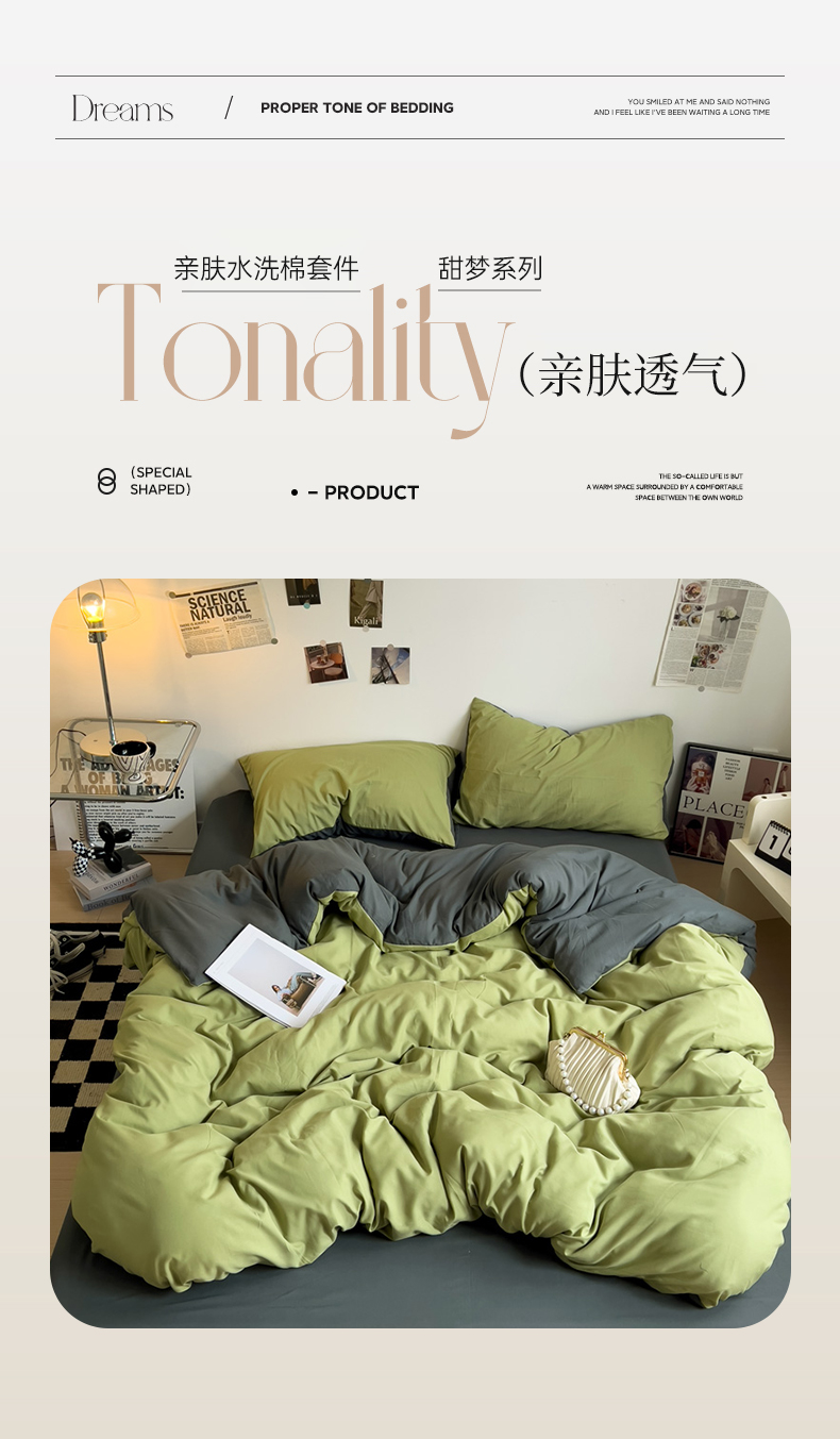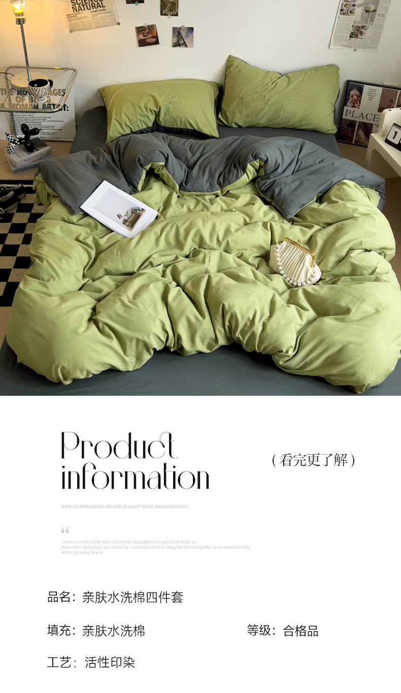 当前位置: 91家纺网 > 商品网购 > 床品套件 > 四件套 > 水洗棉四件套 > 梦卓家纺 2025爆款ins风超柔褶皱亲肤磨毛水洗棉四件套 芥末绿+深灰