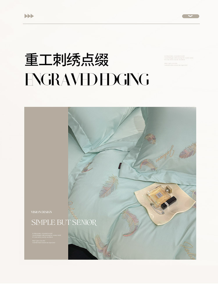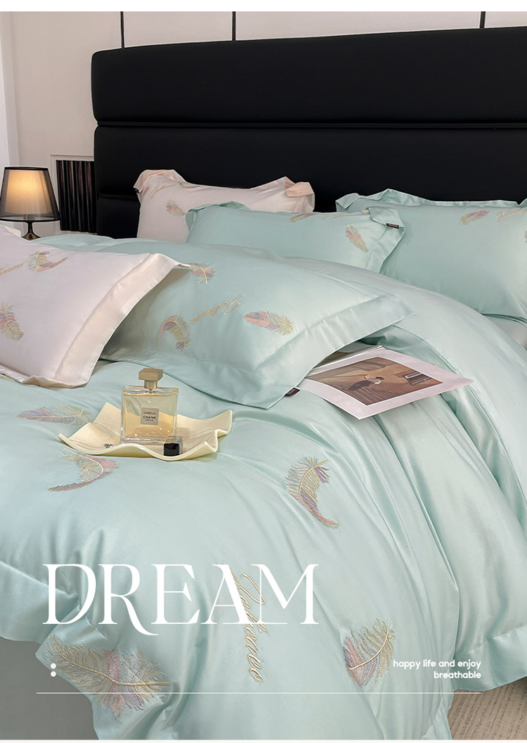 商品名称:2025春夏长绒棉四件套纯棉全棉轻奢风床单被套重工刺绣床上用品 芊羽梦-茶绿