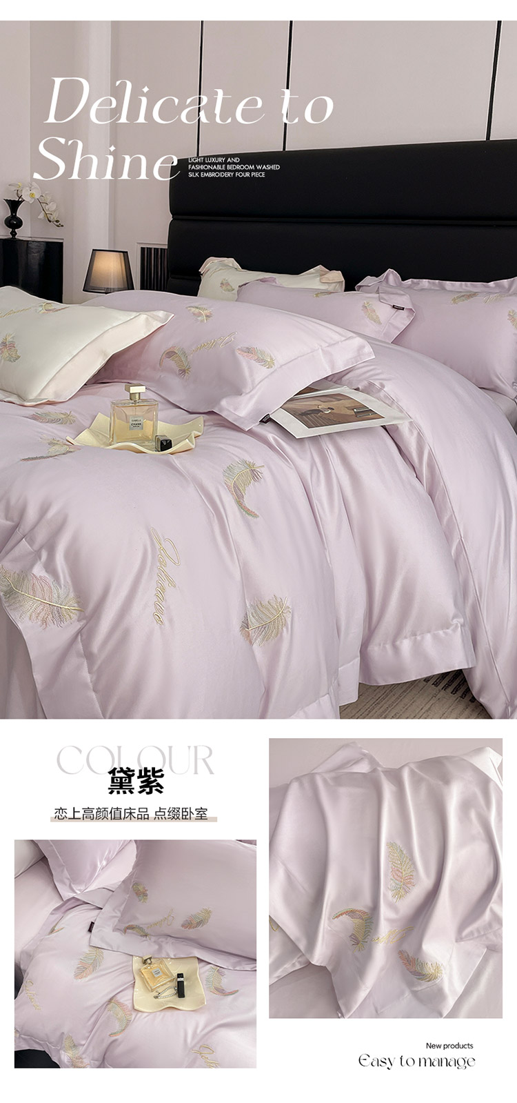 (总) 2025春夏长绒棉四件套纯棉全棉轻奢风床单被套重工刺绣床上用品,芊羽梦-白粉,芊羽梦-茶绿,芊羽梦-黛紫,芊羽梦-慕蓝,芊羽梦-颜粉