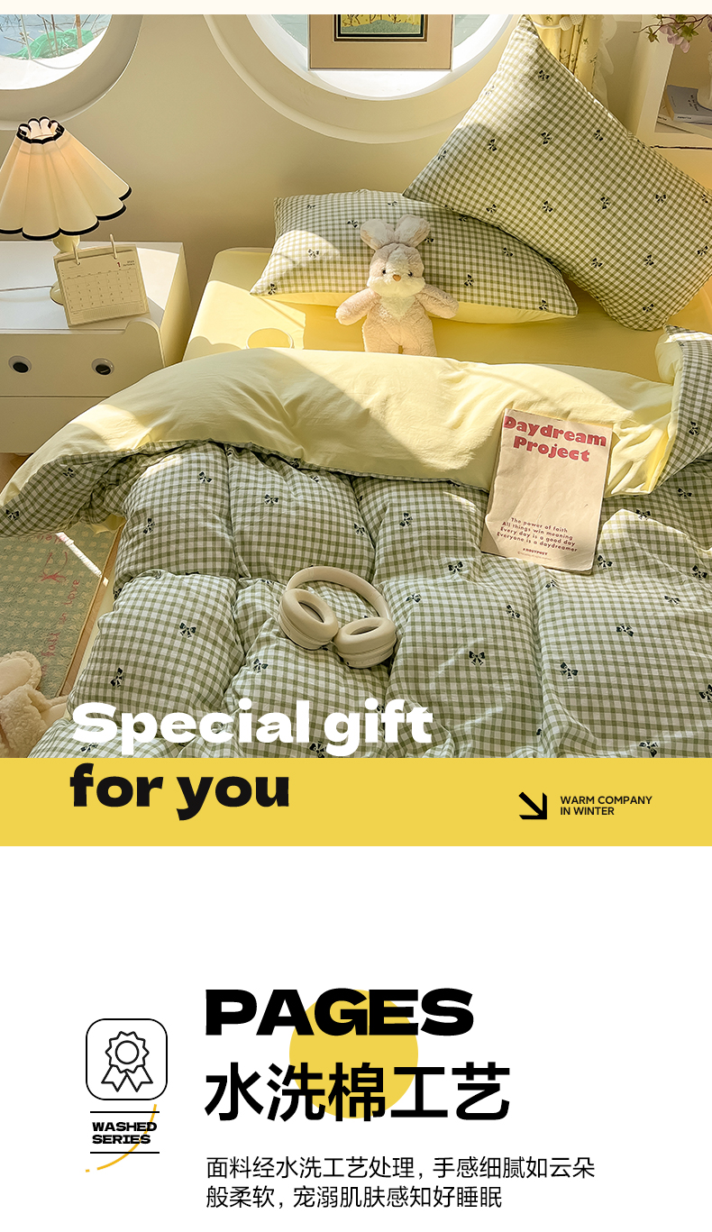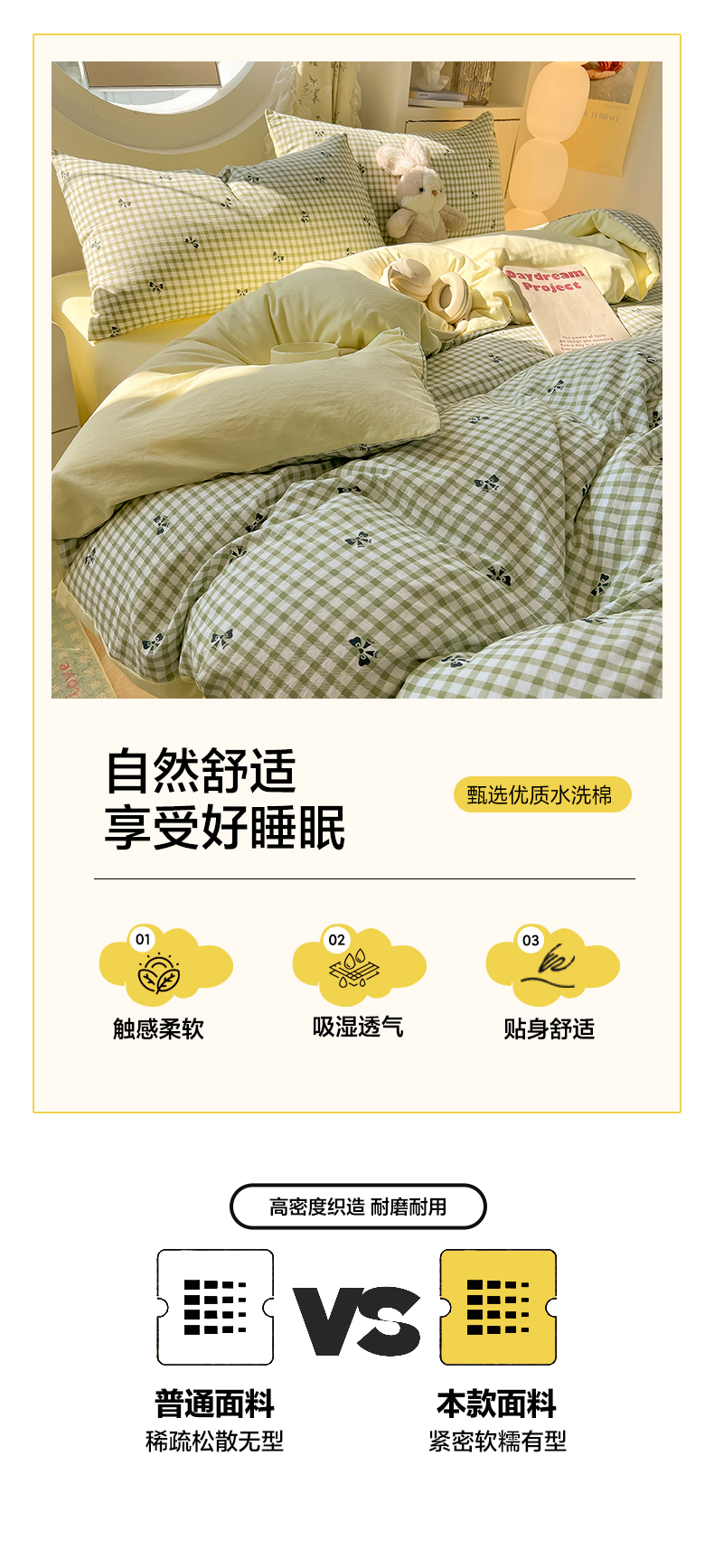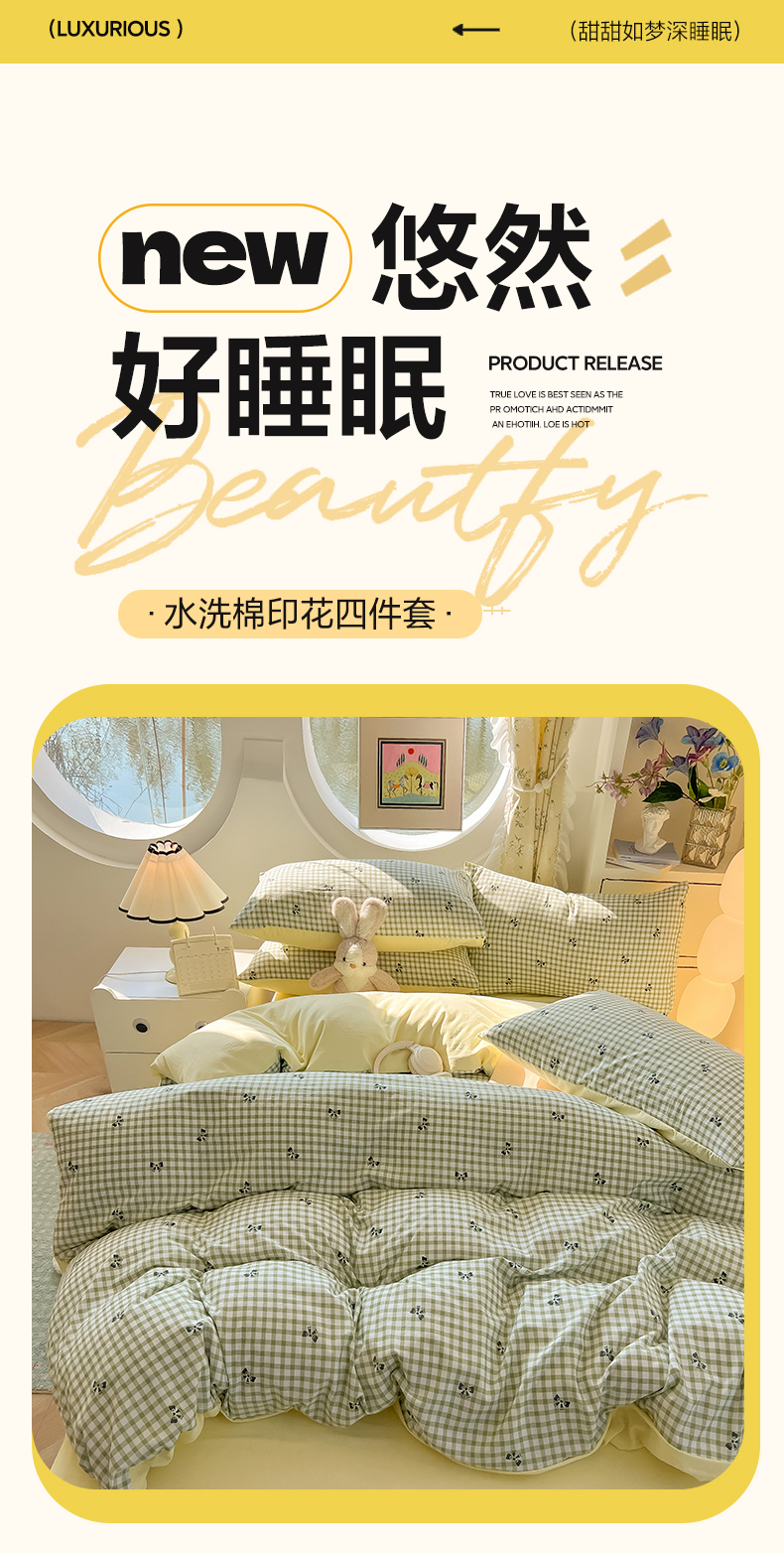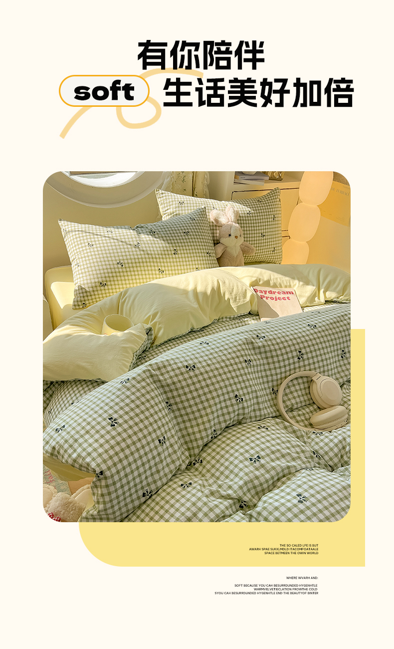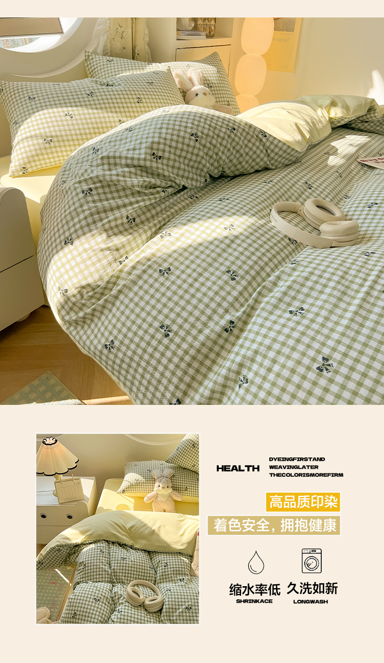 当前位置: 91家纺网 > 商品网购 > 床品套件 > 四件套 > 水洗棉四件套 > 韩巢家纺 2025新款水洗棉ins风格子被套床单四件套-蝴蝶结格子(提供卖家秀) 格纹绿浅黄