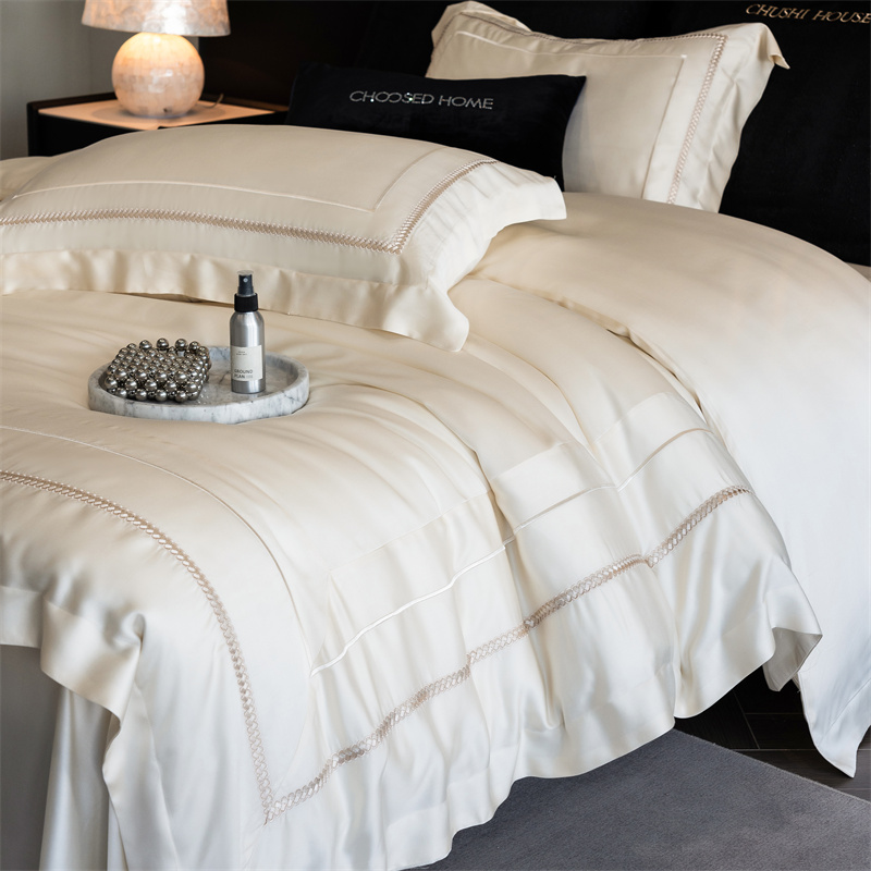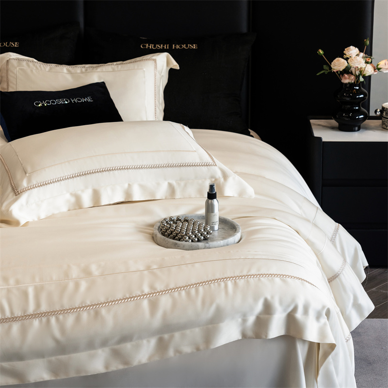 初拾 2025新款100s澳棉简约刺绣四件套-柏林 柏林-浅香槟