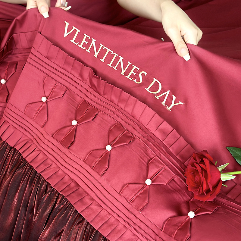 (总)江涞 2025新款高克重牛奶绒刺绣四件套-花月,花月-高级红