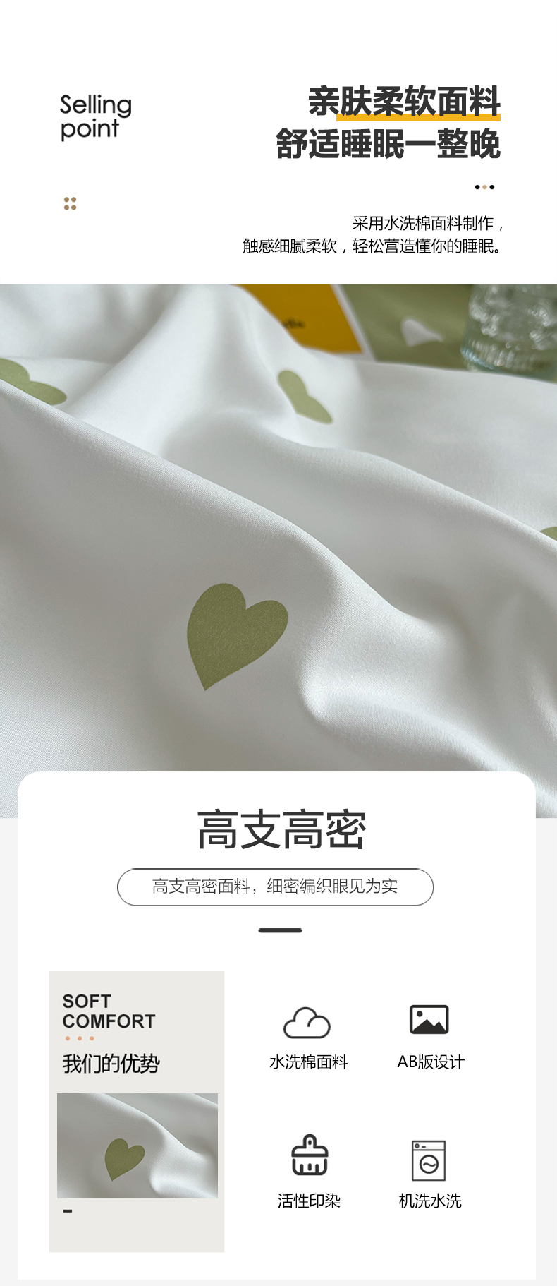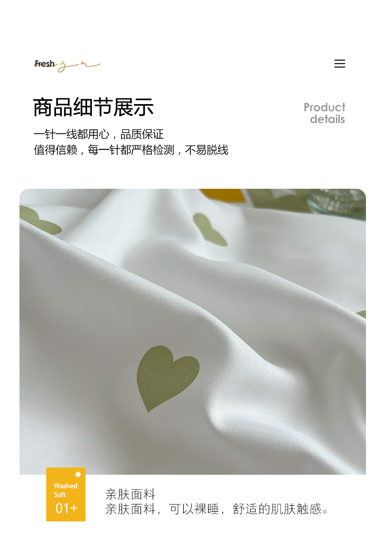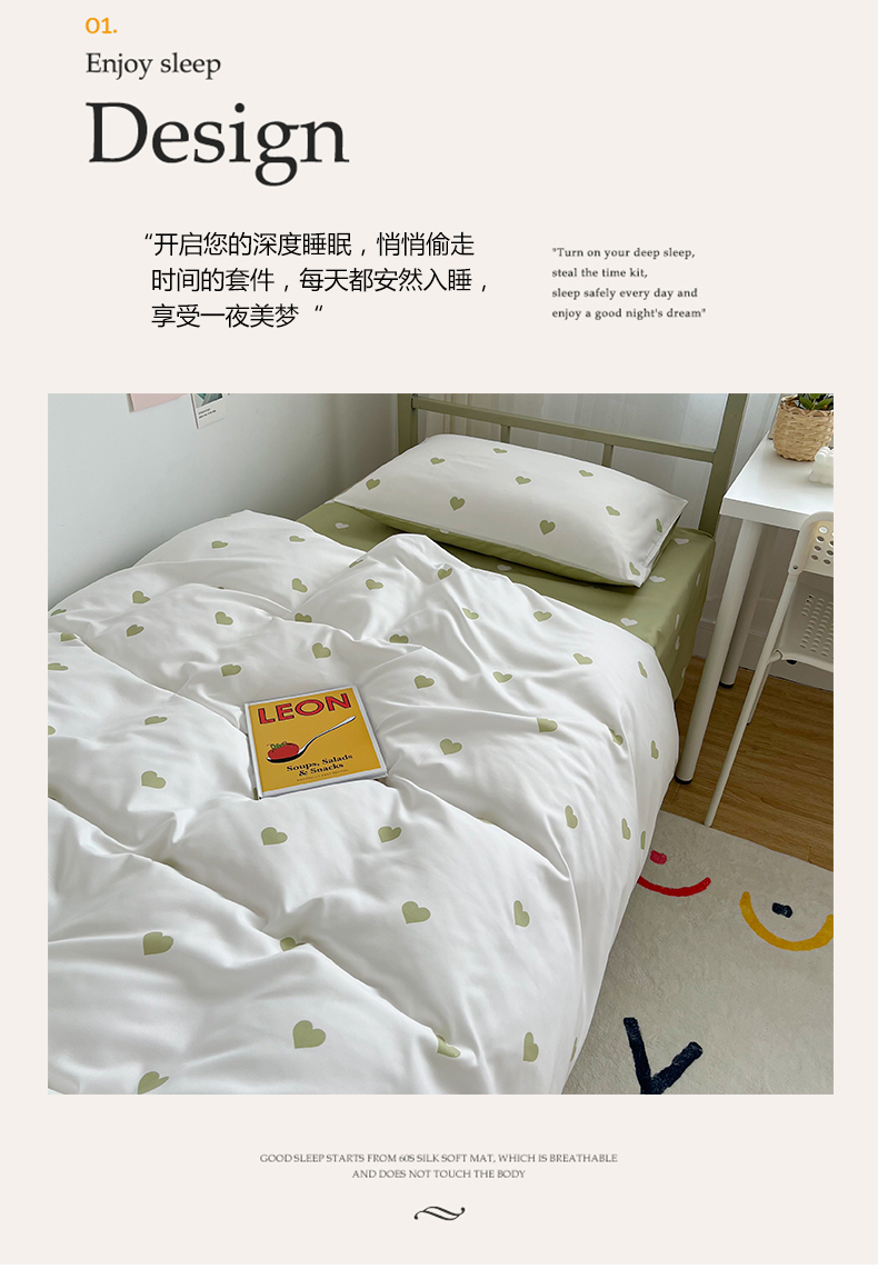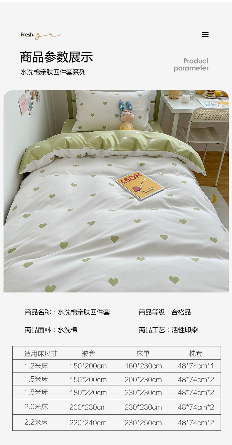 商品名称:悦织湾家纺 2025新款水洗棉亲肤爱心款学生三件套印花轻奢时尚四件套 爱心-浅绿