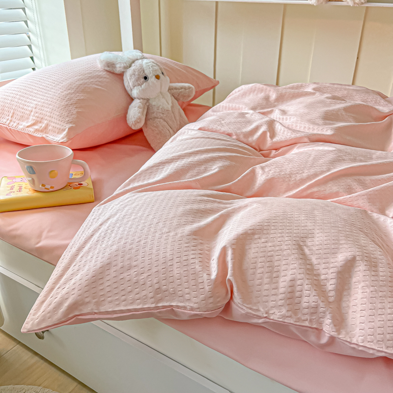 当前位置: 91家纺网 > 商品网购 > 床品套件 > 四件套 > 水洗棉四件套 > 悦织湾家纺 2025新款华夫格压泡亲肤学生宿舍三件套单人床轻奢时尚四件套 华夫格-浅粉