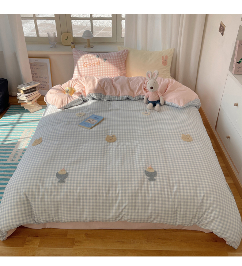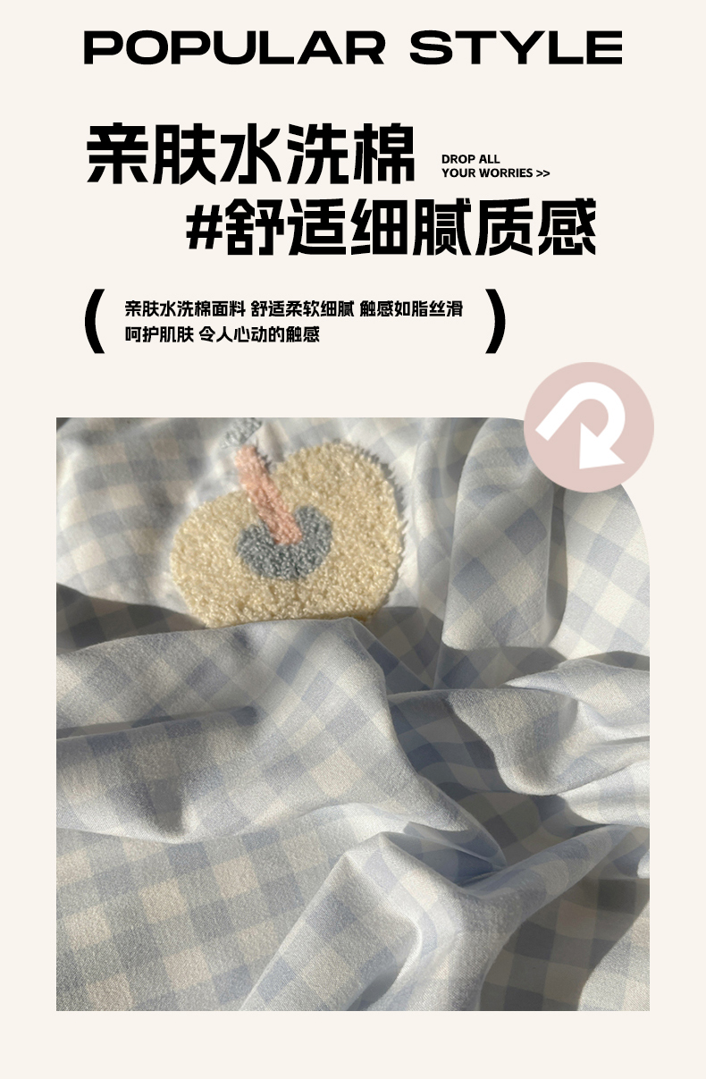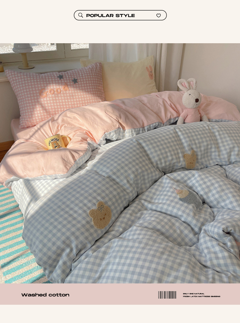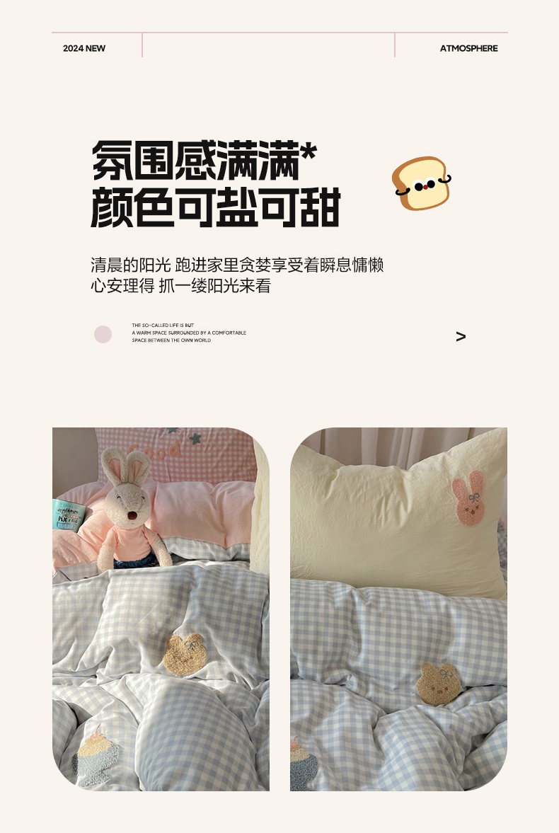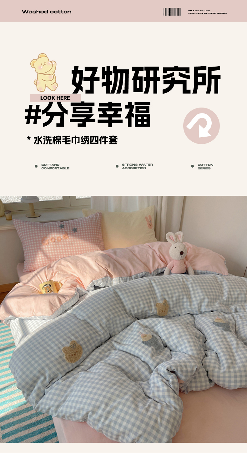 当前位置: 91家纺网 > 商品网购 > 床品套件 > 四件套 > 水洗棉四件套 > 阿曼达 2025新款爆款超甜可爱酷美毛巾绣软糯糯可以裸睡的水洗m纯色格子双拼四件套 泡芙兔-蓝格