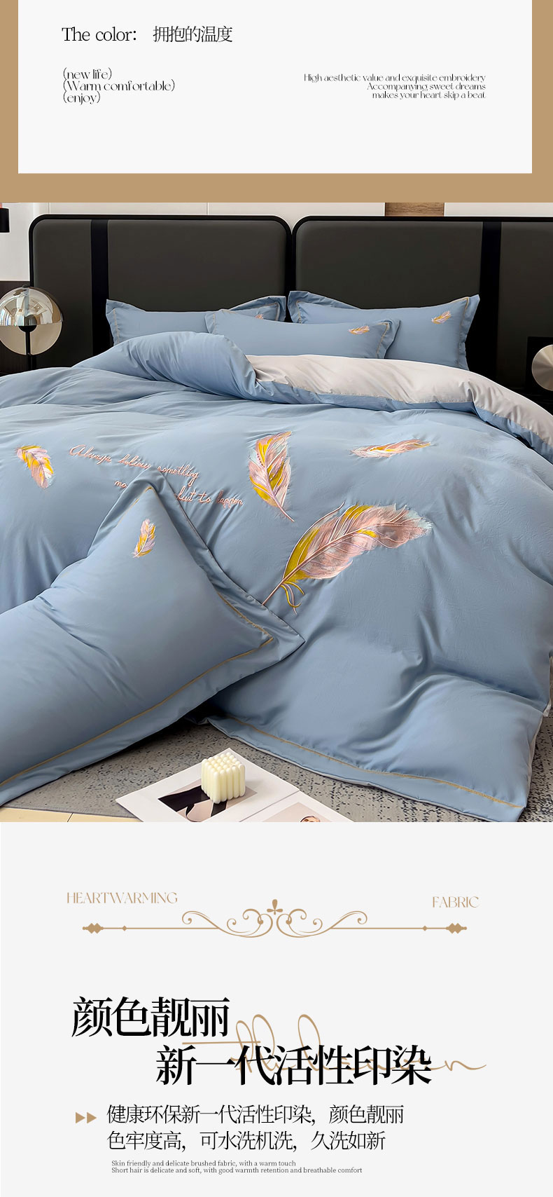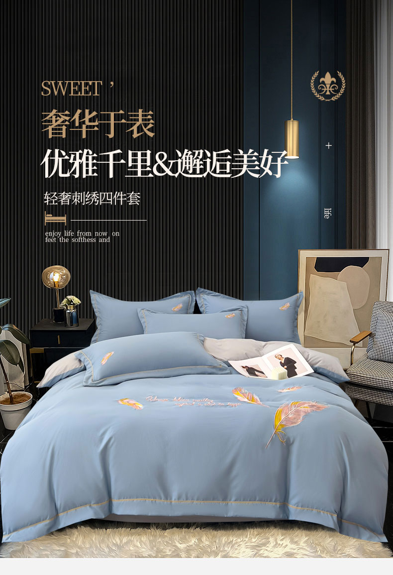当前位置: 91家纺网 > 商品网购 > 床品套件 > 四件套 > 水洗棉四件套 > 灰鲸 2025新款A类轻奢水洗棉刺绣四件套-邂逅 邂逅-宾利蓝+纳多灰