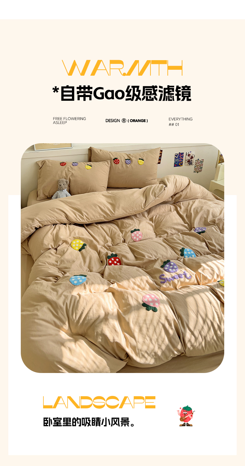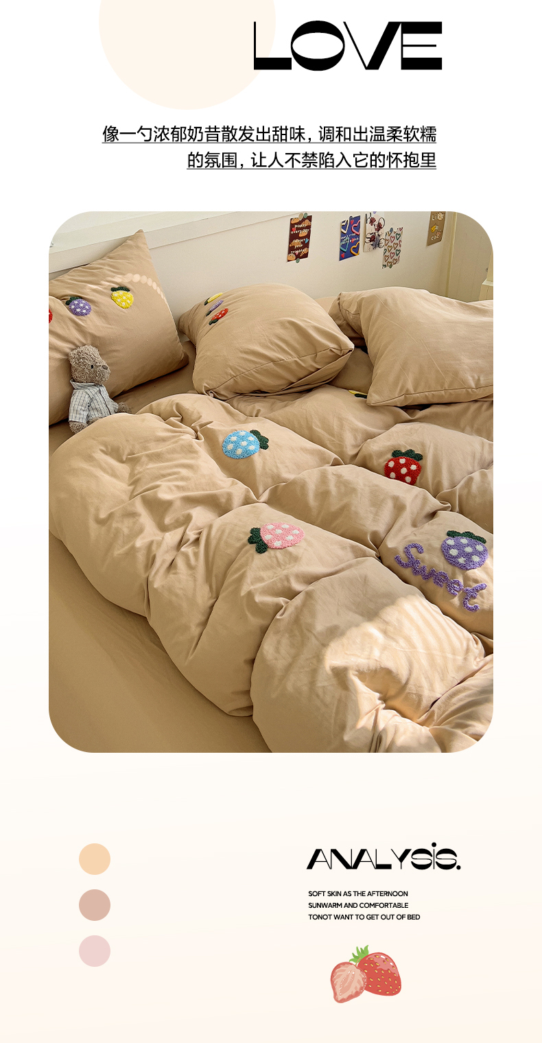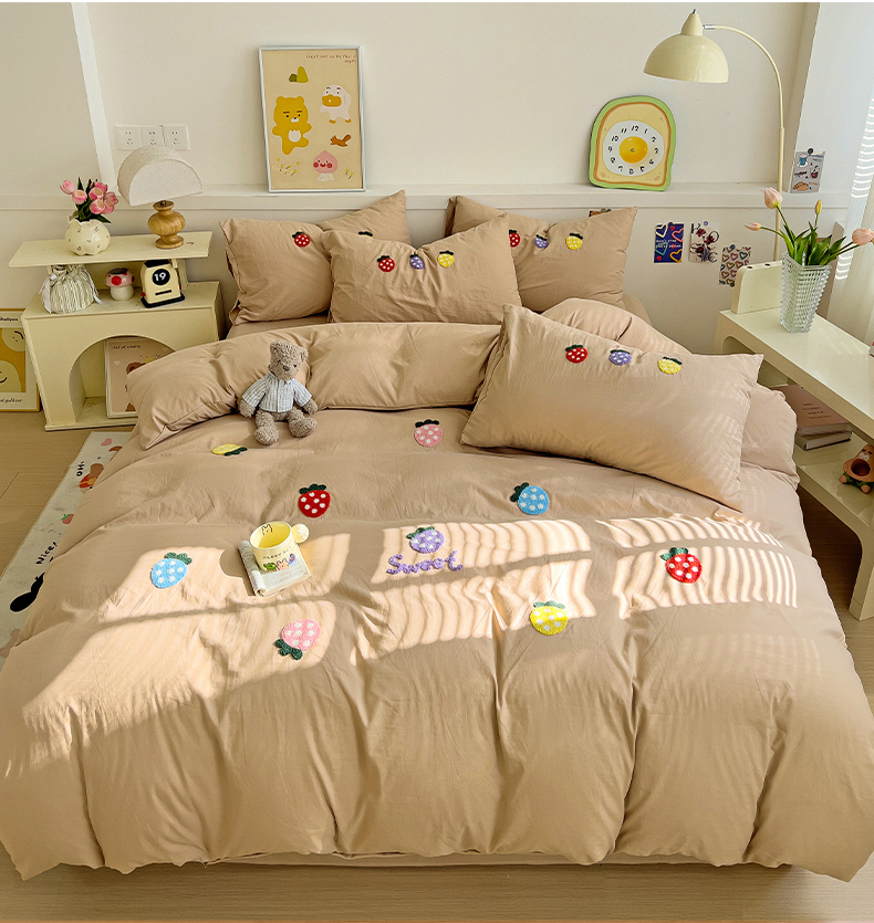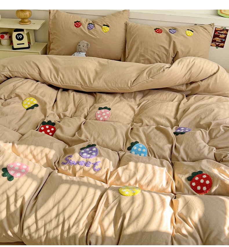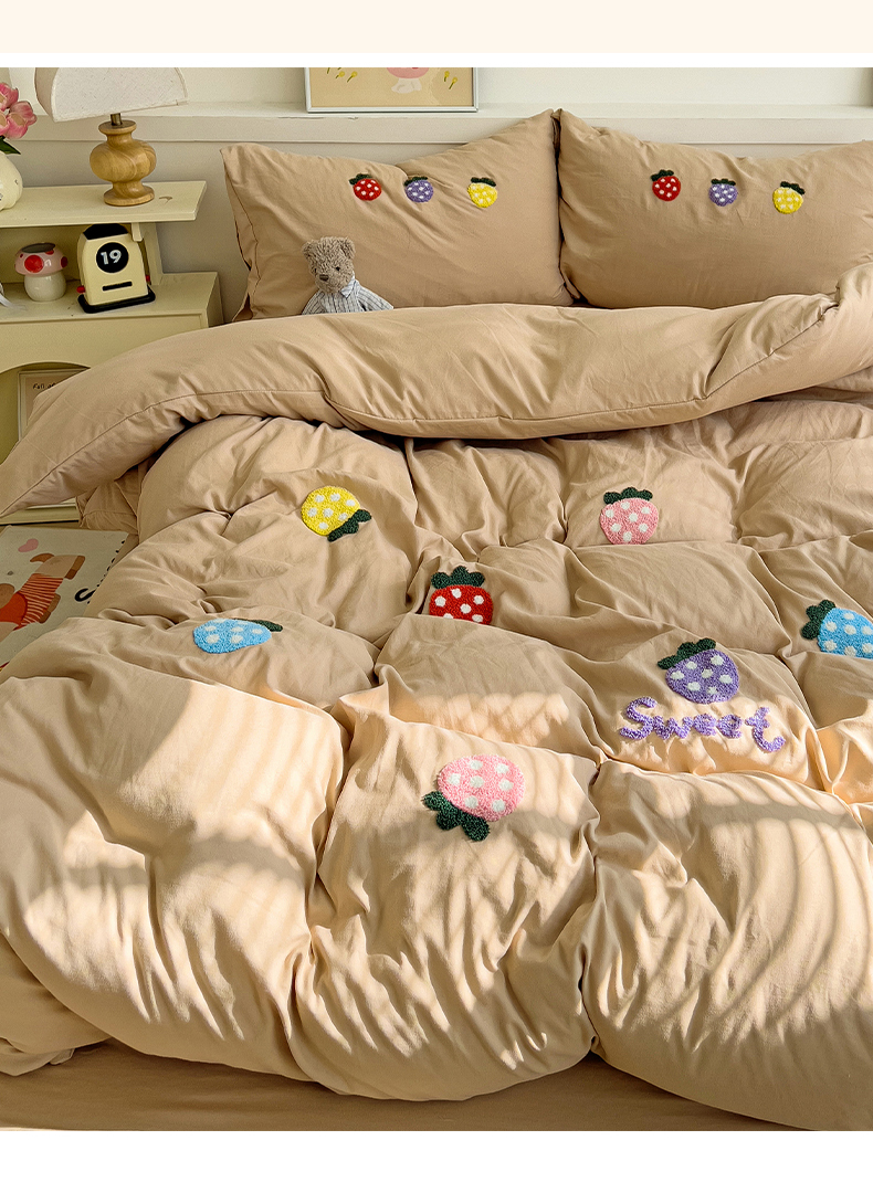 当前位置: 91家纺网 > 商品网购 > 床品套件 > 四件套 > 水洗棉四件套 > 逸尚阁 2025新款小清新毛巾绣四件套(提供买家秀) 草莓-卡其
