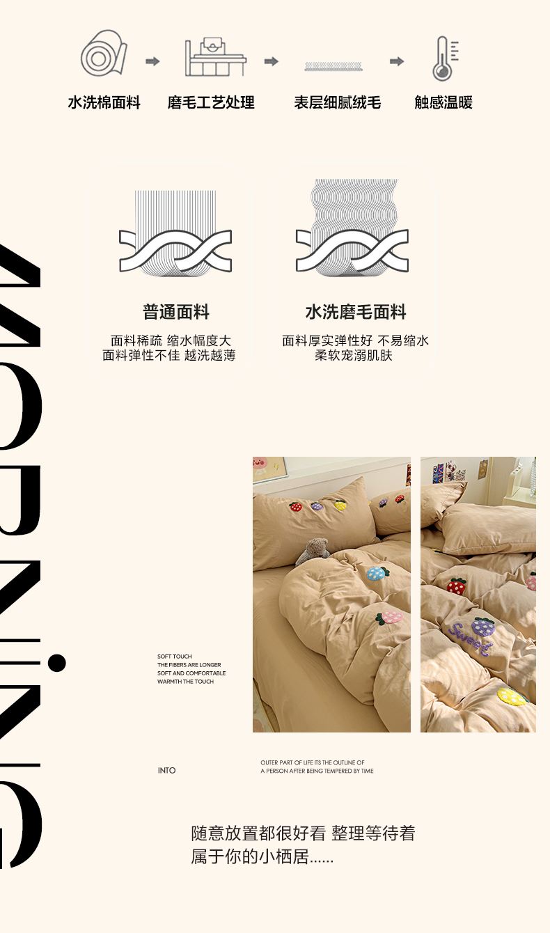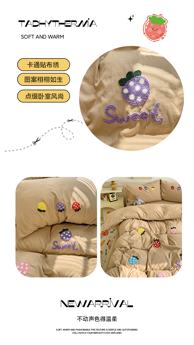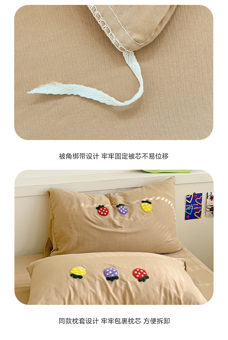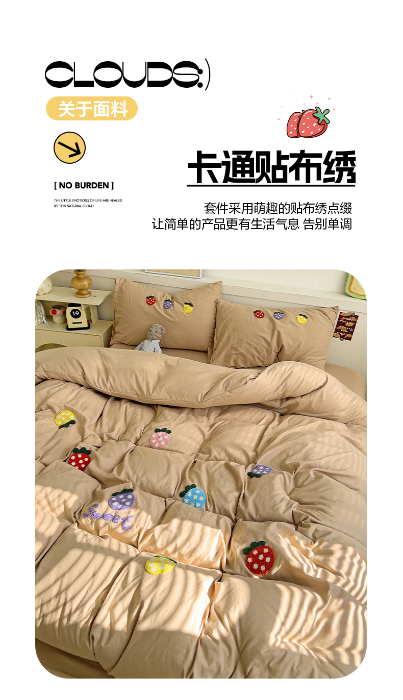 当前位置: 91家纺网 > 商品网购 > 床品套件 > 四件套 > 水洗棉四件套 > 逸尚阁 2025新款小清新毛巾绣四件套(提供买家秀) 草莓-卡其