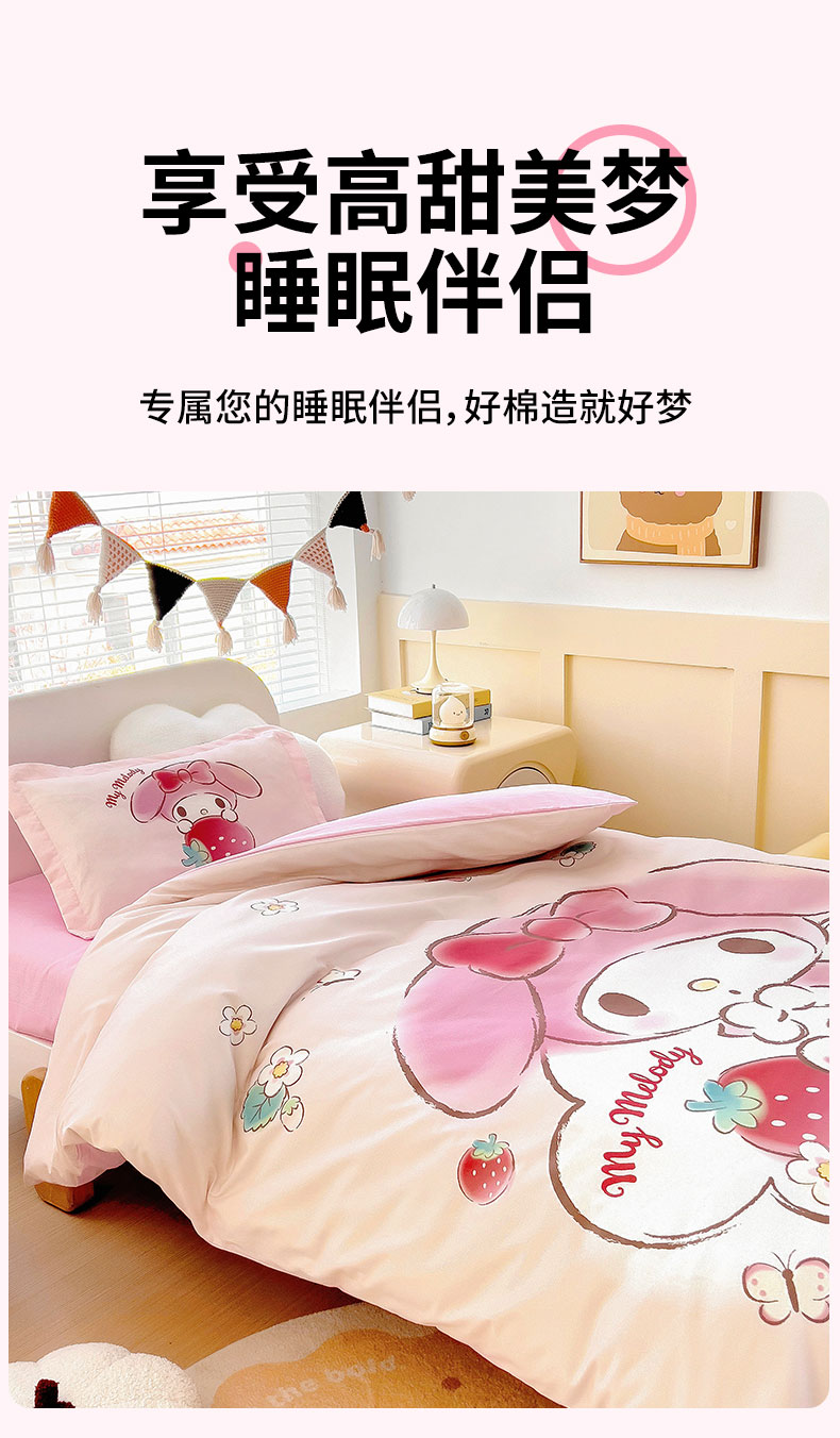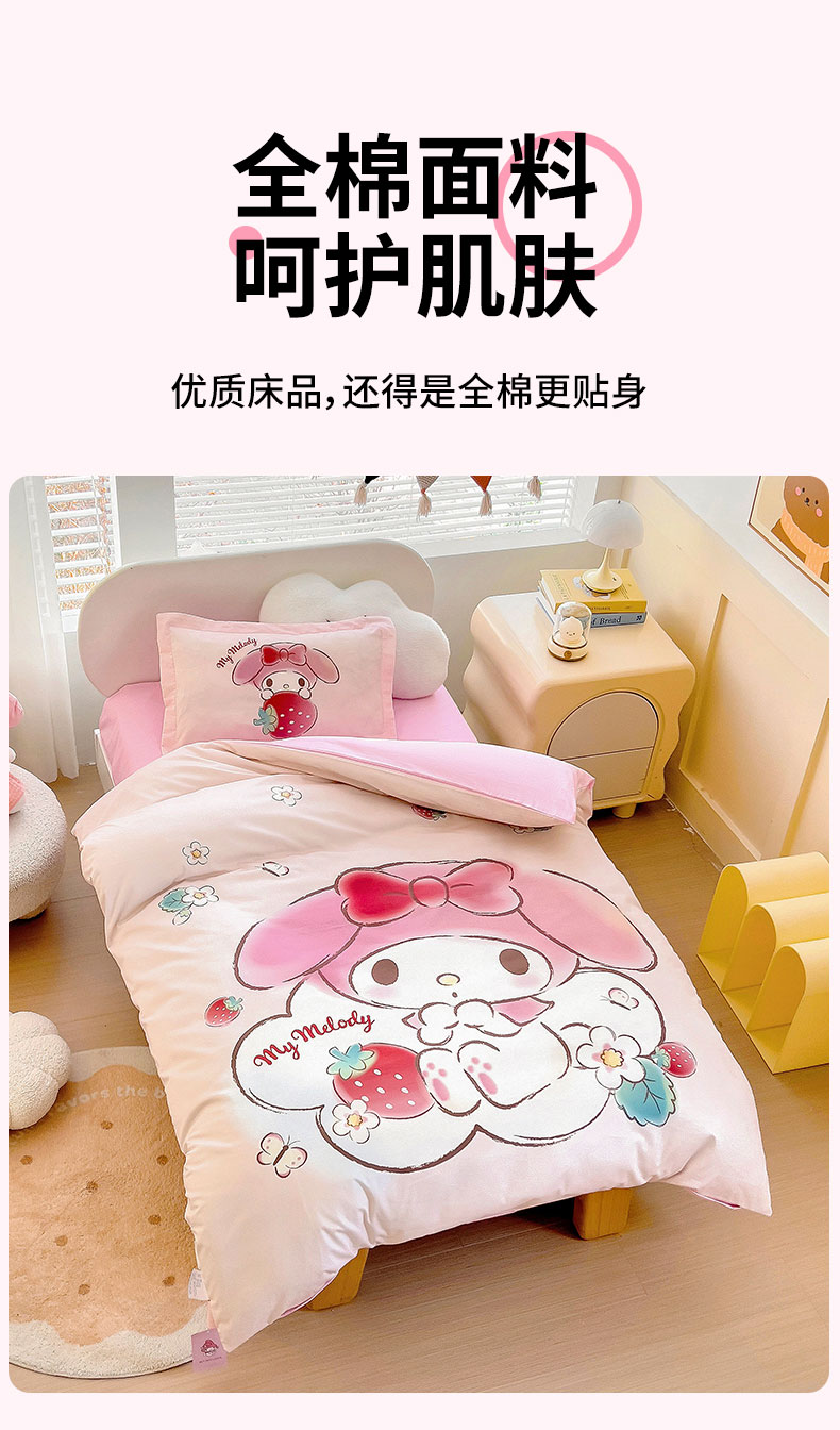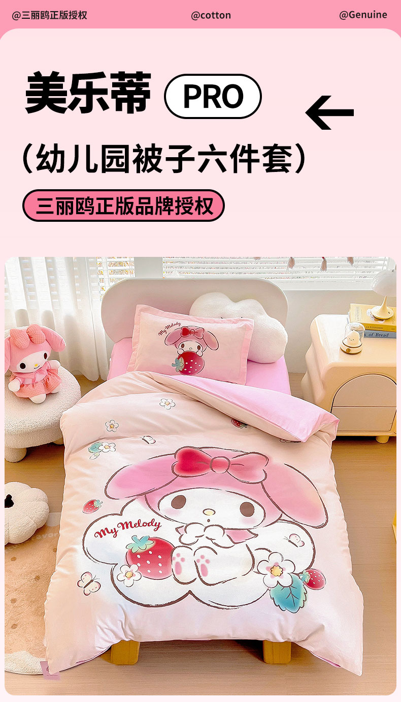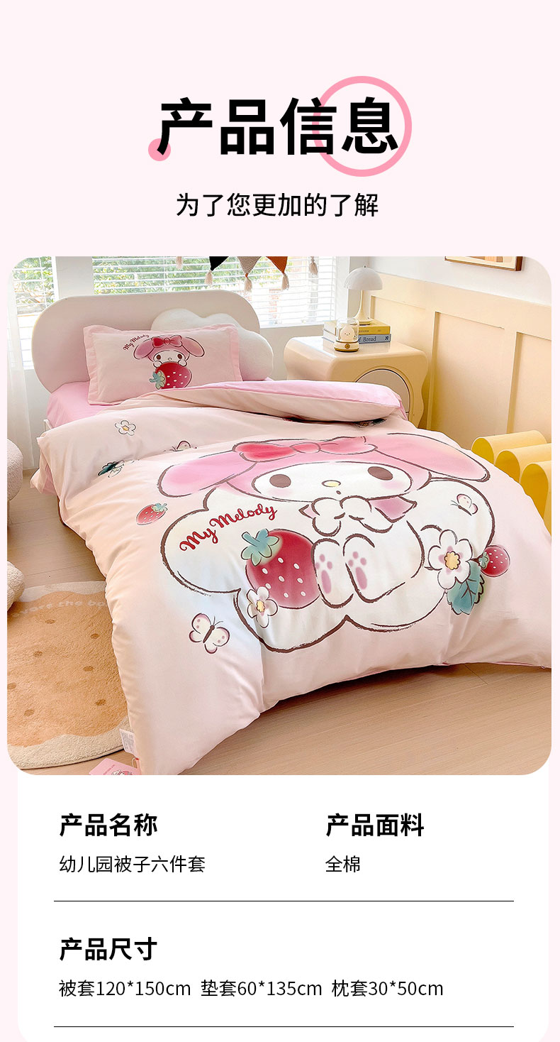 当前位置: 91家纺网 > 商品网购 > 床品套件 > 多件套 > 多件套 > 乐秀家纺 2025新款全棉A类大版定位幼儿园被子三件套卡通三丽鸥被套被芯六件套 花朵美乐蒂