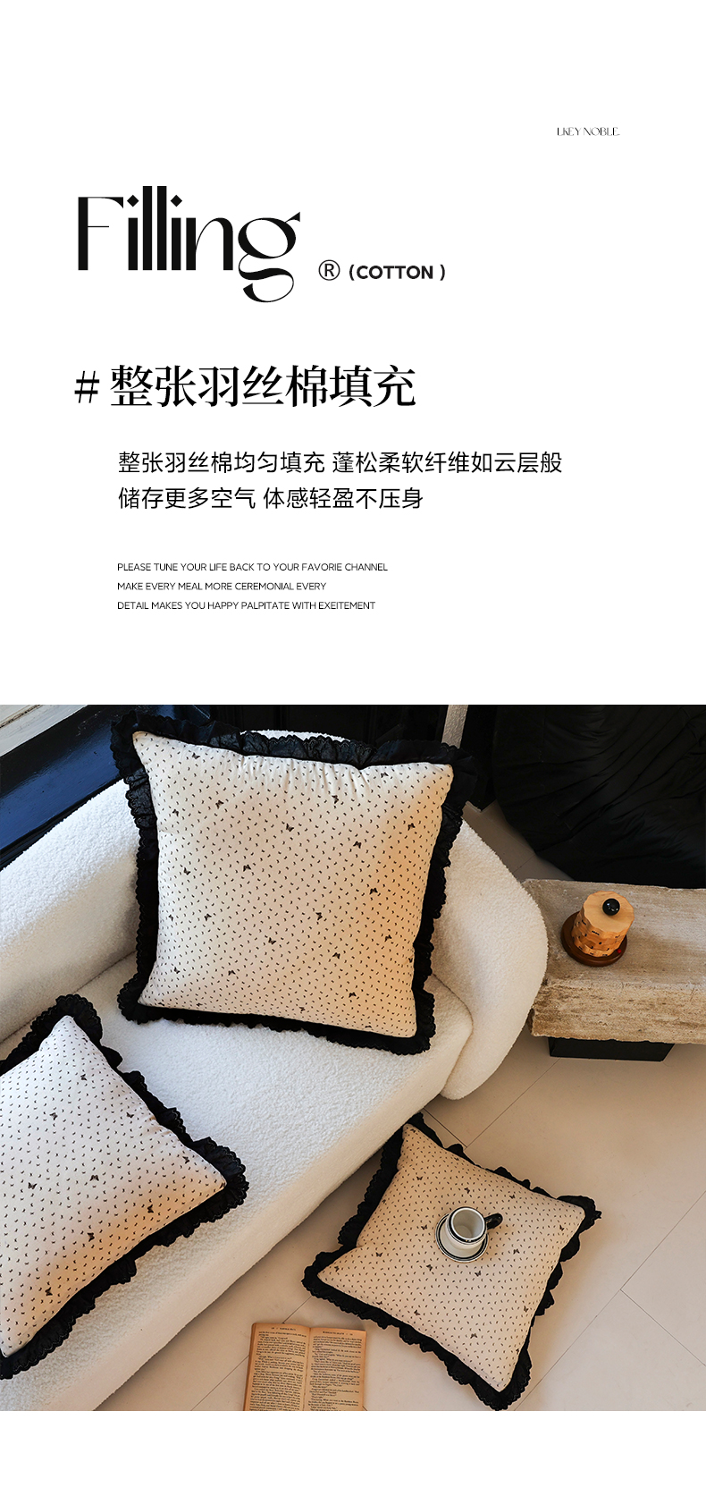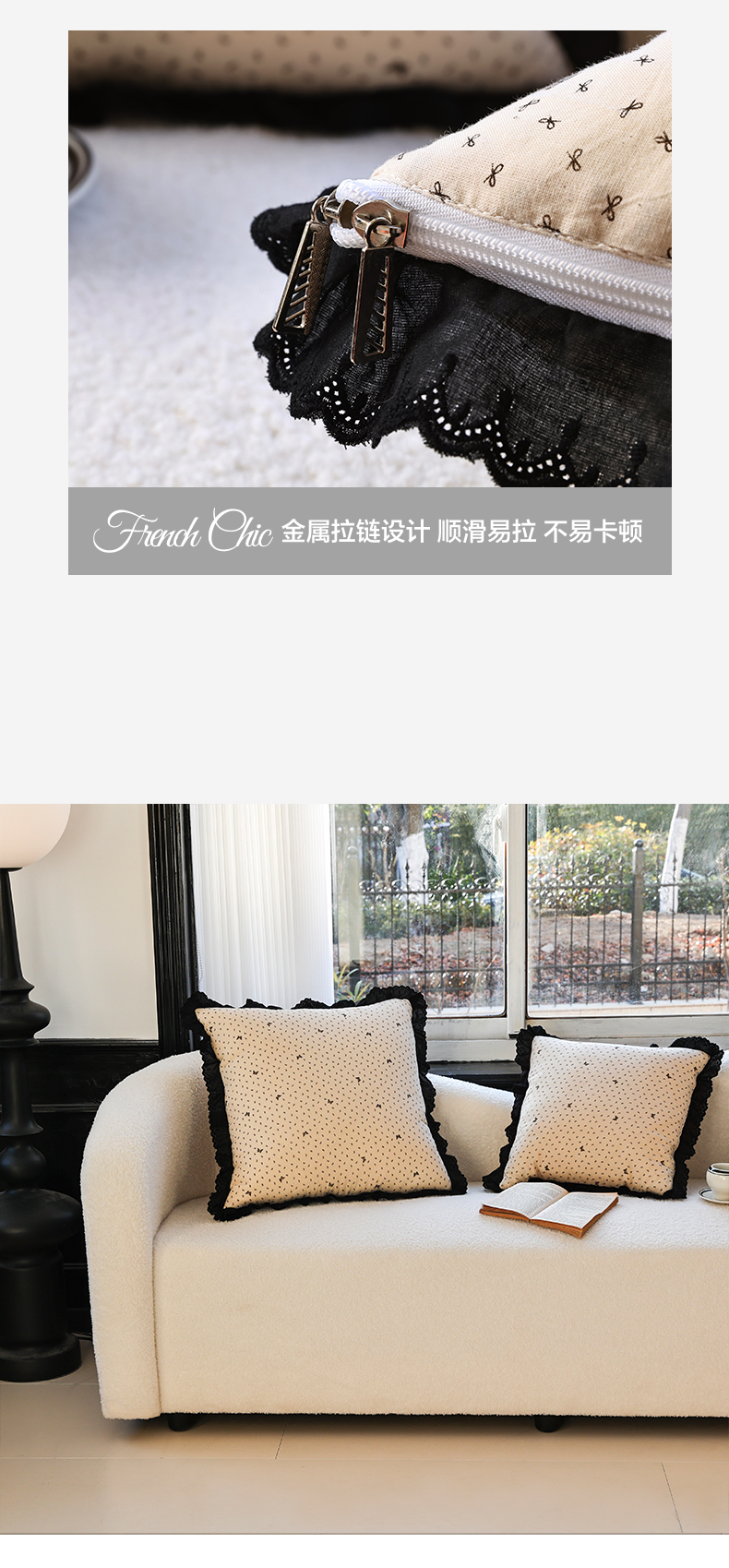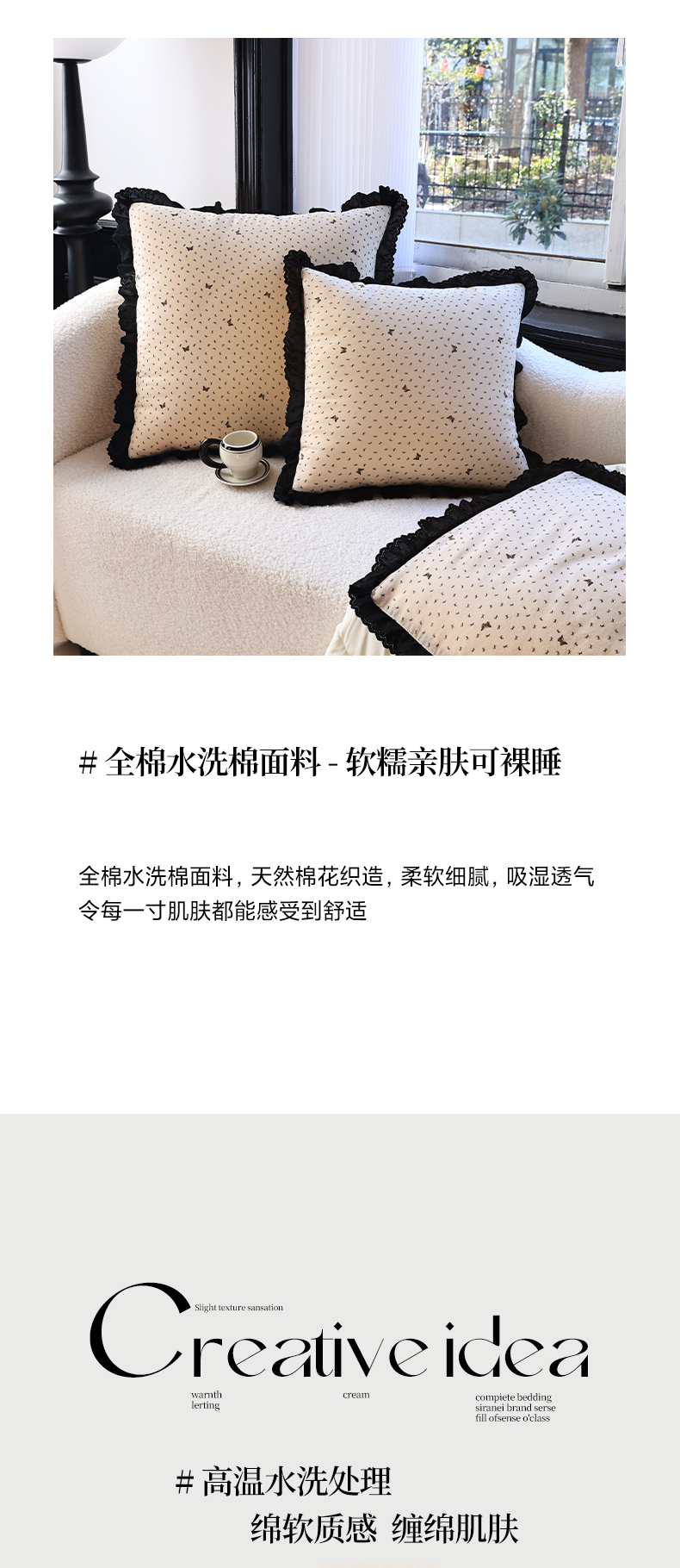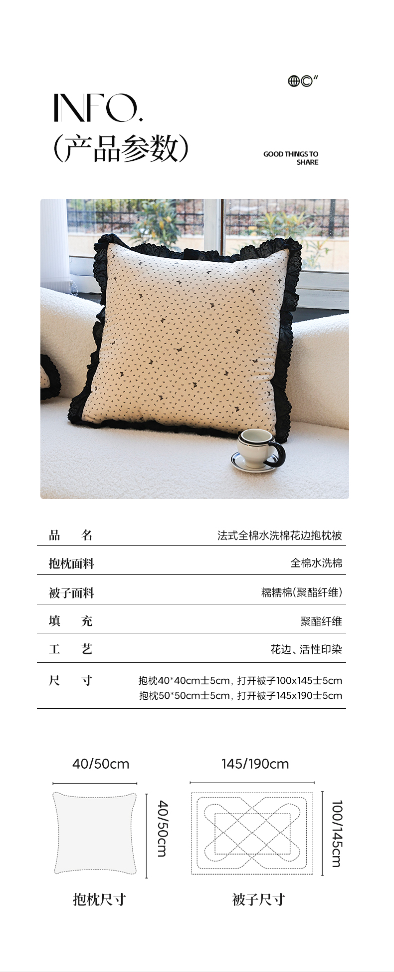 商品名称:番茄+ 2025新款法式全棉黑花边抱枕被系列 蝶梦黄