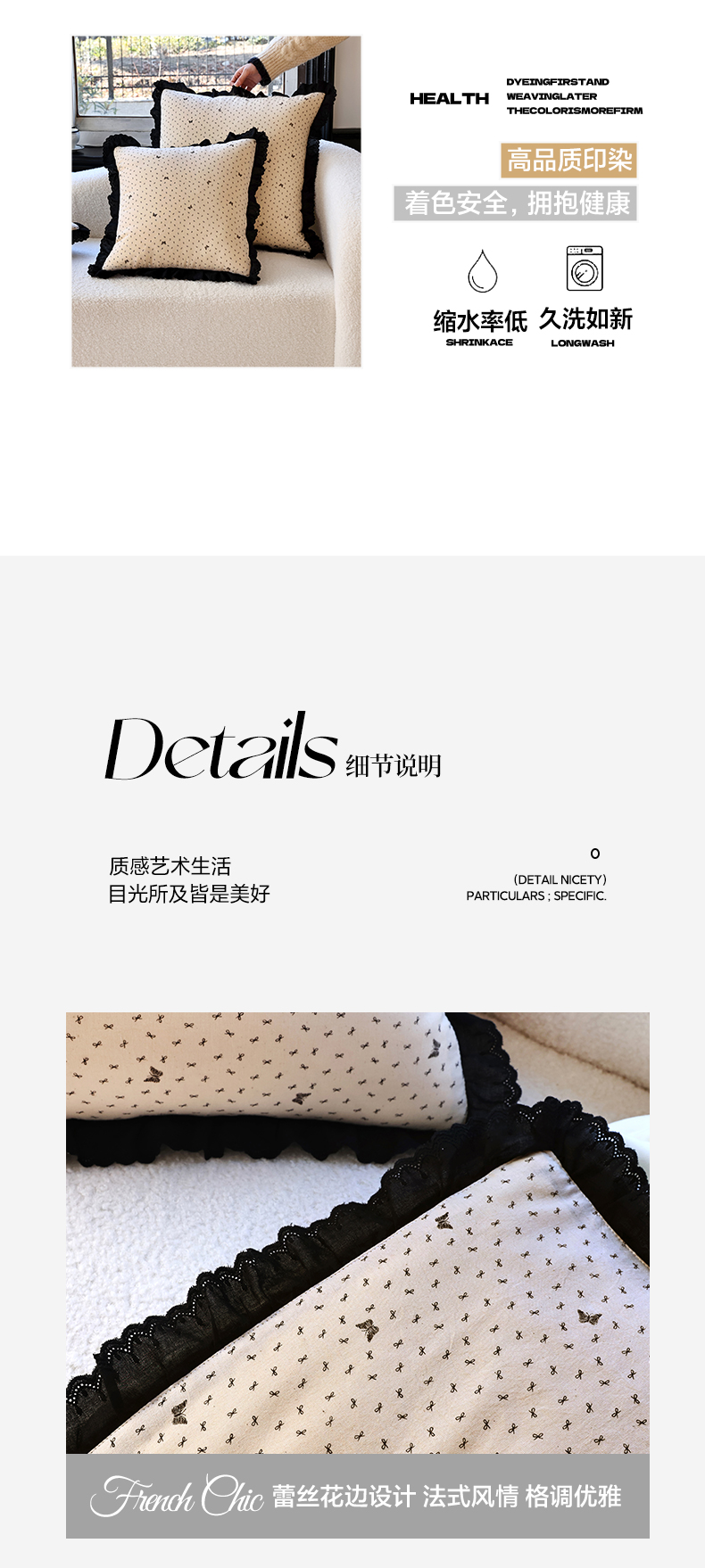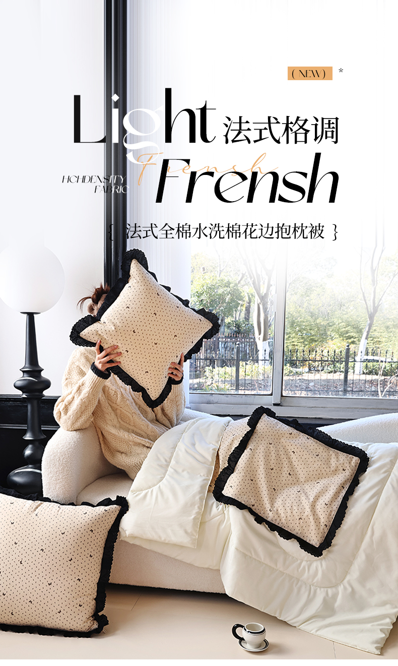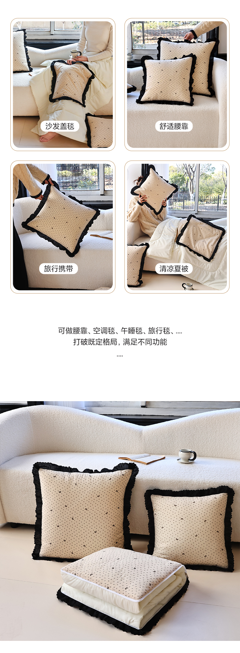 番茄+ 2025新款法式全棉黑花边抱枕被系列 蝶梦黄