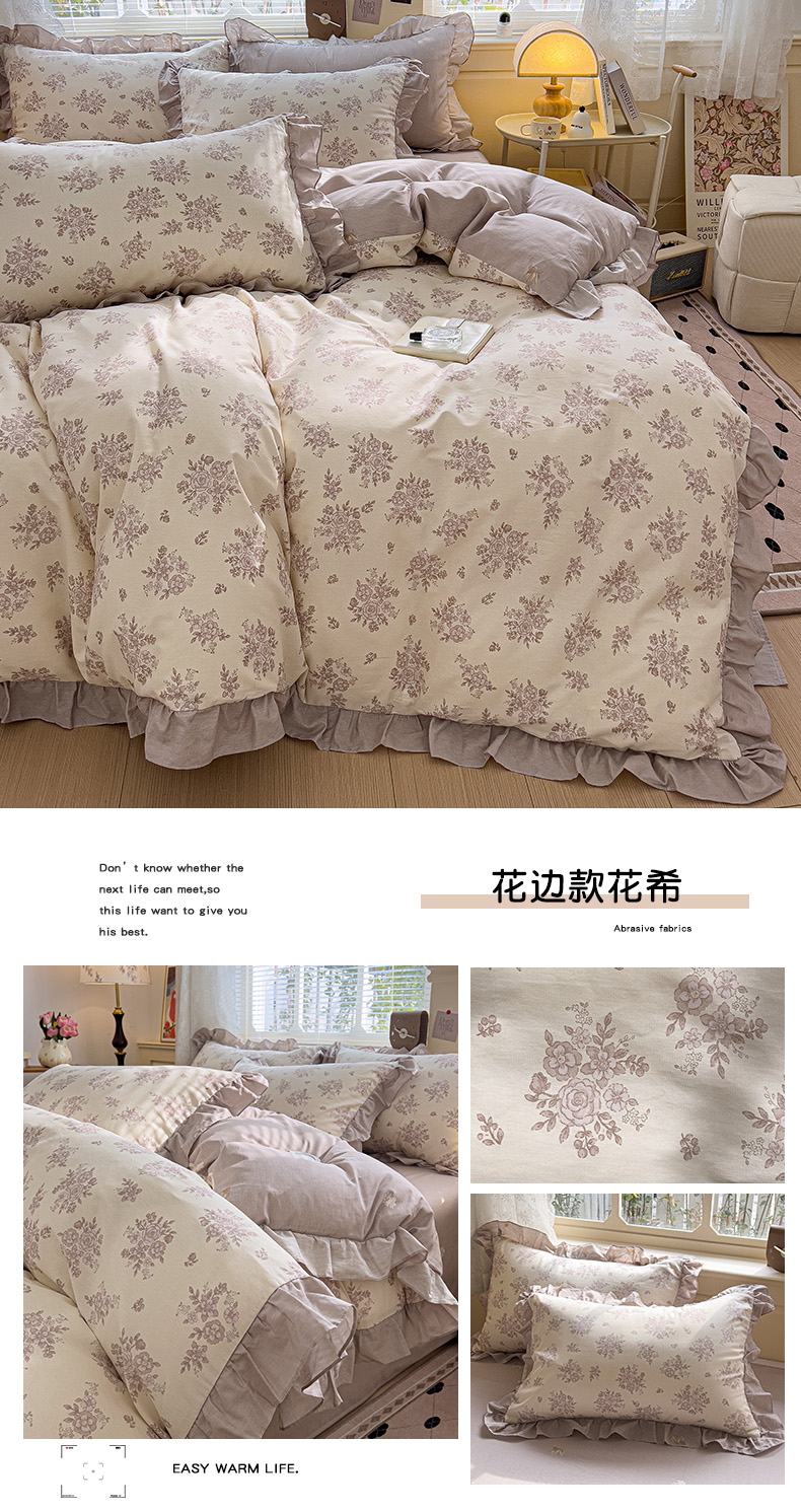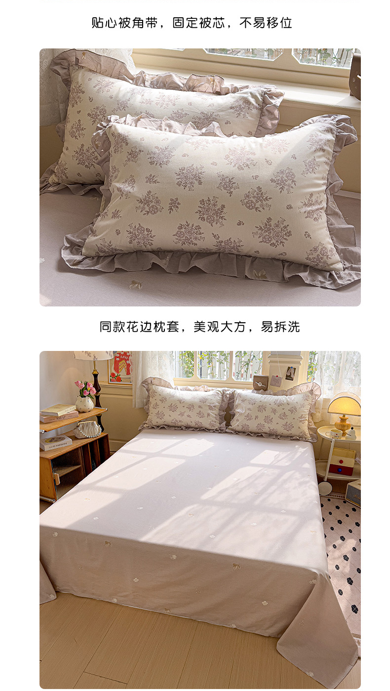 当前位置: 91家纺网 > 商品网购 > 床品套件 > 四件套 > 全棉普通四件套 > 忆生活家纺 2025新款韩版全棉花边四件套 花边款花希