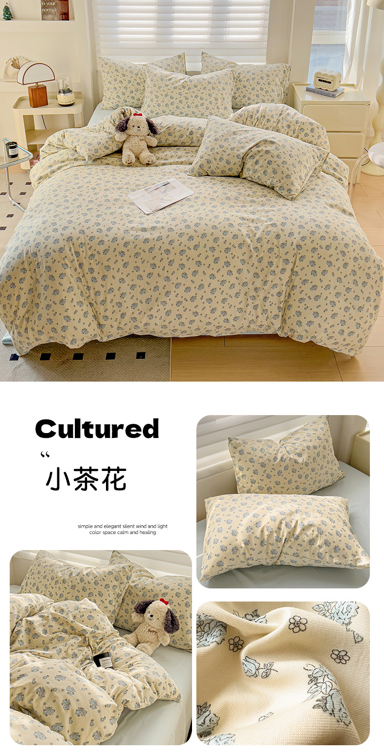商品名称:源莱 2025新款加厚针织棉双层纱系列四件套直播爆款 小茶花