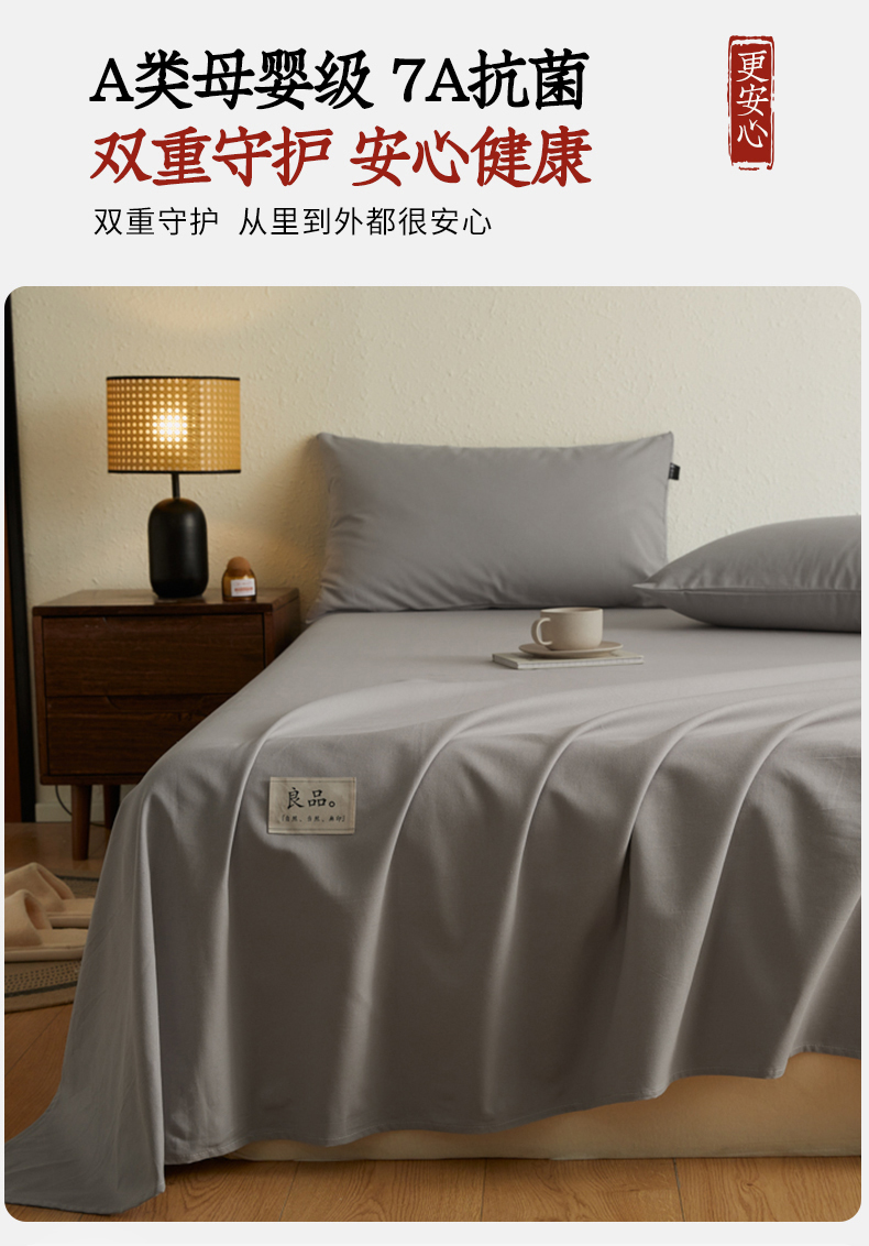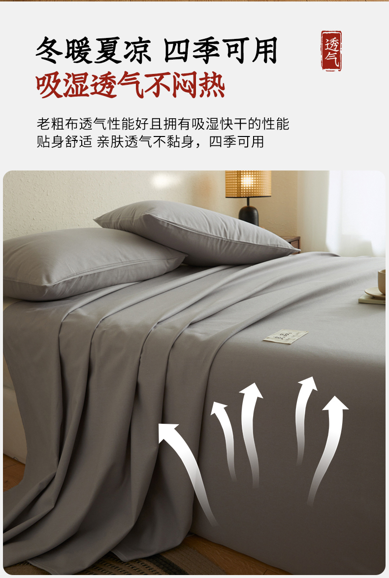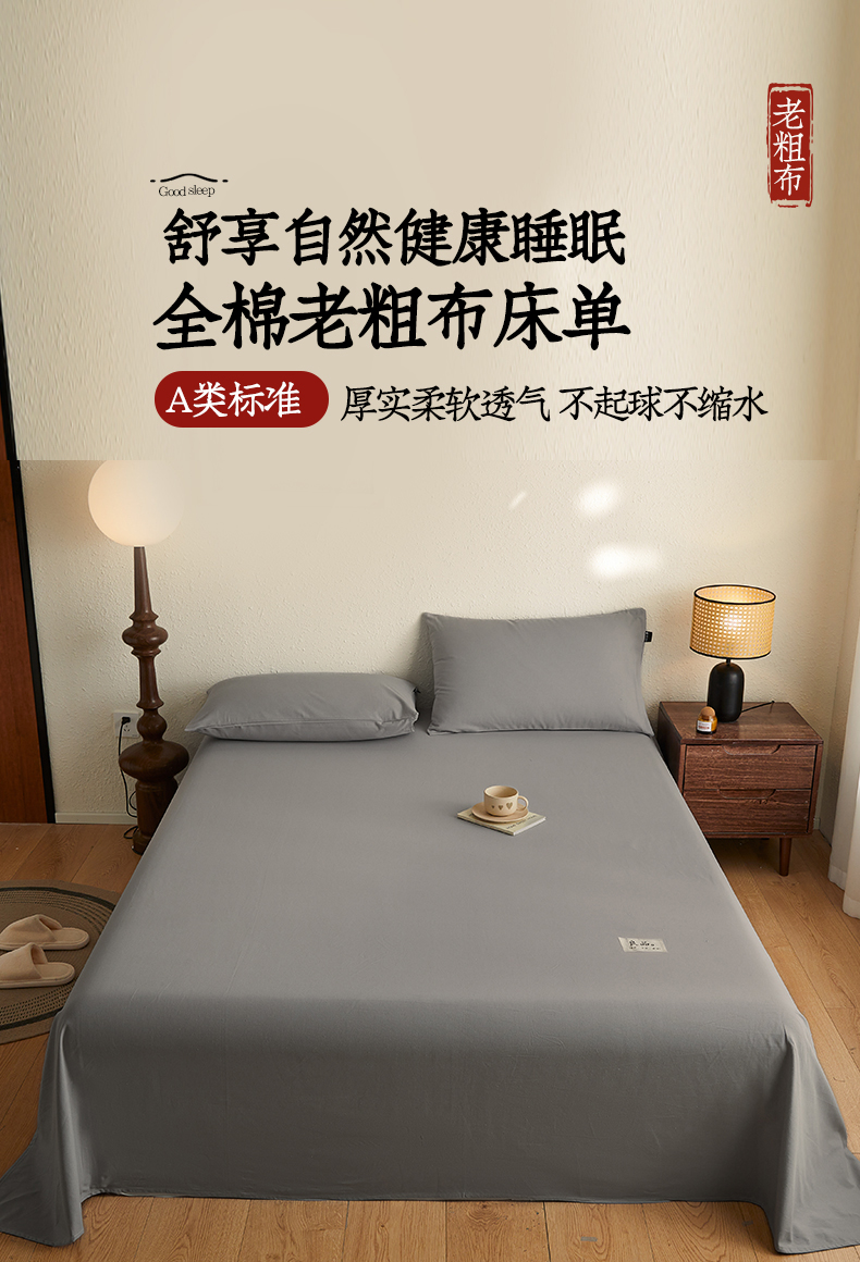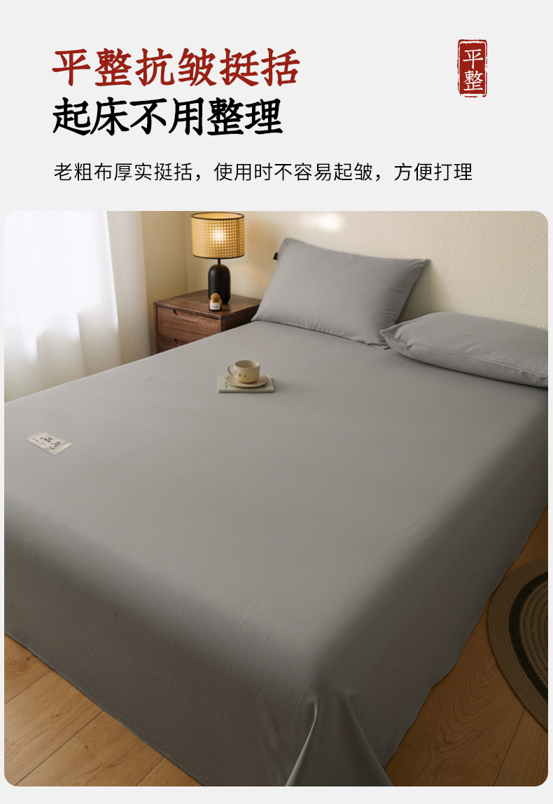 商品名称:鑫钰2025新款纯棉全棉老粗布床单--LP纯色系列 烟灰