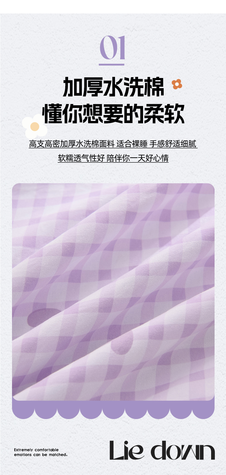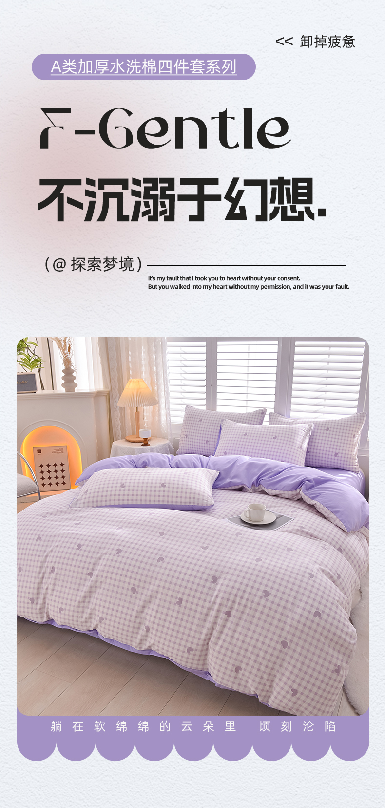 当前位置: 91家纺网 > 商品网购 > 床品套件 > 四件套 > 水洗棉四件套 > 迪拜家纺 2025新款加厚水洗棉四件套-紫小格