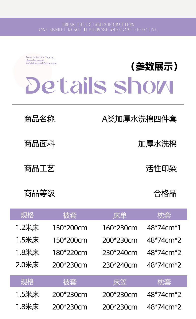 1.5m床笠款四件套(被套200*230cm) | ¥45.00 |