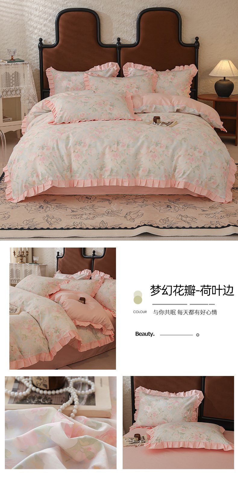 当前位置: 91家纺网 > 商品网购 > 床品套件 > 四件套 > 全棉普通四件套 > 简宜2025新款荷叶双层纯棉边四件套 梦幻花瓣-荷叶边