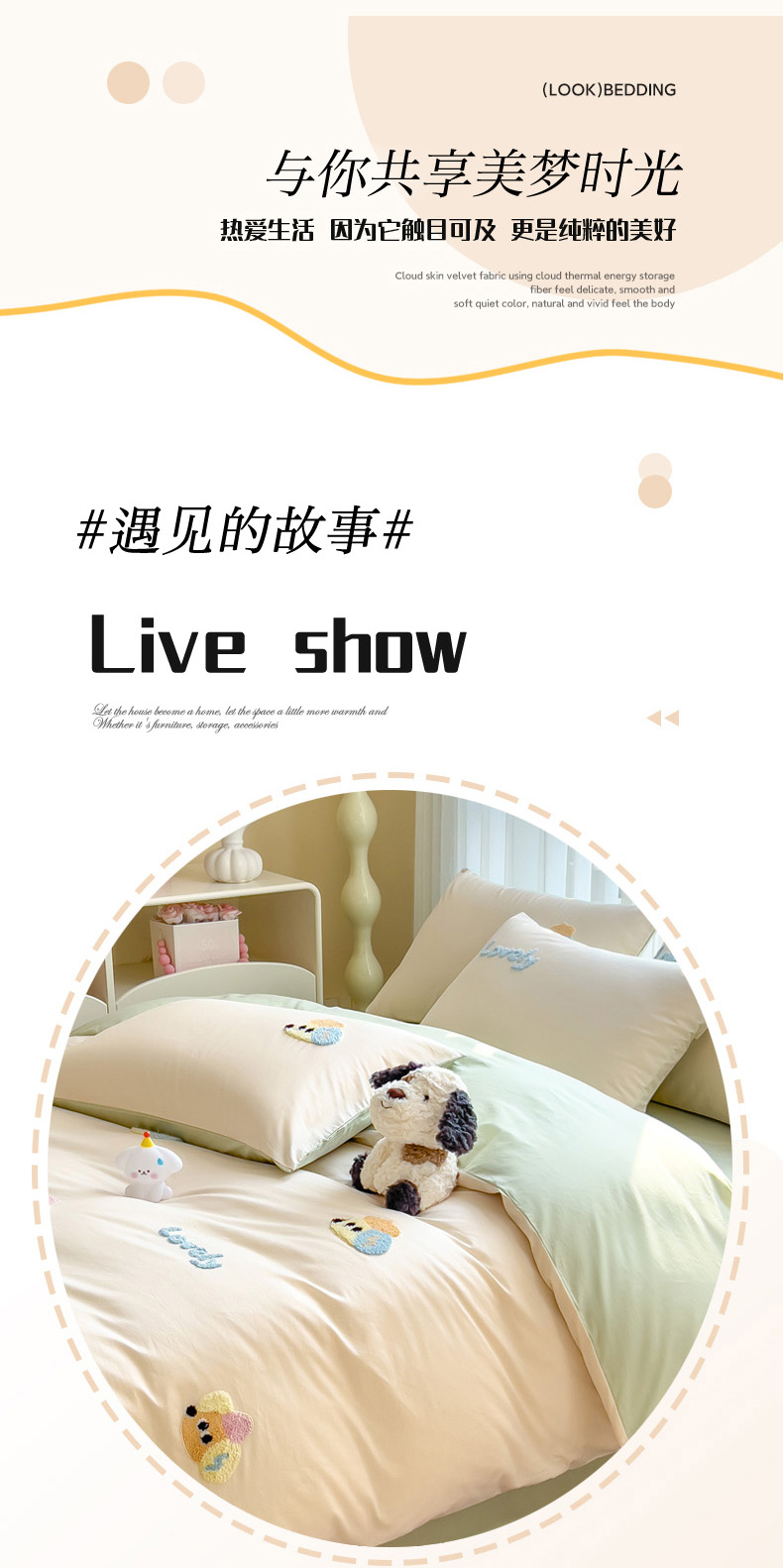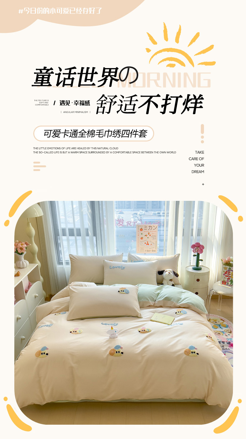 商品名称:(总)斯尔顿 2025年新款全棉四件套13372纯棉绣花三件套毛巾绣四件套学生套装NB熊系列