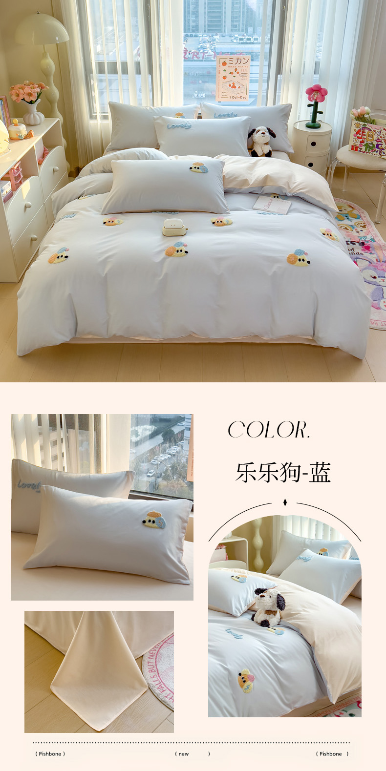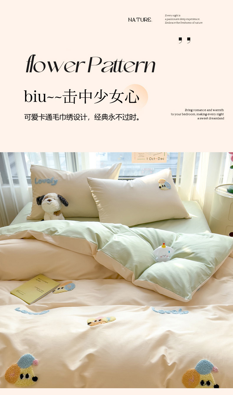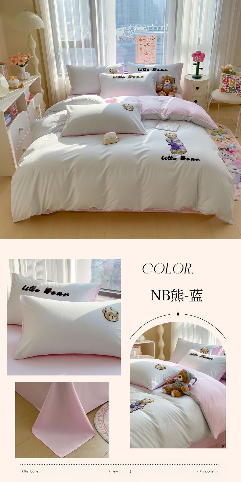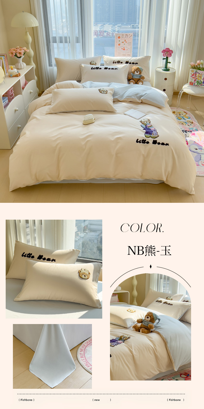 (总)斯尔顿 2025年新款全棉四件套13372纯棉绣花三件套毛巾绣四件套学生套装NB熊系列
