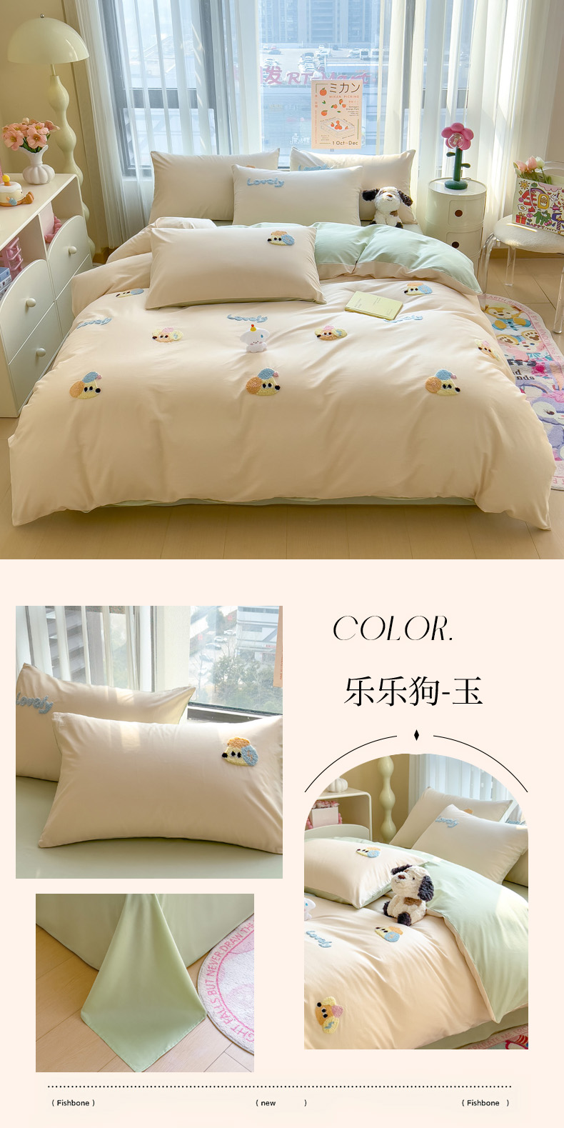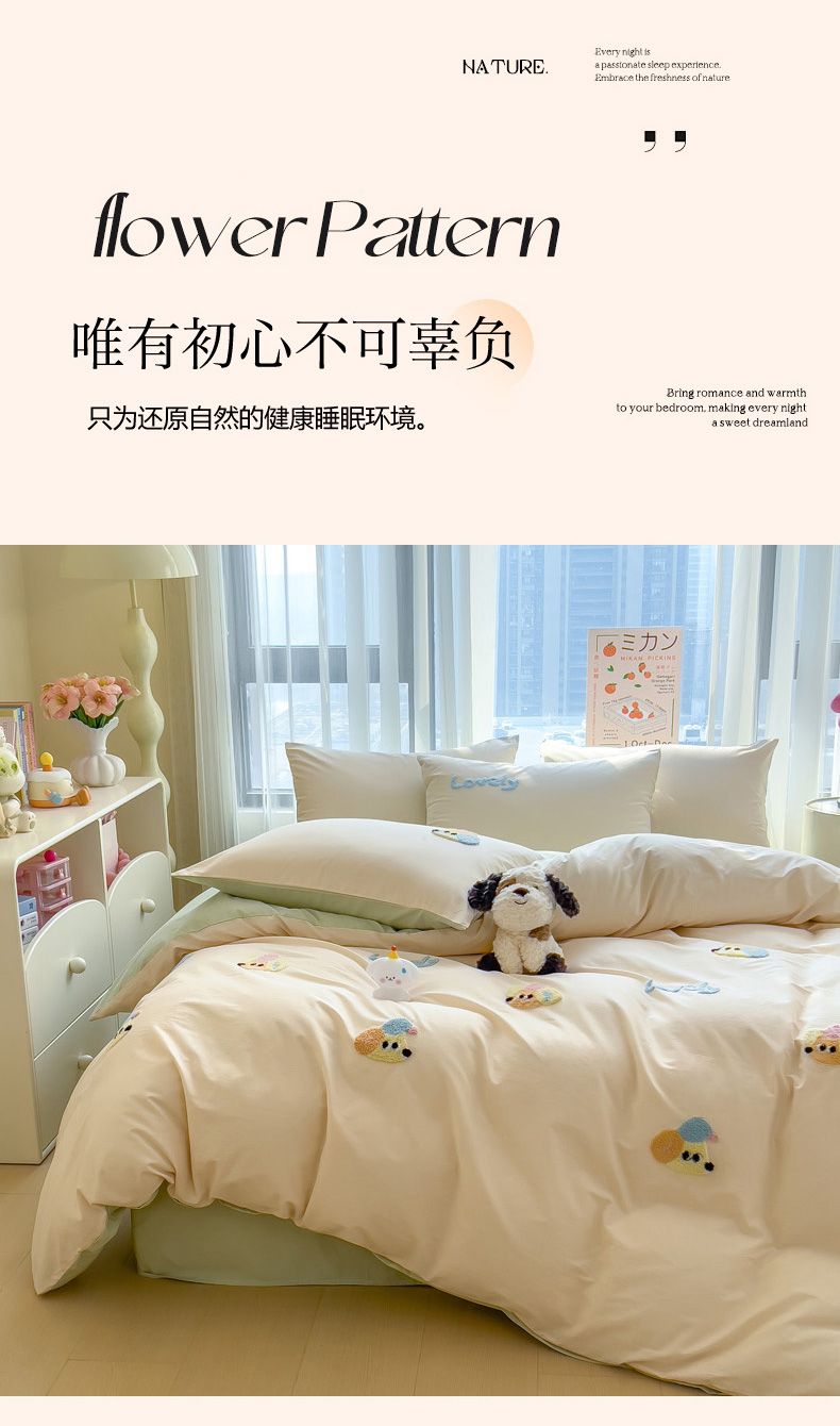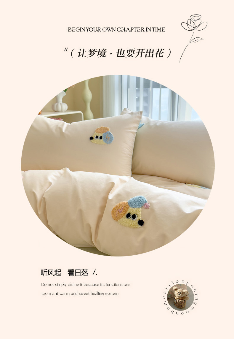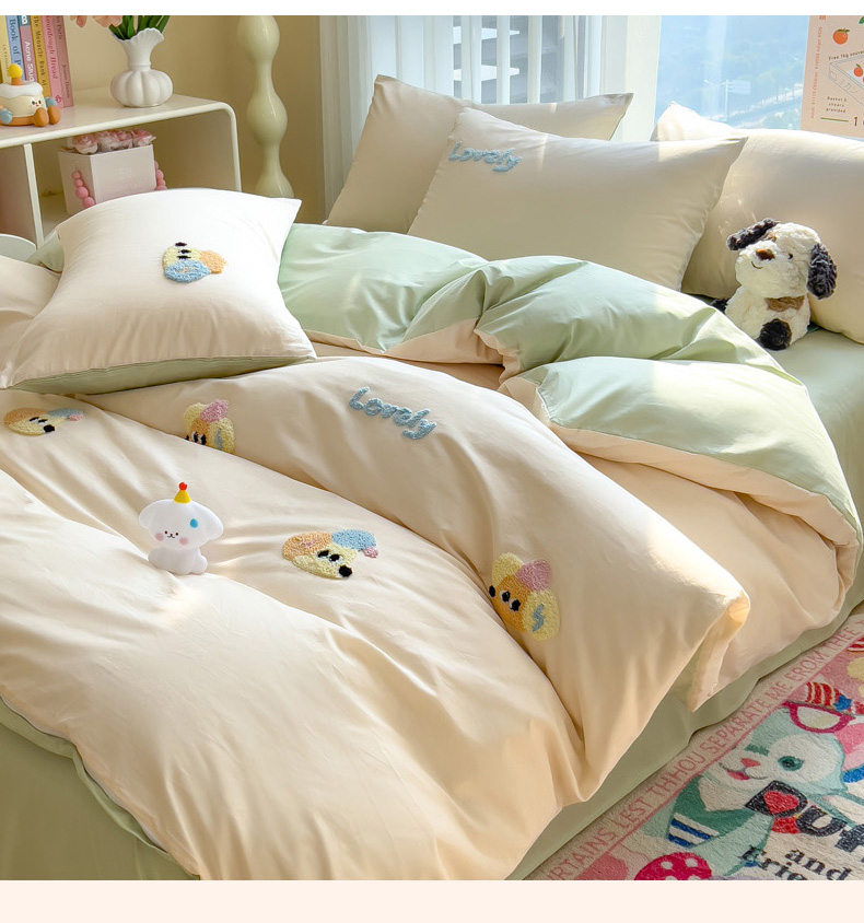 (总)斯尔顿 2025年新款全棉四件套13372纯棉绣花三件套毛巾绣四件套学生套装NB熊系列