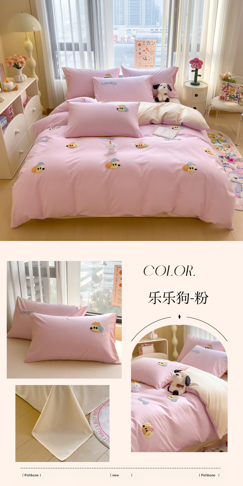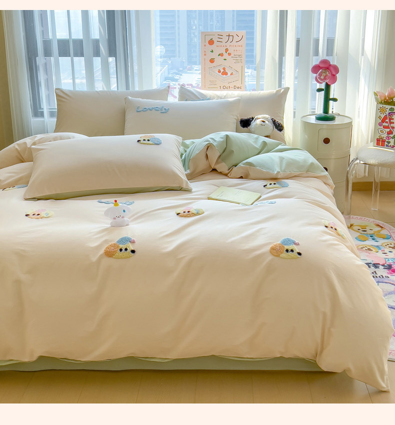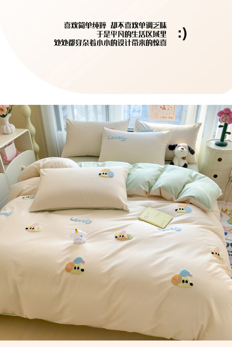 (总)斯尔顿 2025新款全消光贴布绣四件套,大美兔-粉,大美兔-黄,大美兔-蓝,大美兔-紫,汉堡-黄,汉堡-卡其
