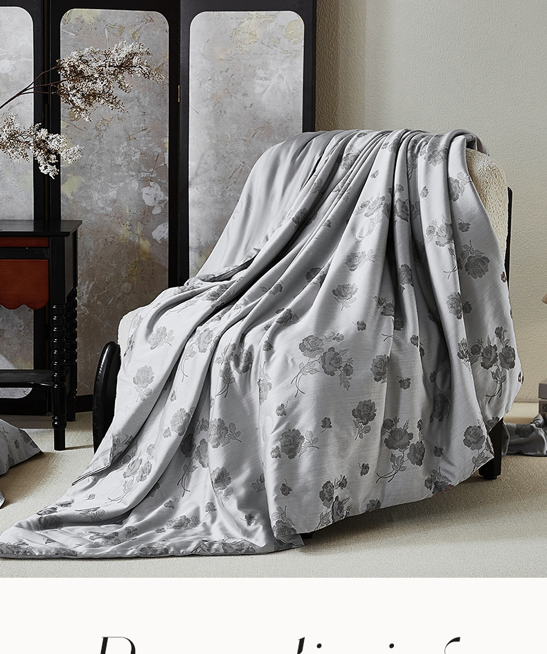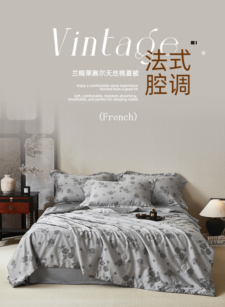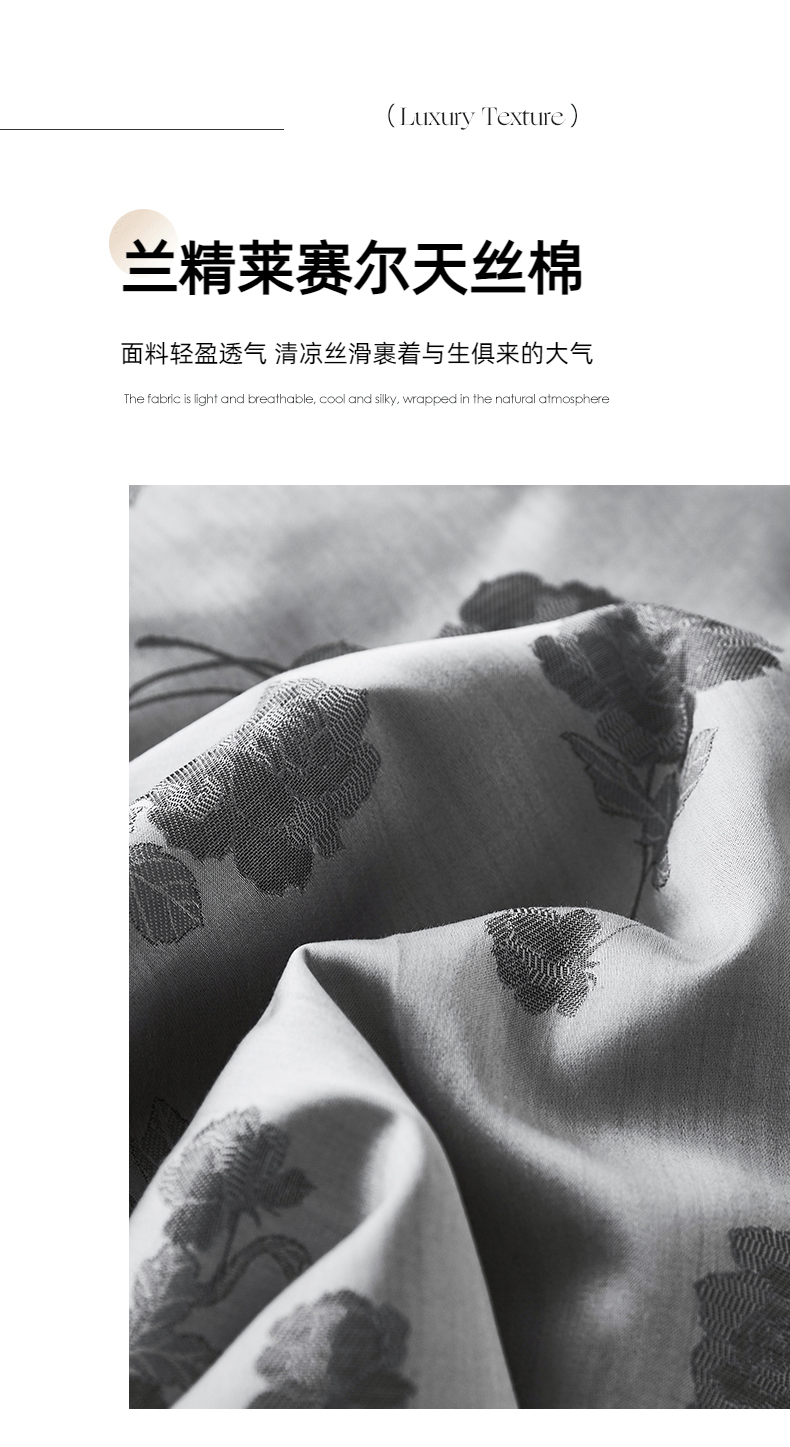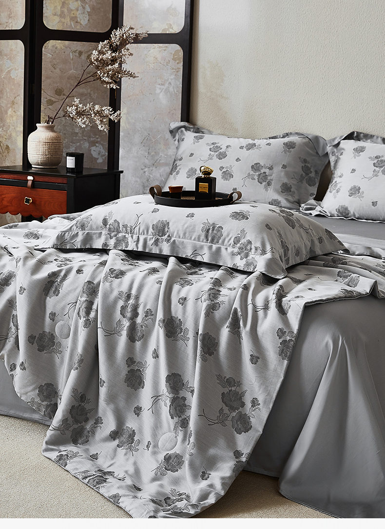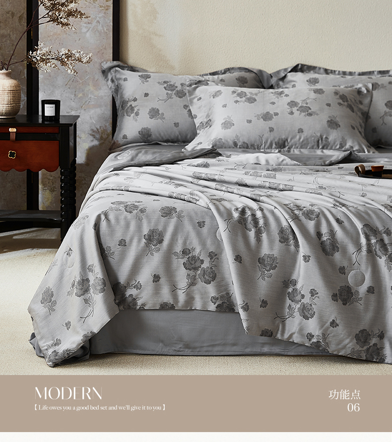 当前位置: 91家纺网 > 商品网购 > 被子 > 莱赛尔夏被 > 鸣升家纺 2025新款莱赛尔兰精天丝棉色织大提花大豆夏凉被四件套 雾野山亭-灰