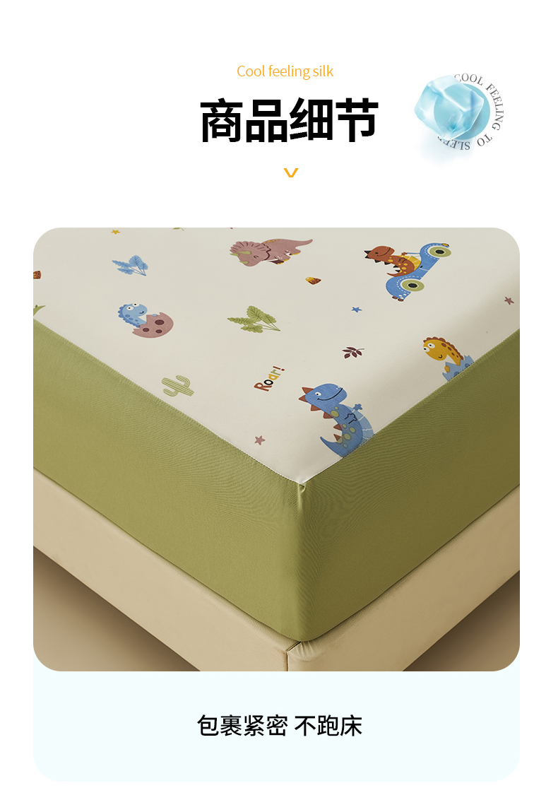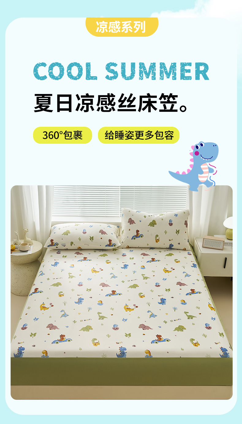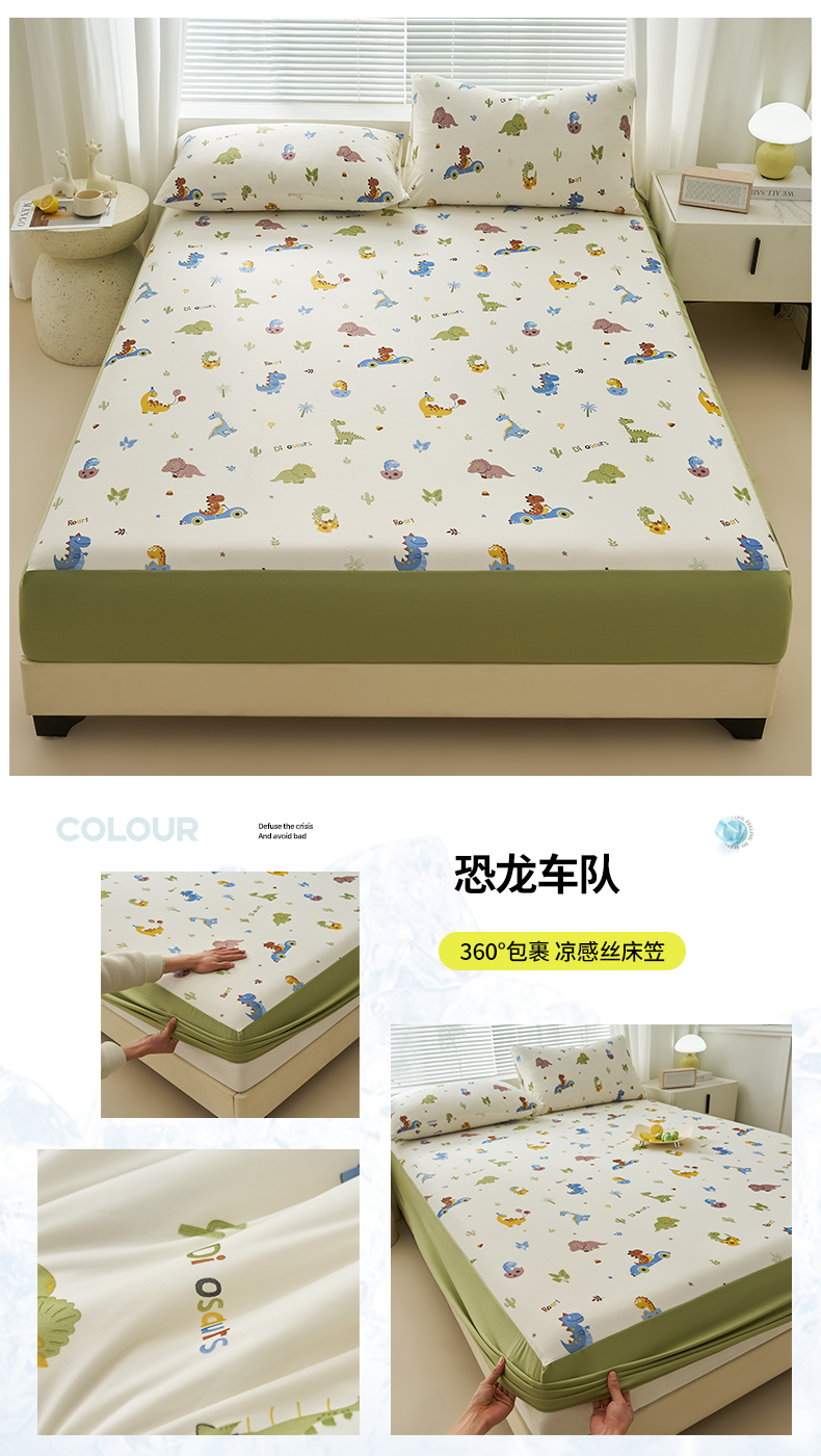 • 91家纺网 家纺一手货源 找家纺 暖阳 2025新款印花凉感丝单床笠 恐龙车队