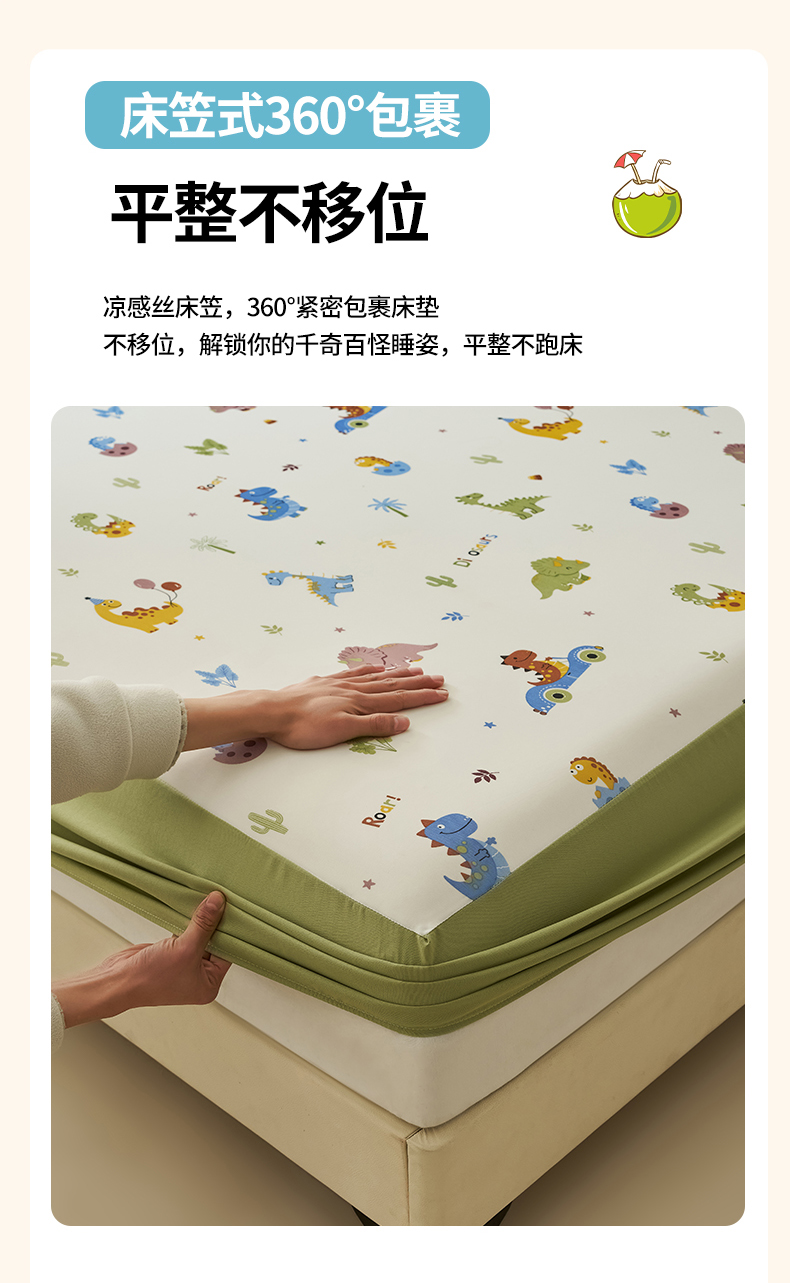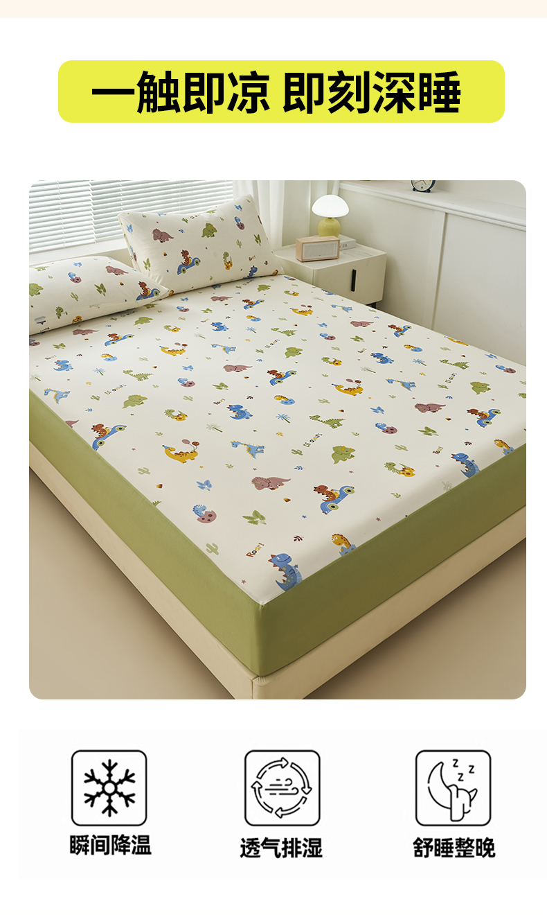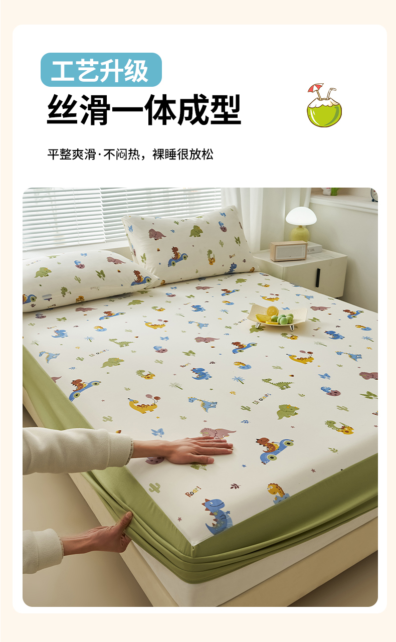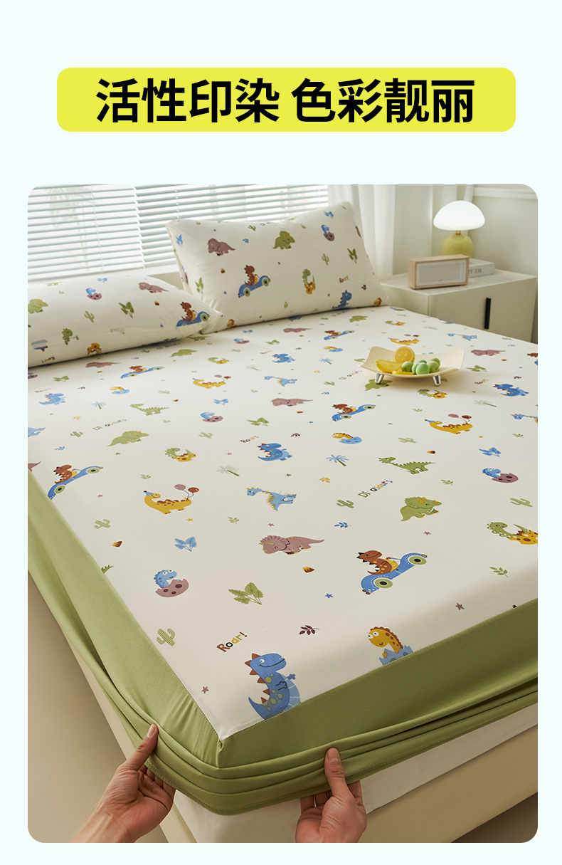 暖阳 2025新款印花凉感丝单床笠 恐龙车队