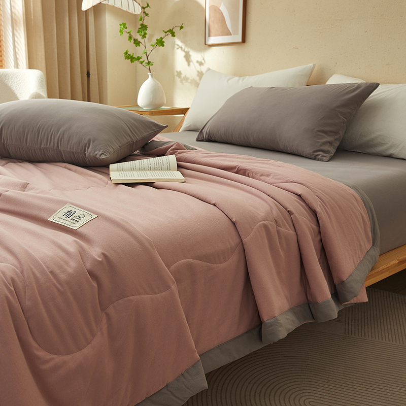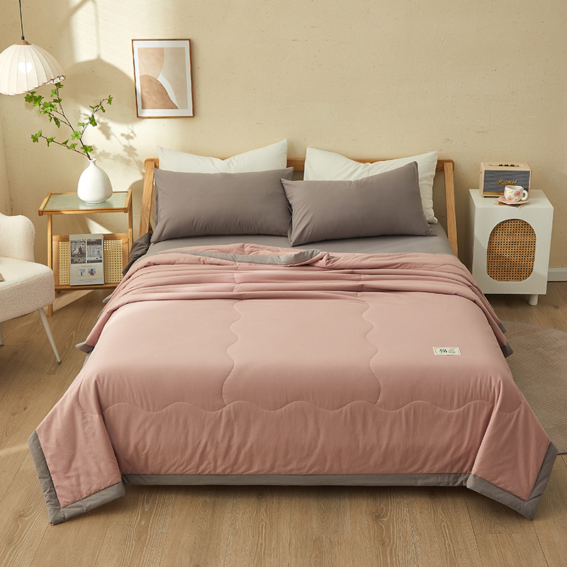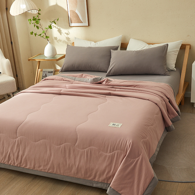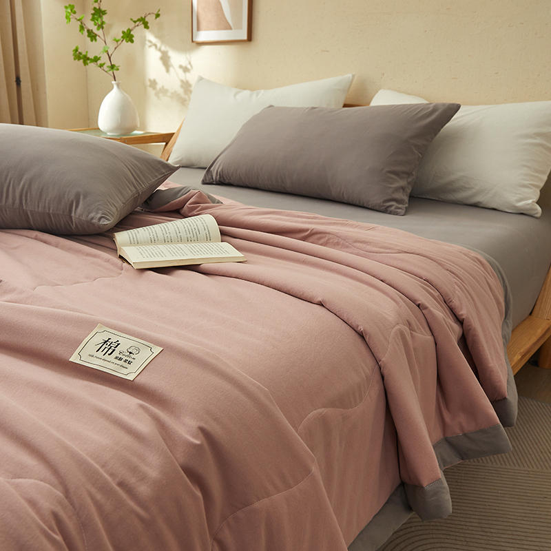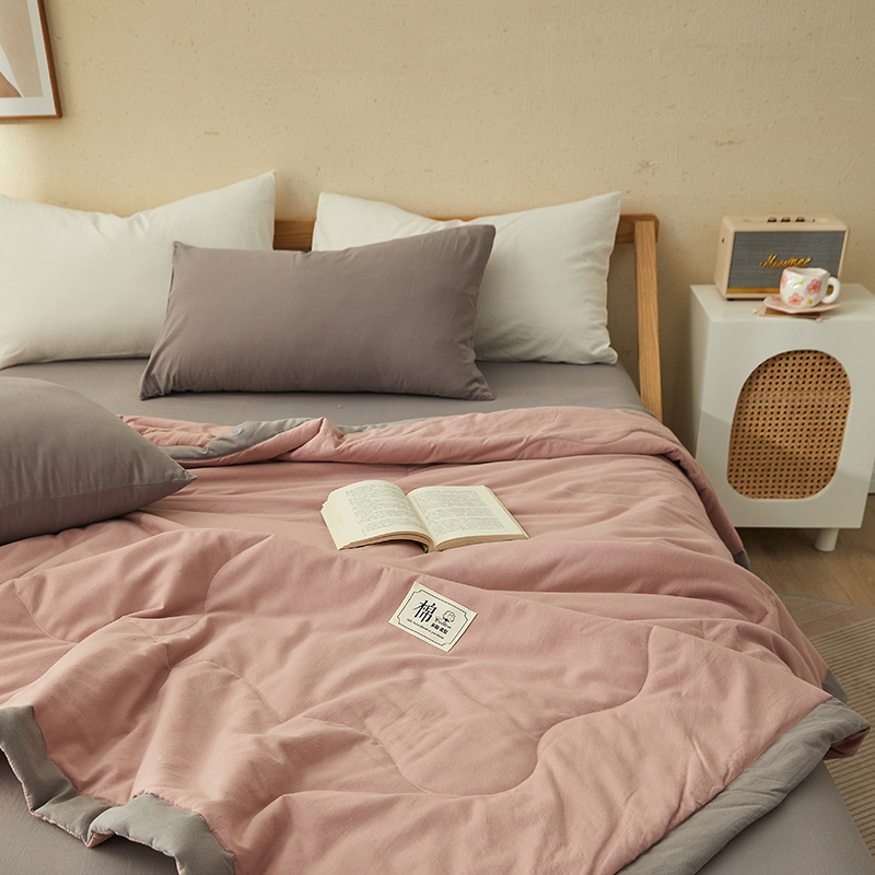 商品名称:暖阳 2025新款全棉水洗棉拼色棉花夏被夏凉被被子被芯 藕粉【AB同色】
