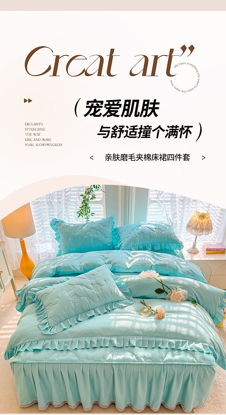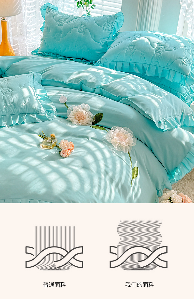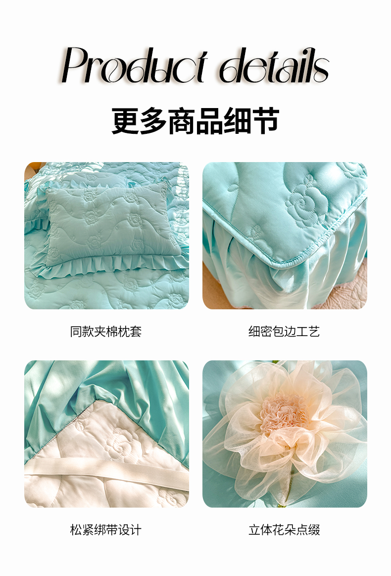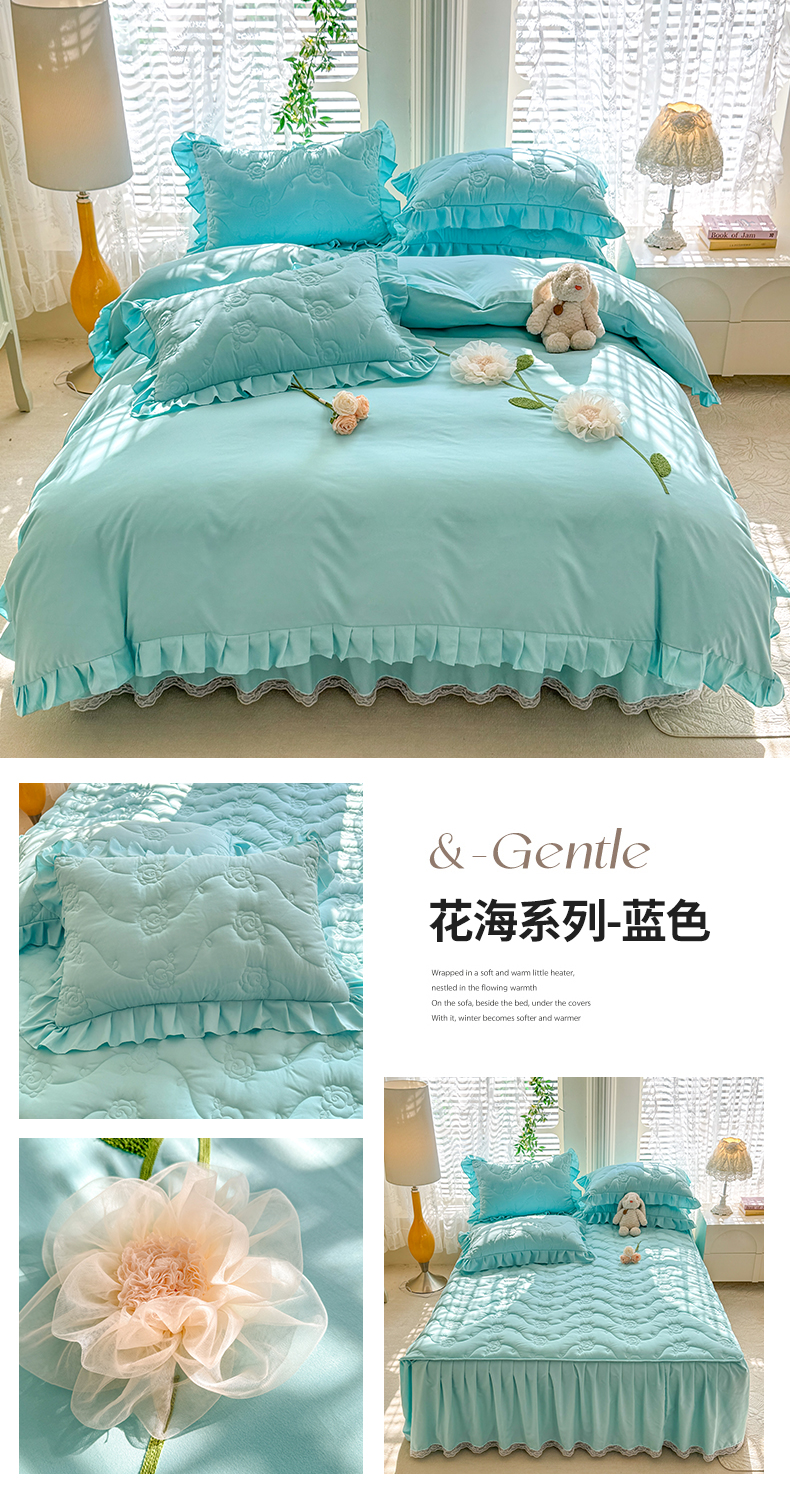当前位置: 91家纺网 > 商品网购 > 床品套件 > 四件套 > 全棉普通四件套 > 芭比蔓家纺 2025新款夹棉床裙四件套-花海系列 花海系列-蓝色