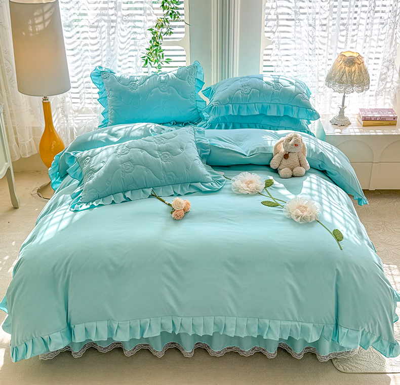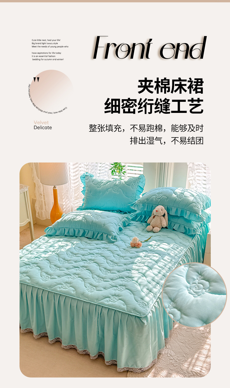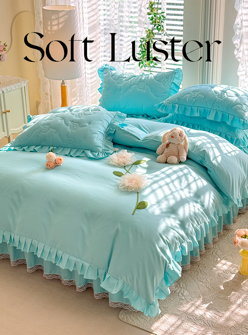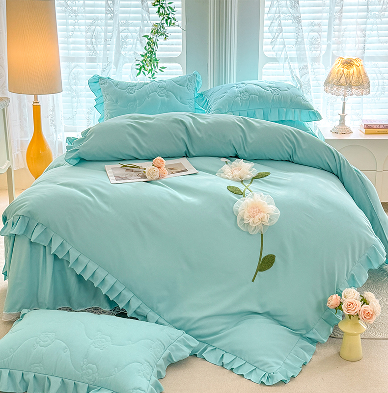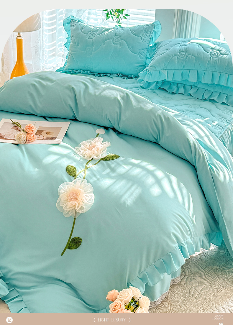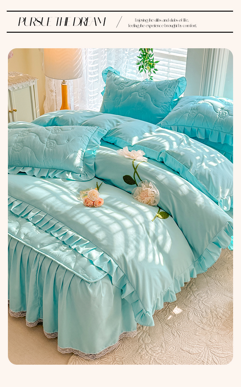 当前位置: 91家纺网 > 商品网购 > 床品套件 > 四件套 > 全棉普通四件套 > 芭比蔓家纺 2025新款夹棉床裙四件套-花海系列 花海系列-蓝色
